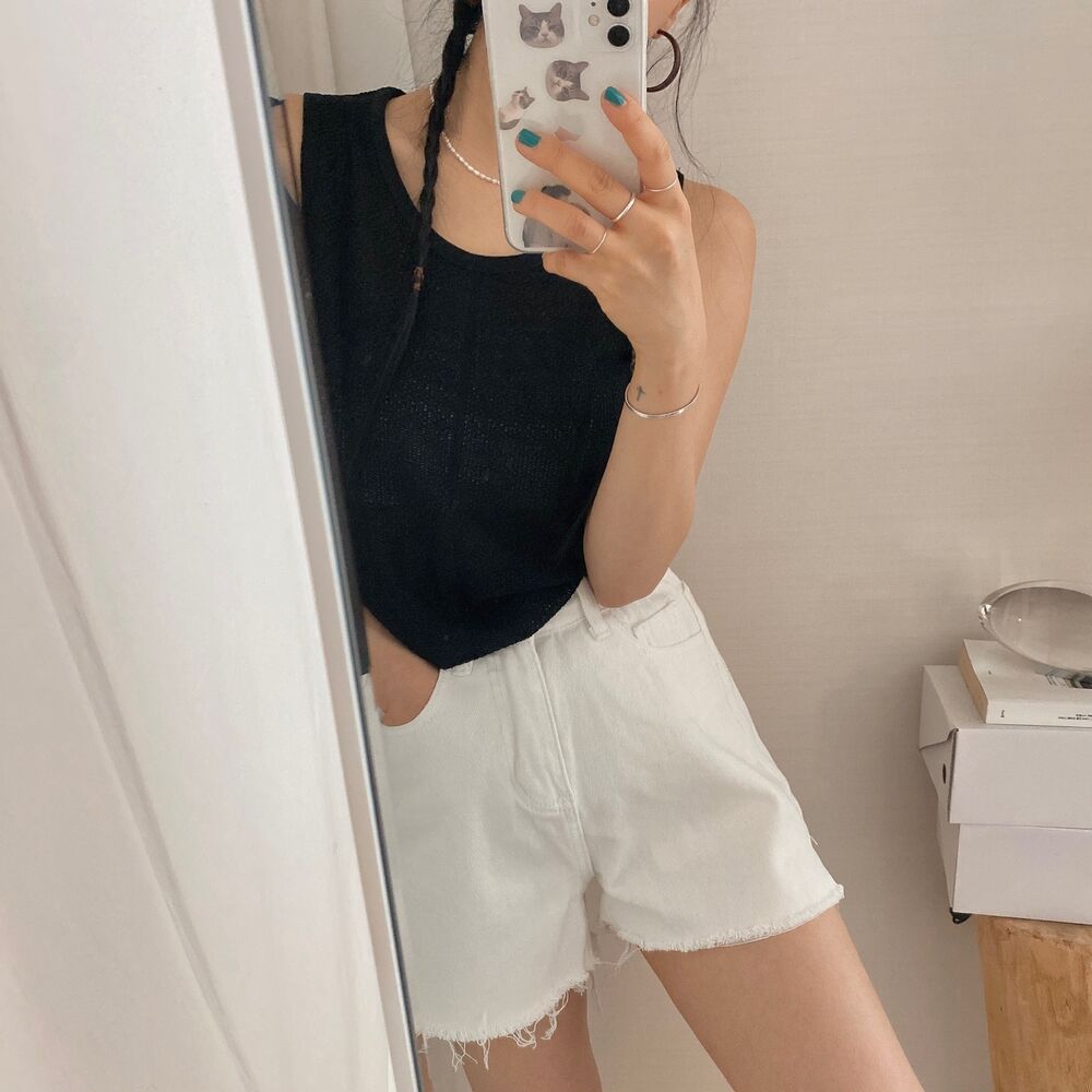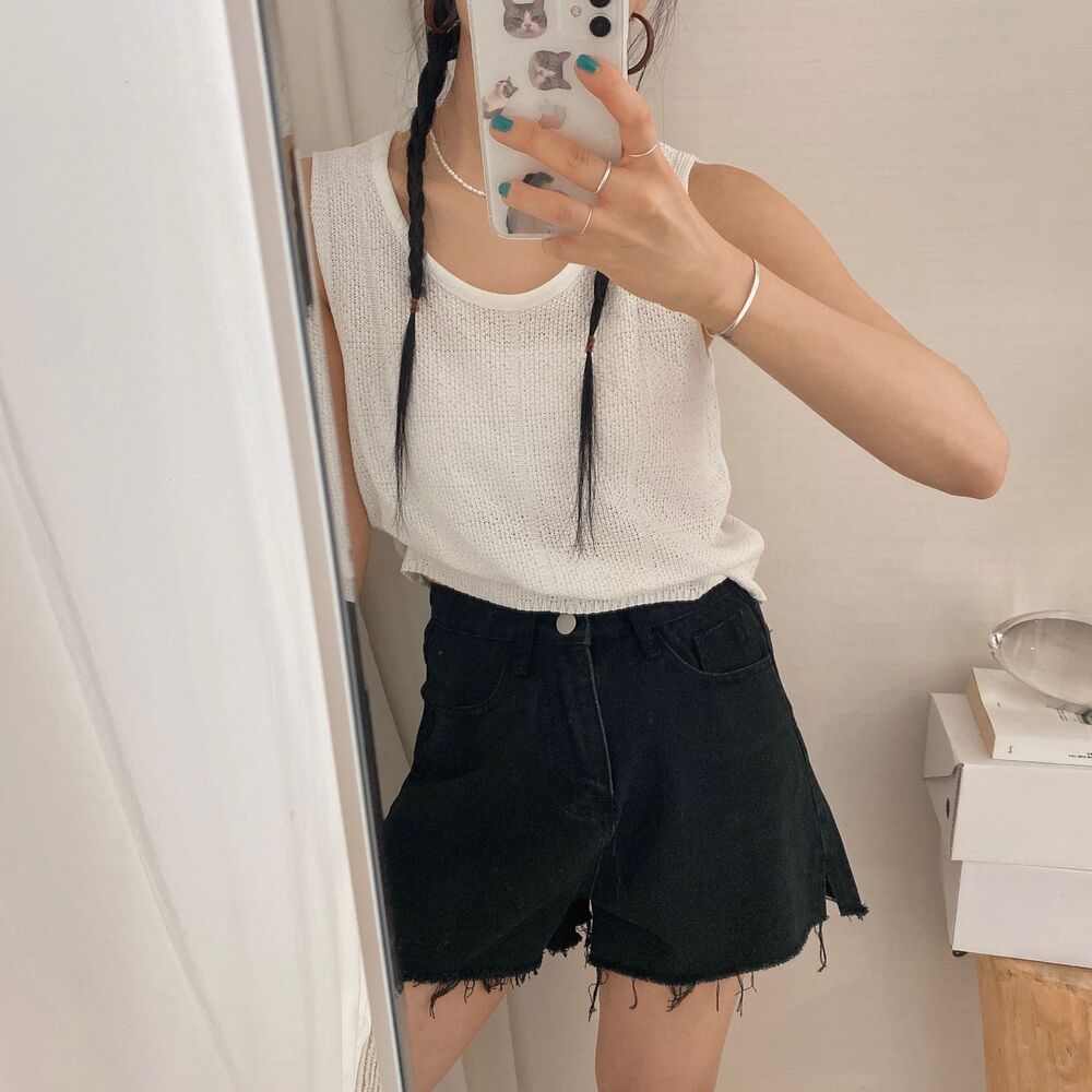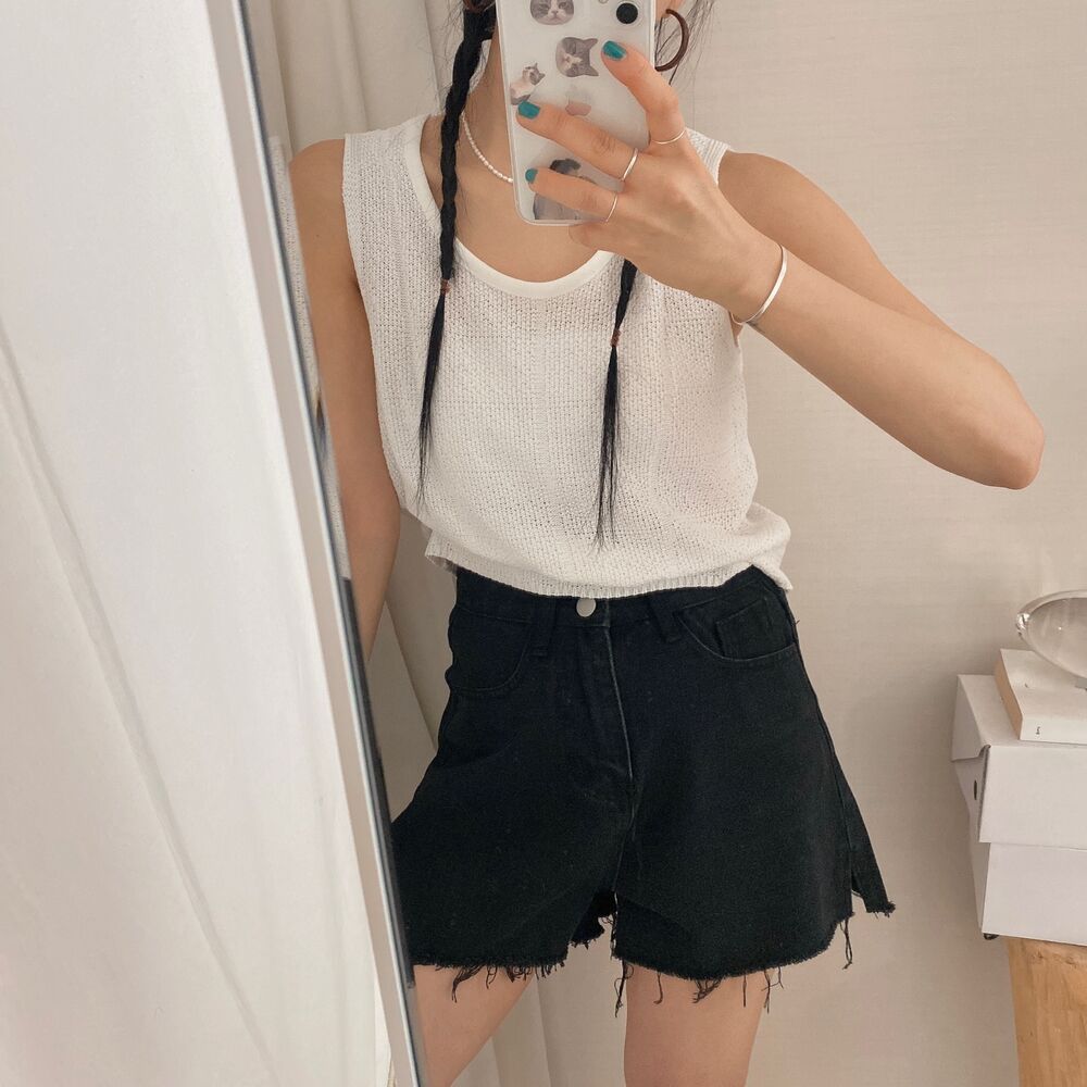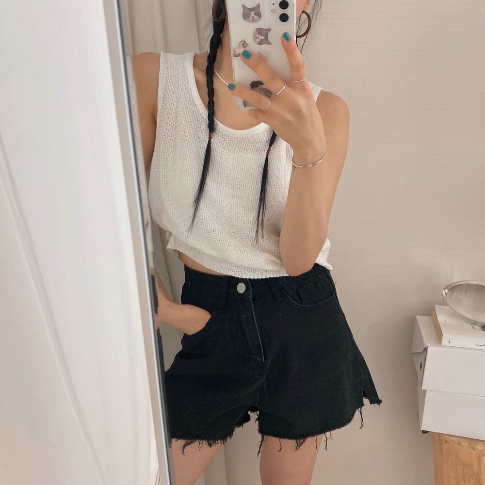 スリットコットンシンプルミニ半ズボン