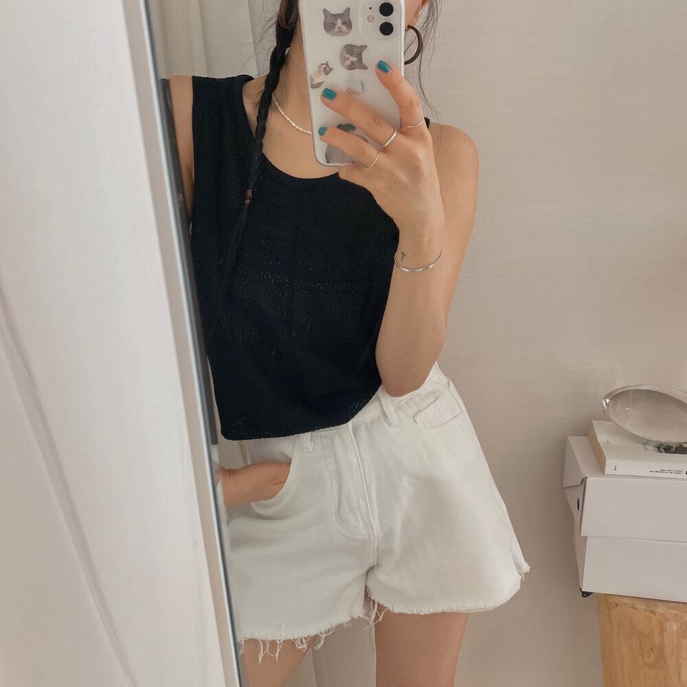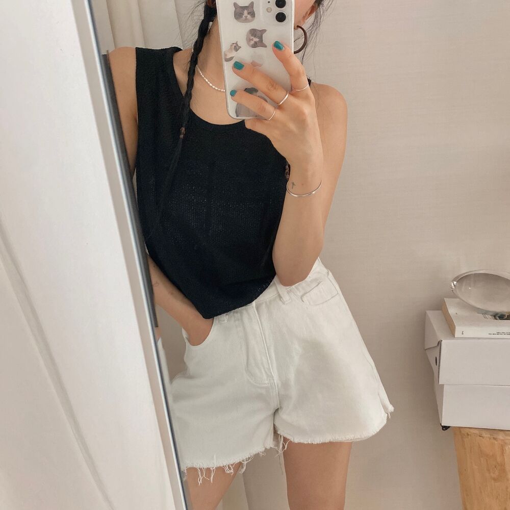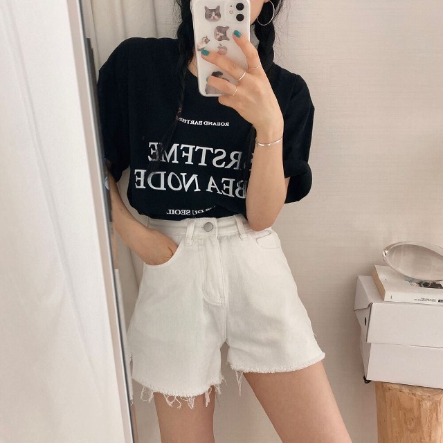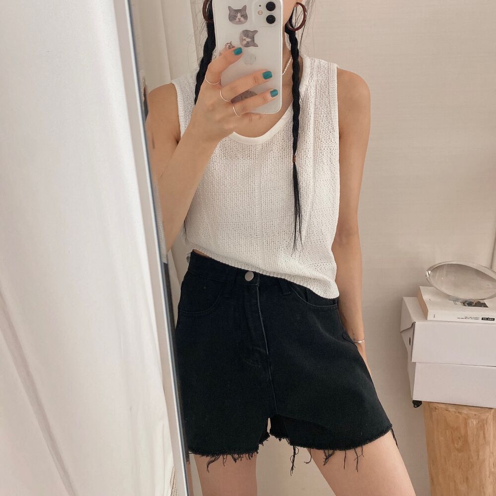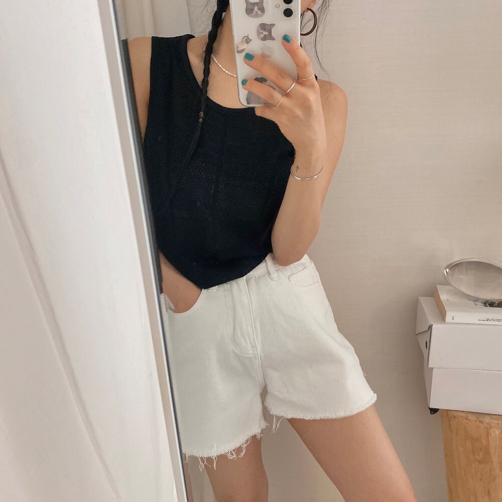 スリットコットンシンプルミニ半ズボン