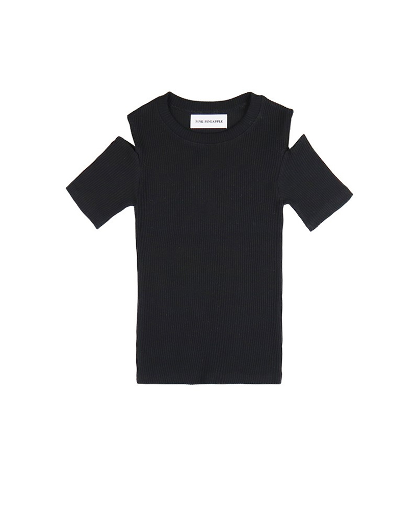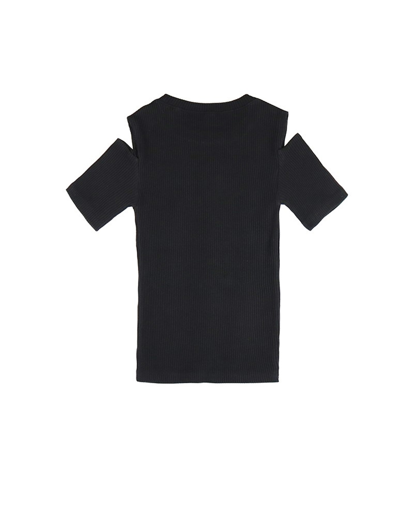CUT OUT SHOULDER T.SHIRT_BLACK