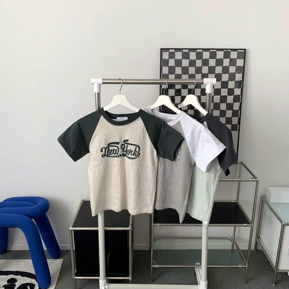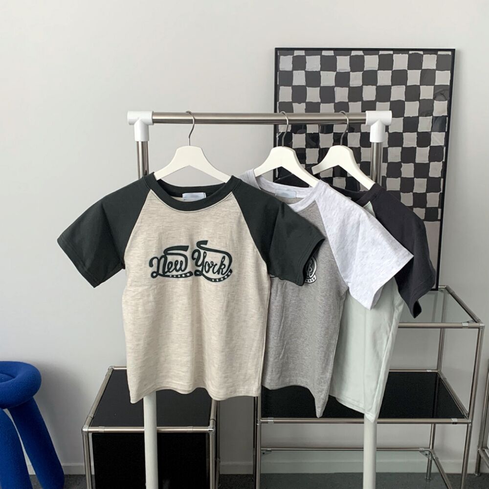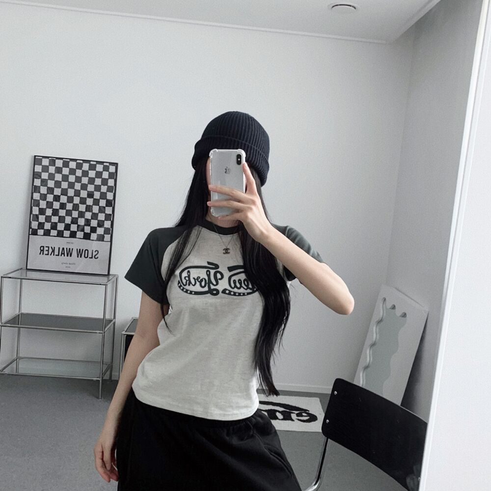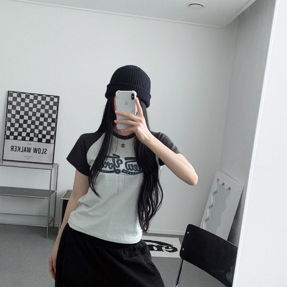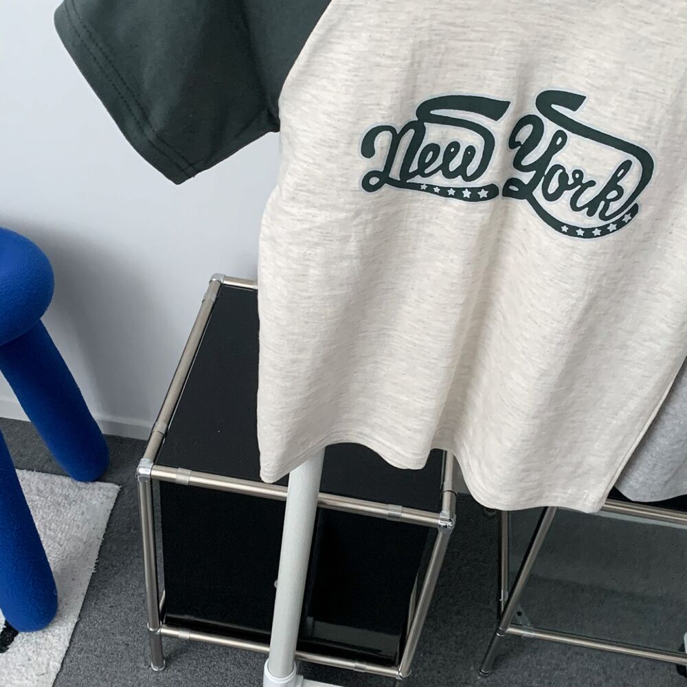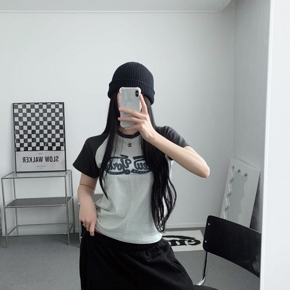 ハーフクロップドラグラン配色半袖Tシャツ(3color)