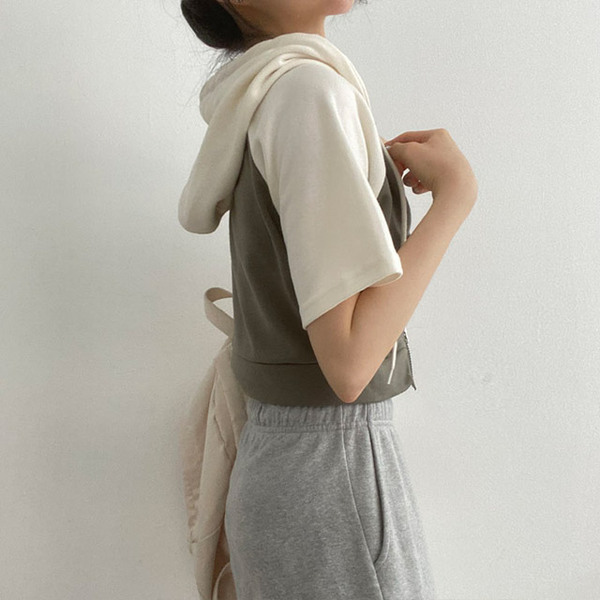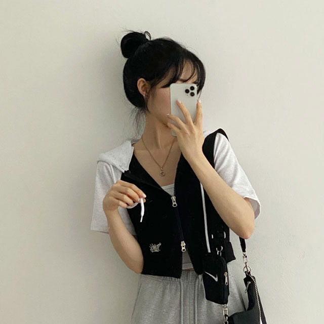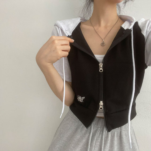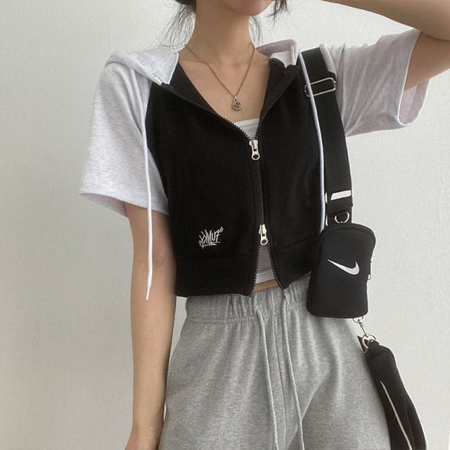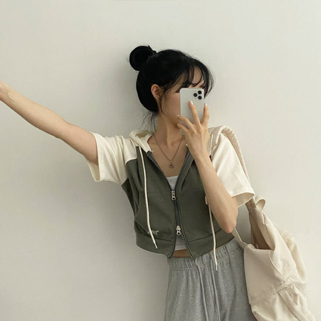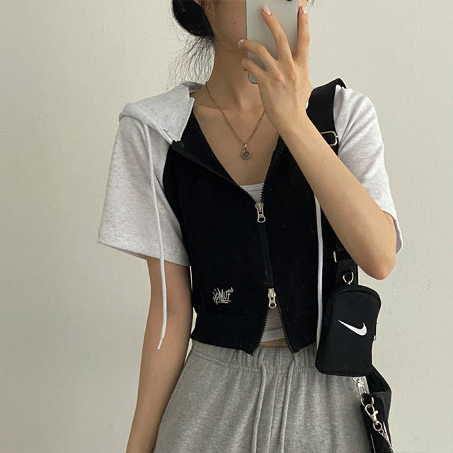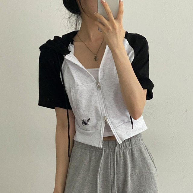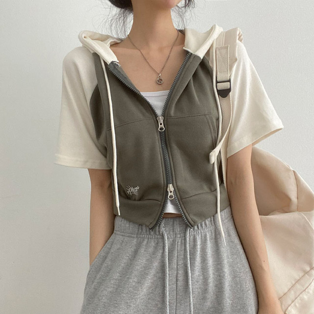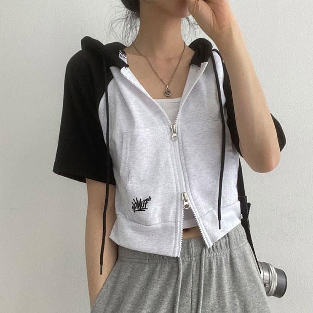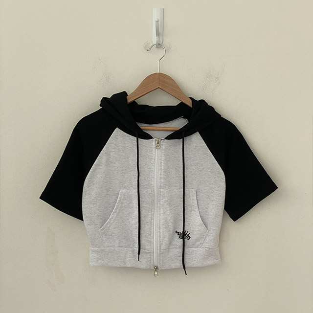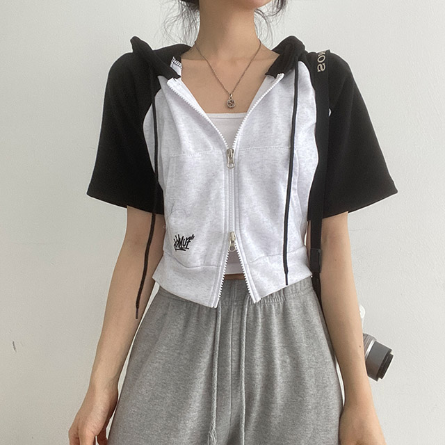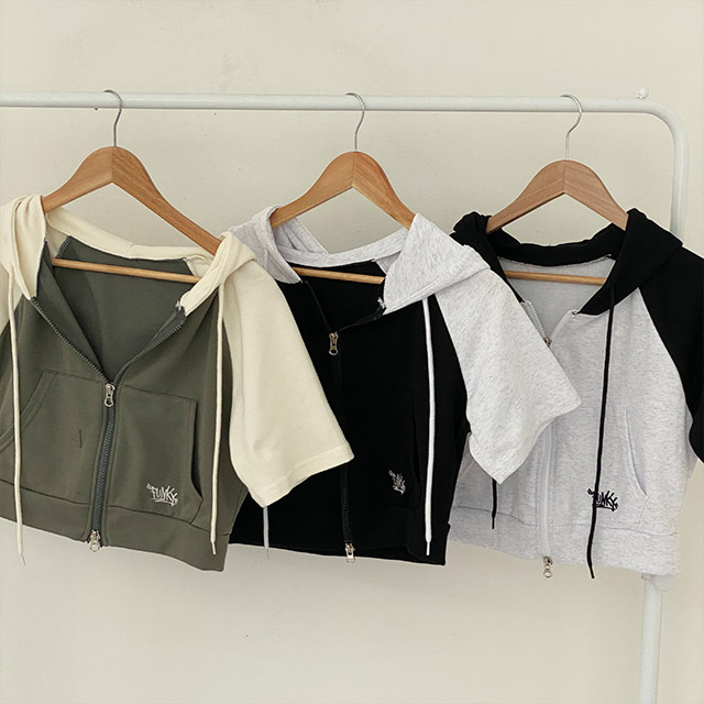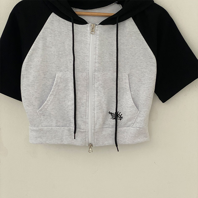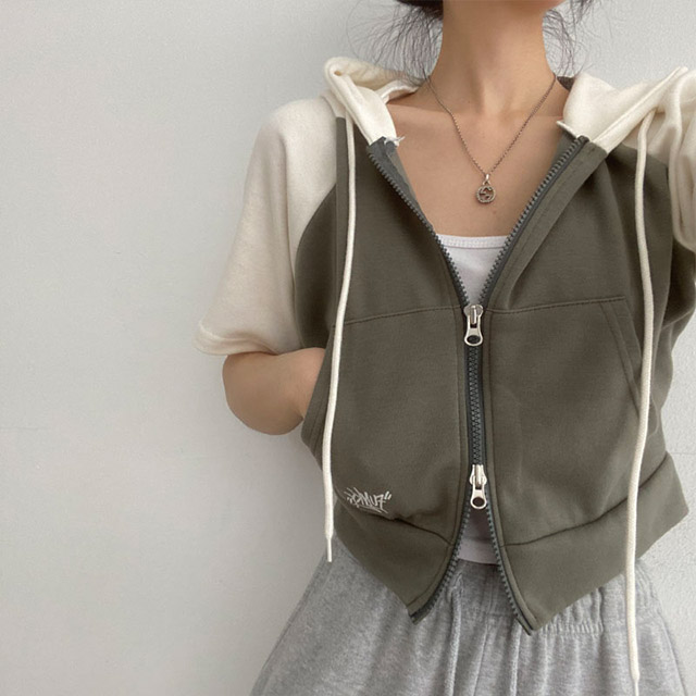 [3color]ファンキークロップド2way半袖パーカージップアップ
