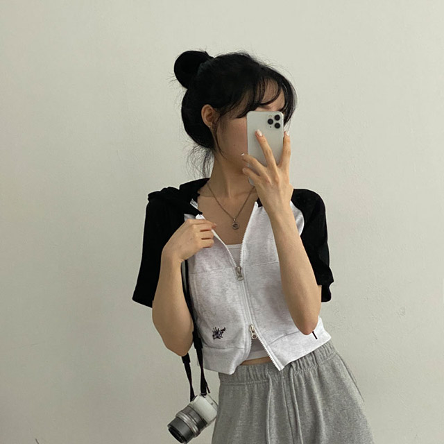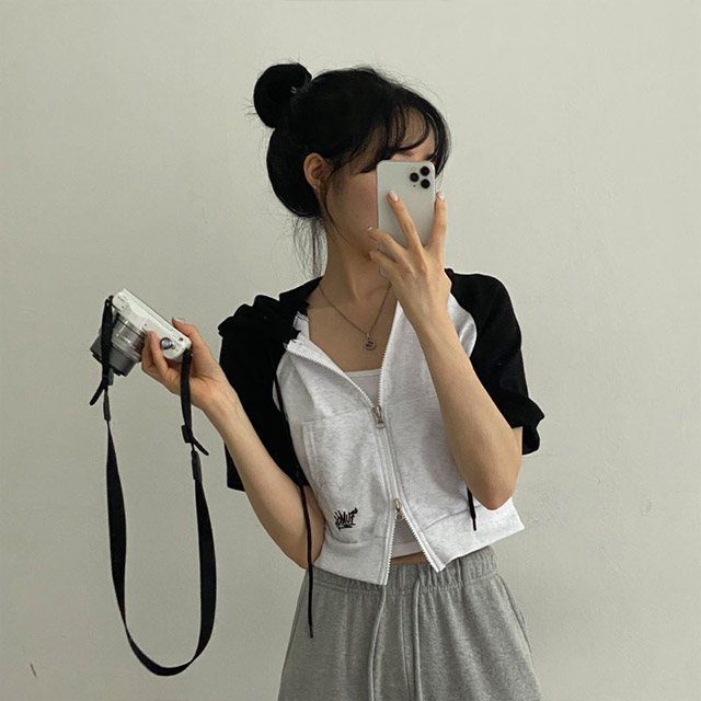 Women's/[3color]ファンキークロップド2way半袖パーカージップアップ