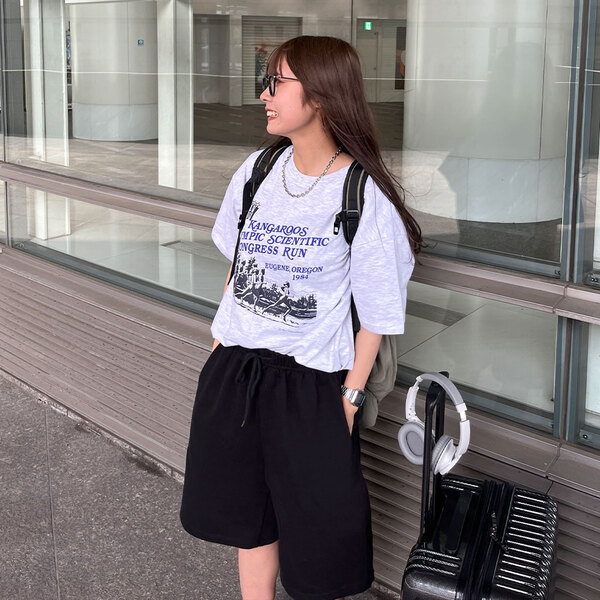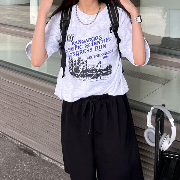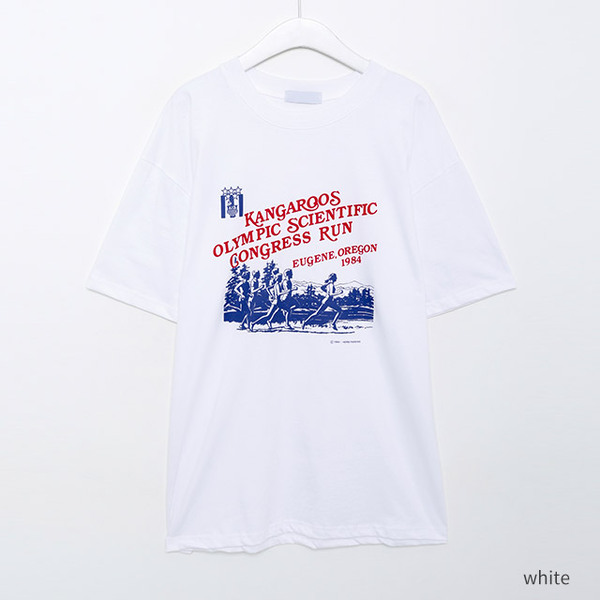 (ユニセックス) マラソンプリントTシャツ