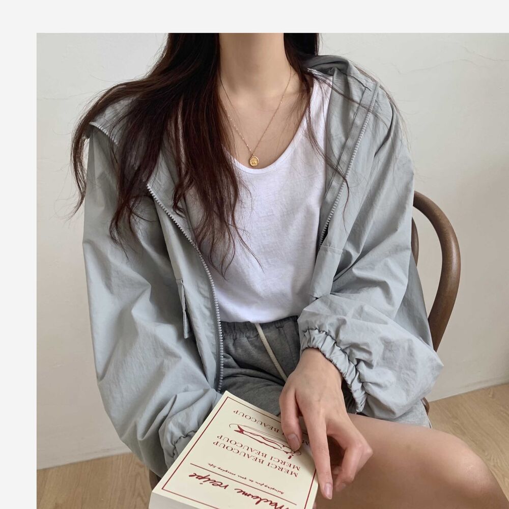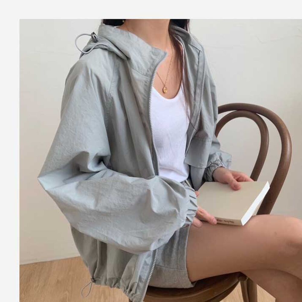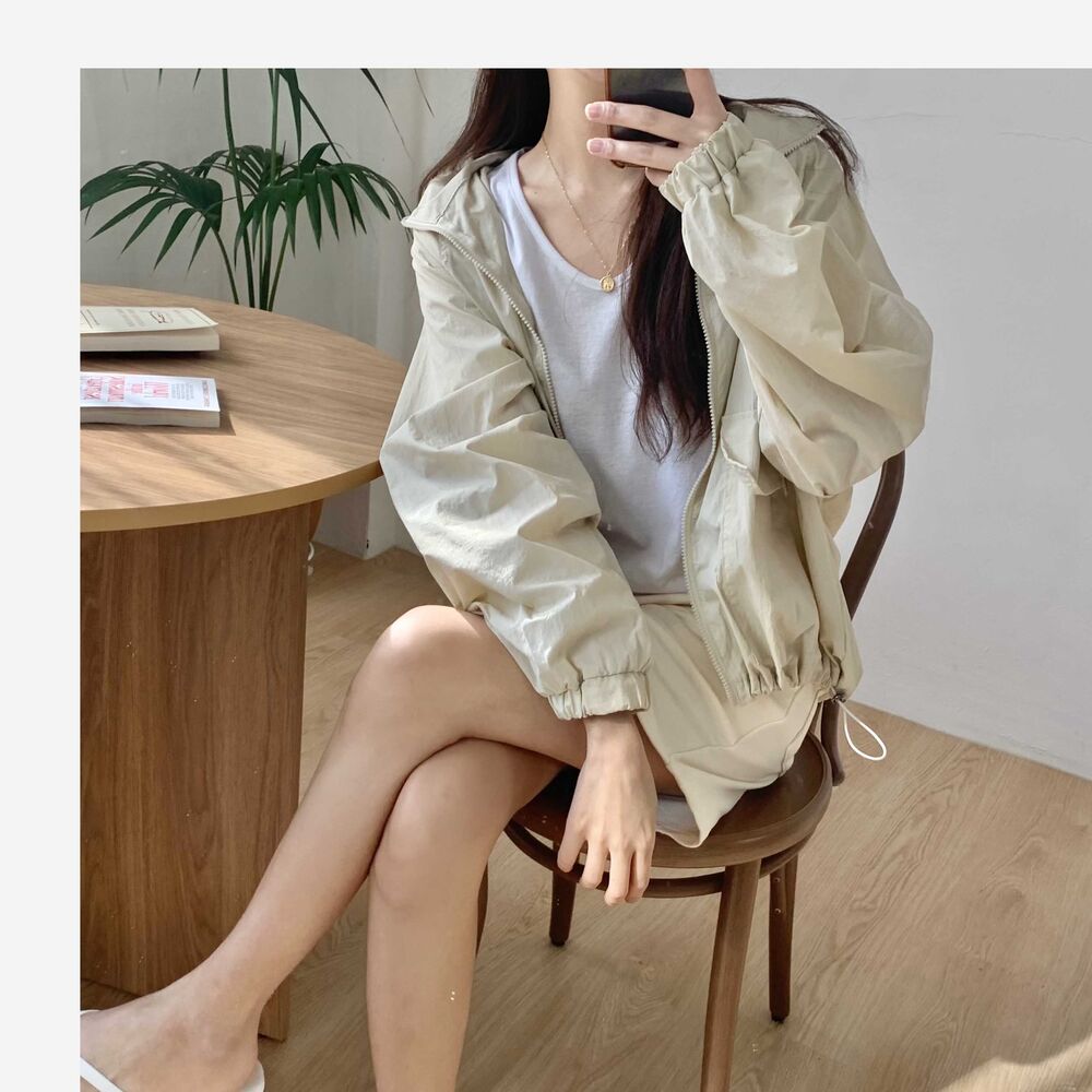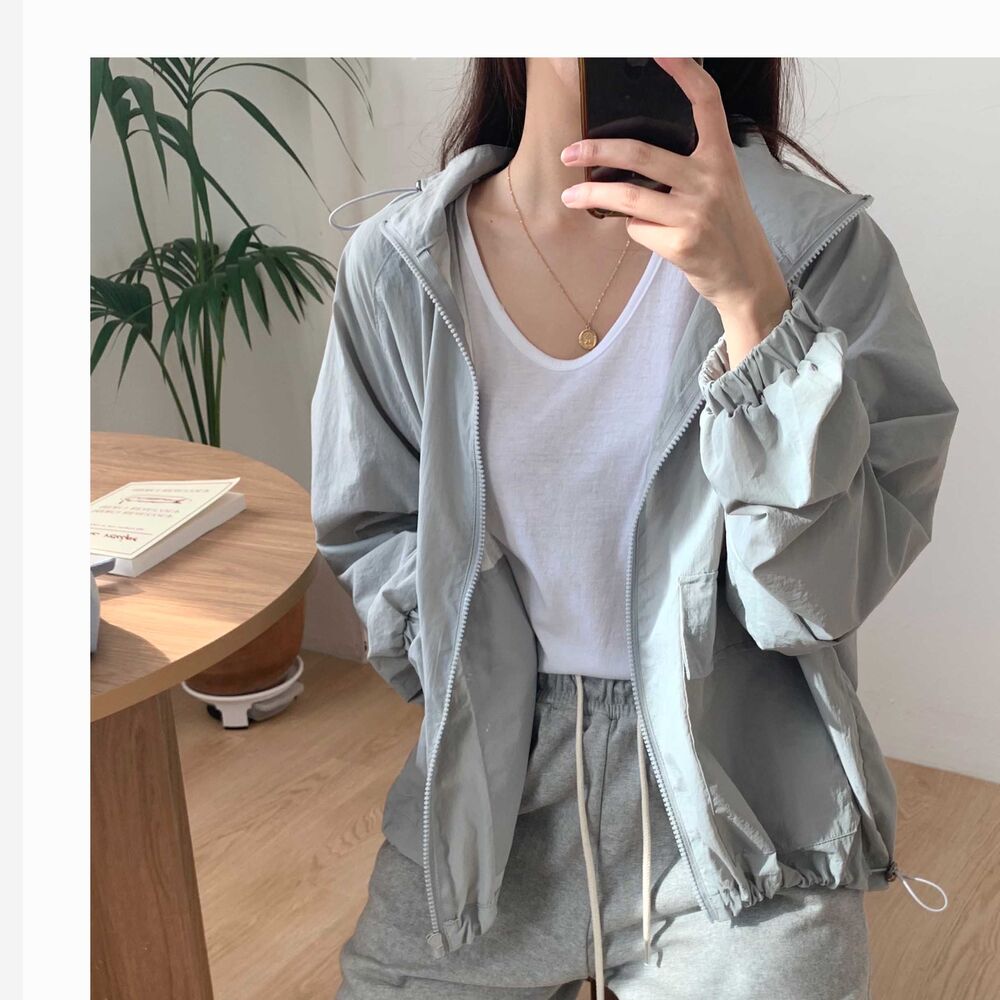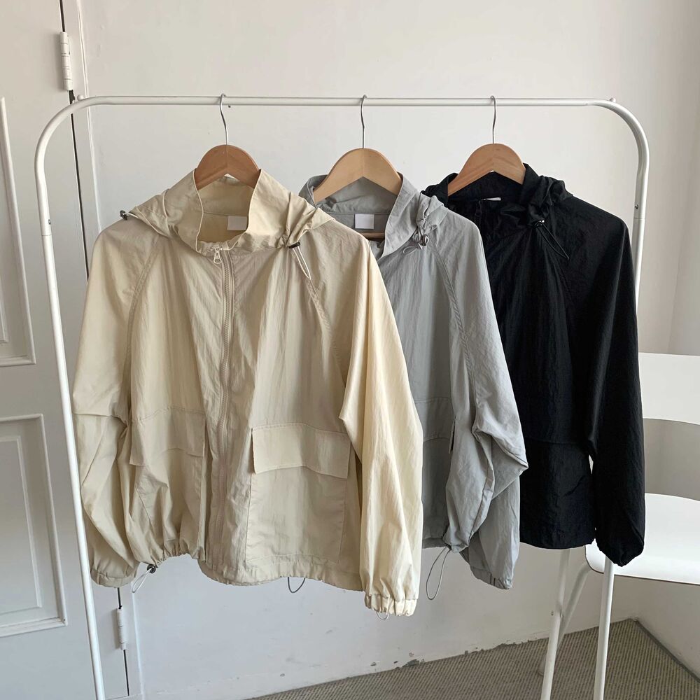 ストリングルーズフィットナイロンフード付きウィンドブレーカー
