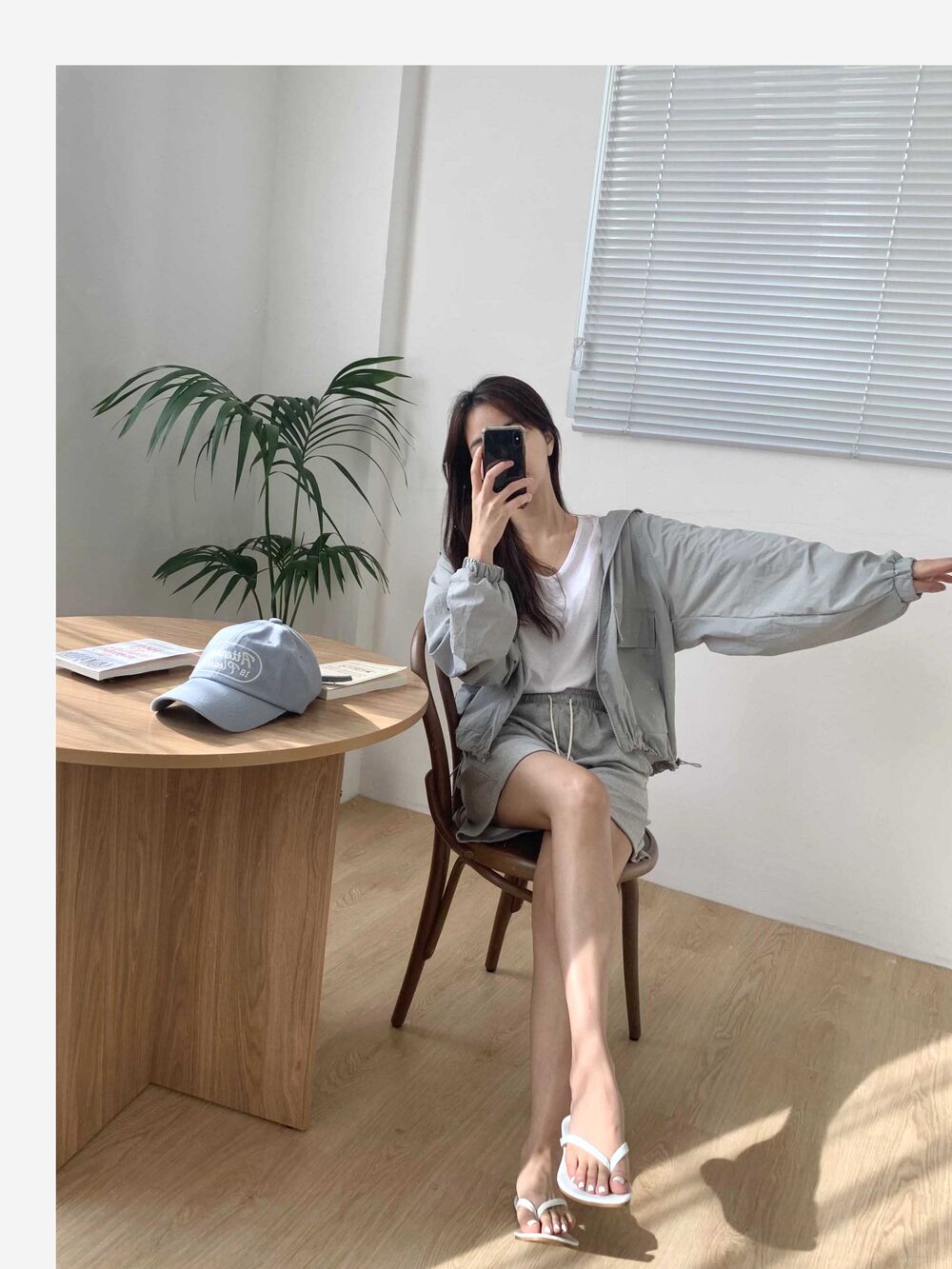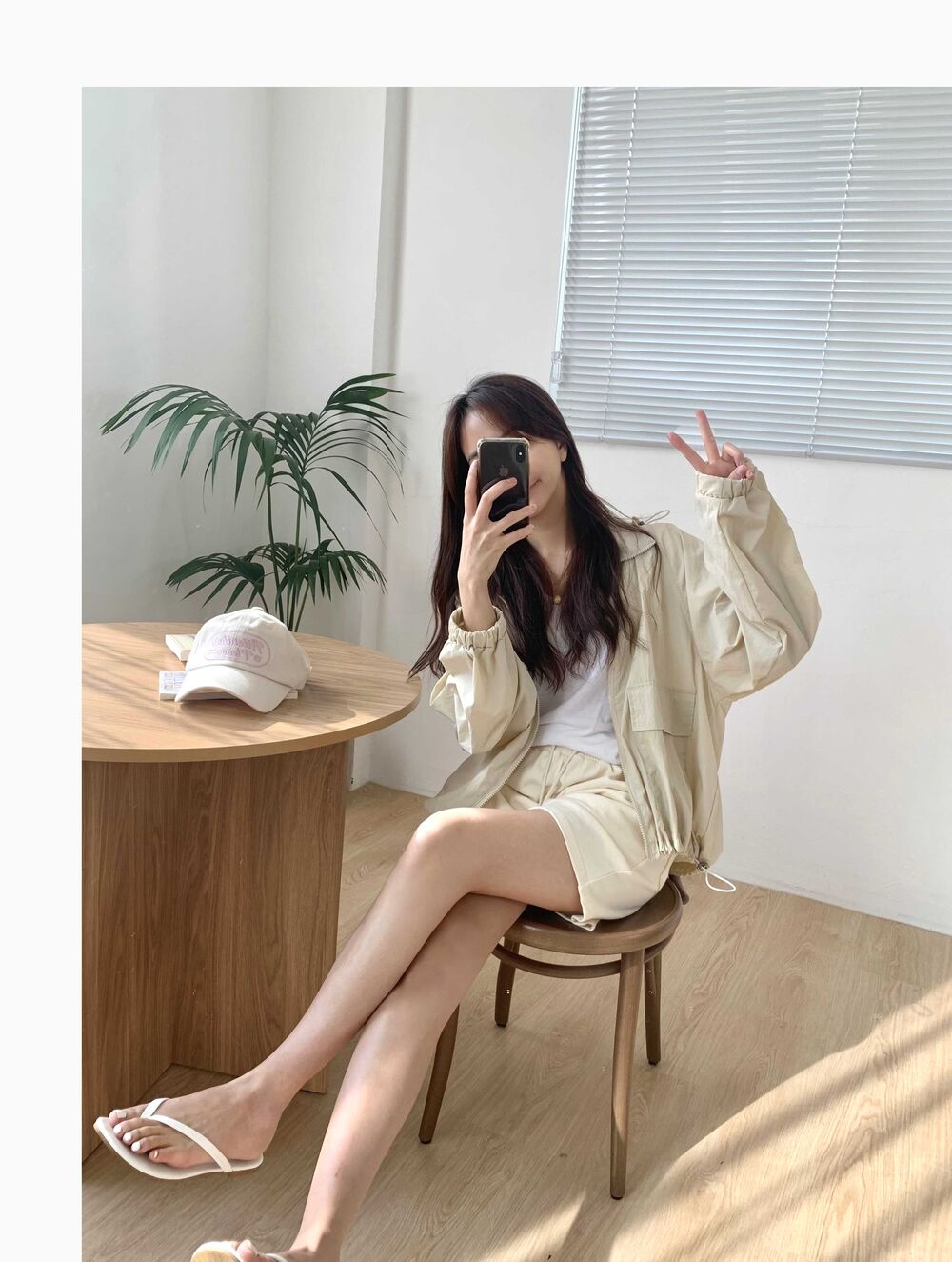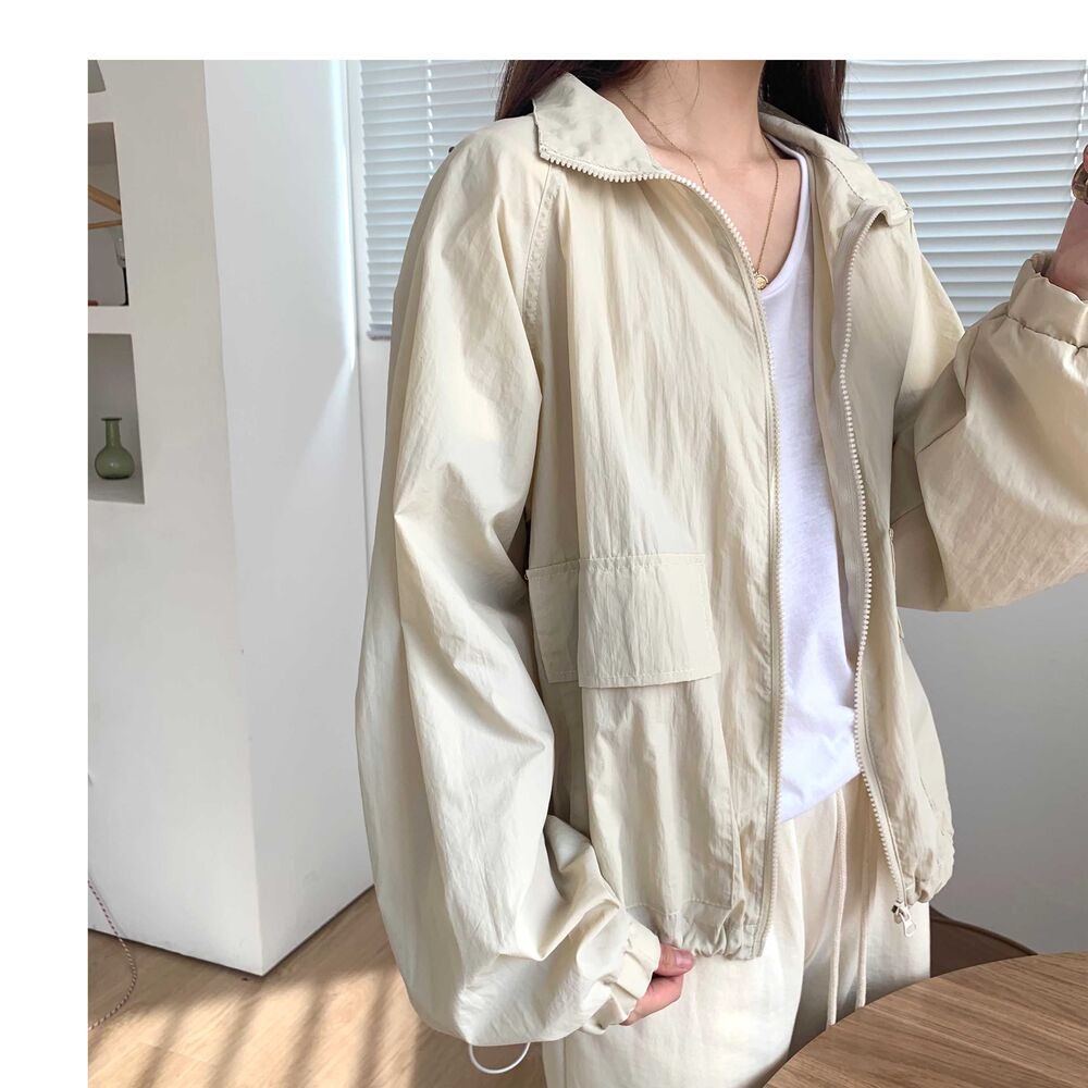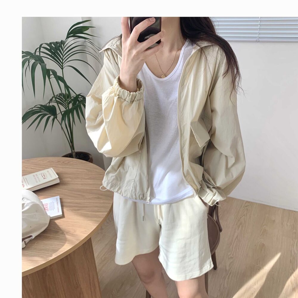 ストリングルーズフィットナイロンフード付きウィンドブレーカー