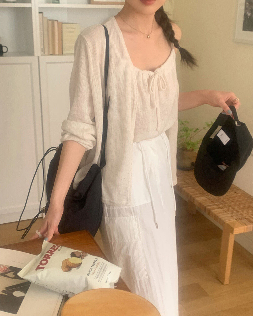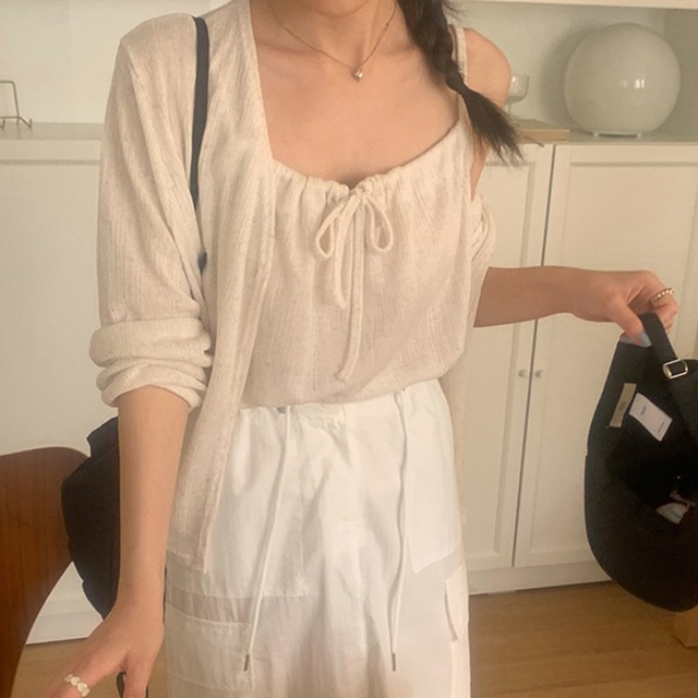 (sleeveless set)Hawaiianリネン夏ノースリーブキャミソールカーディガンセット