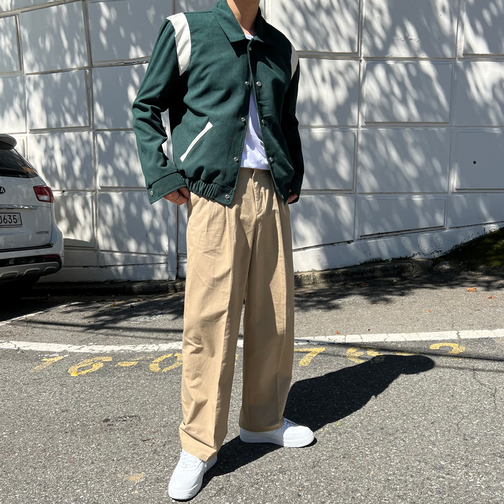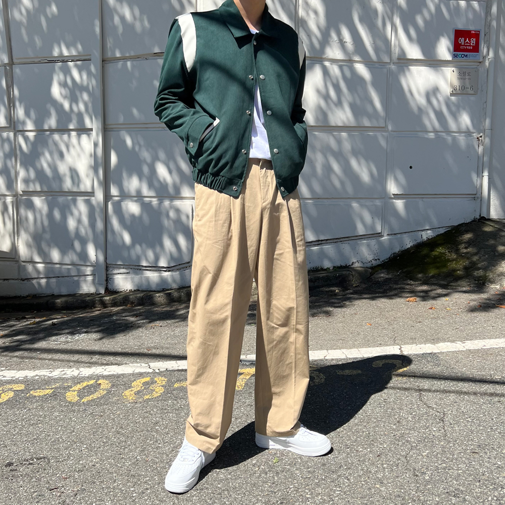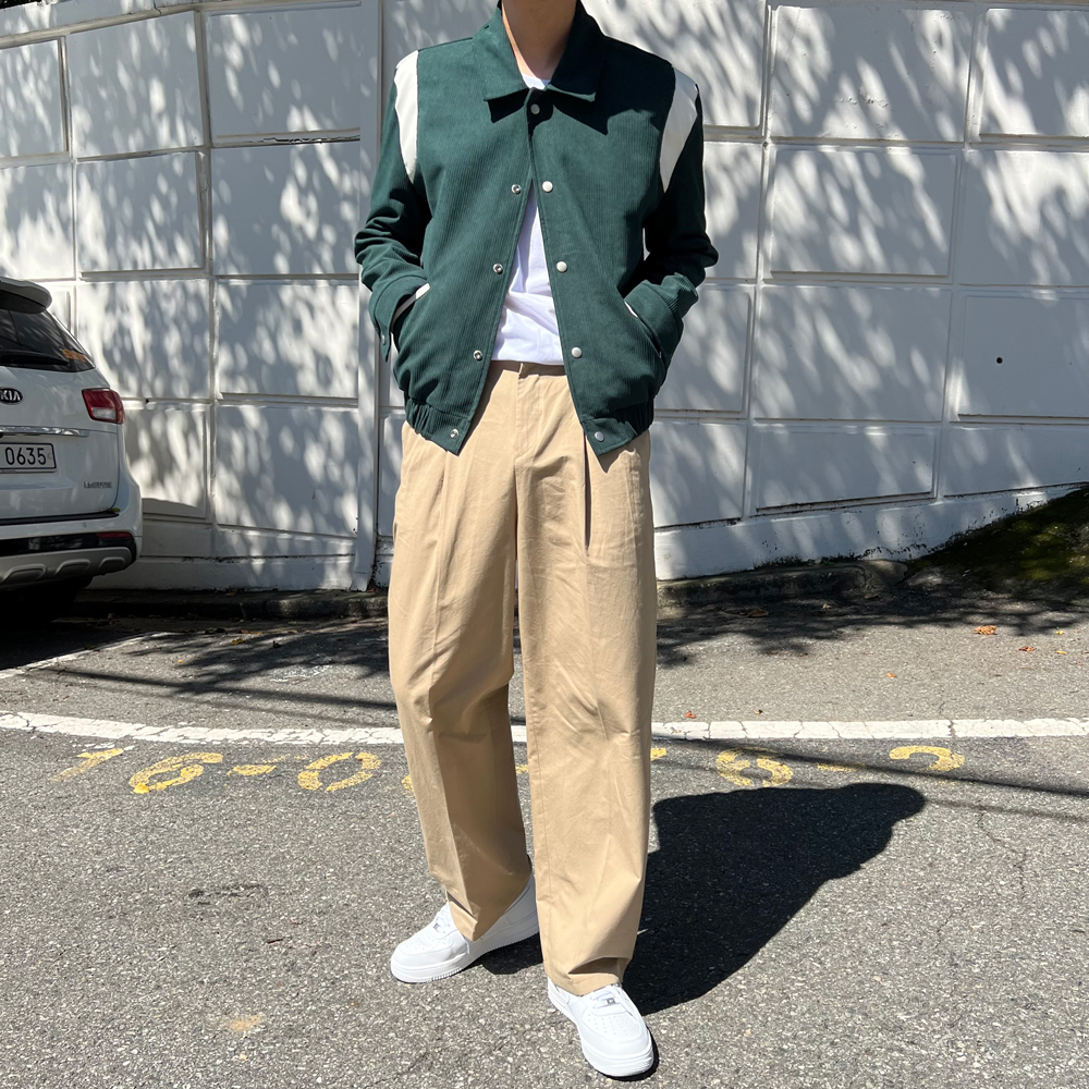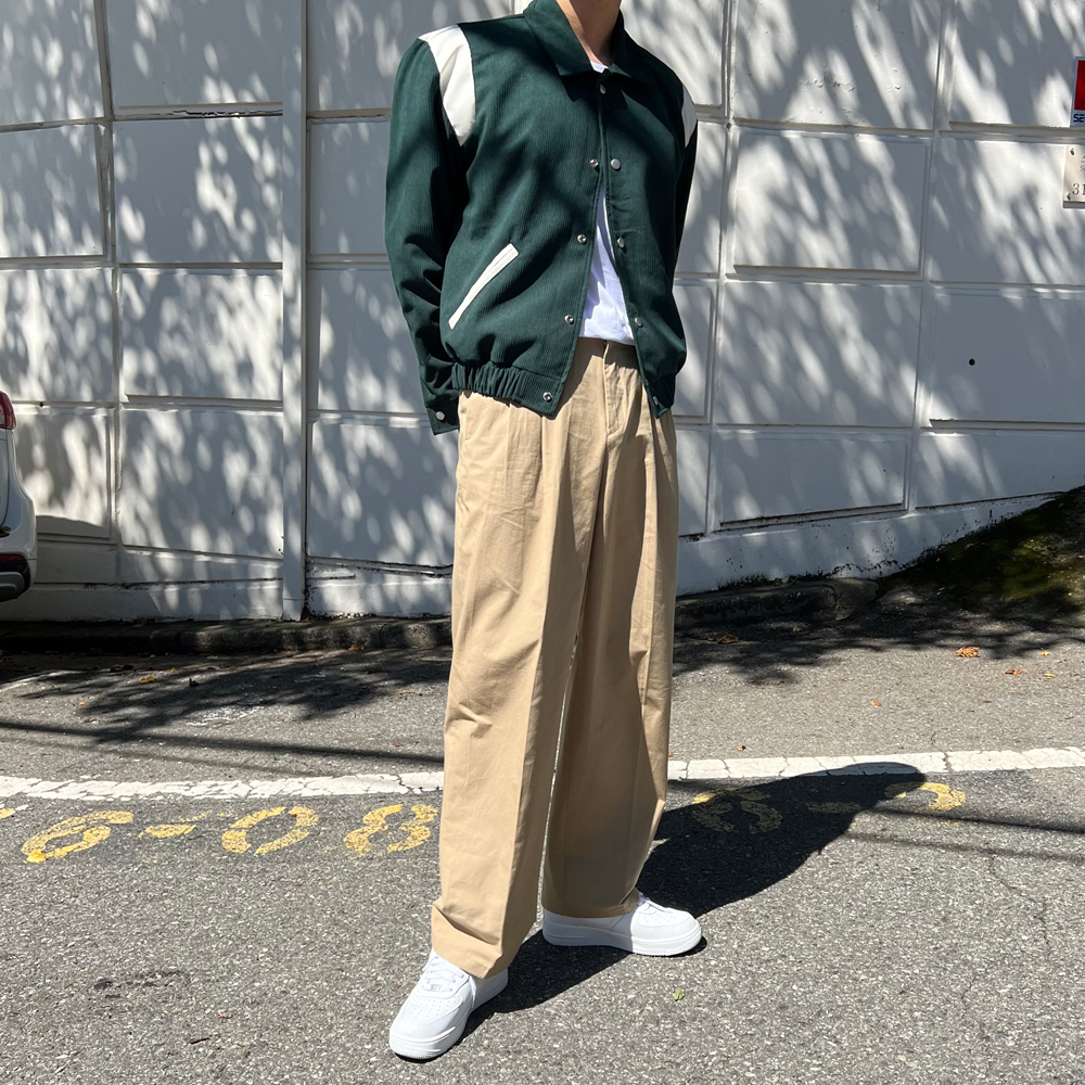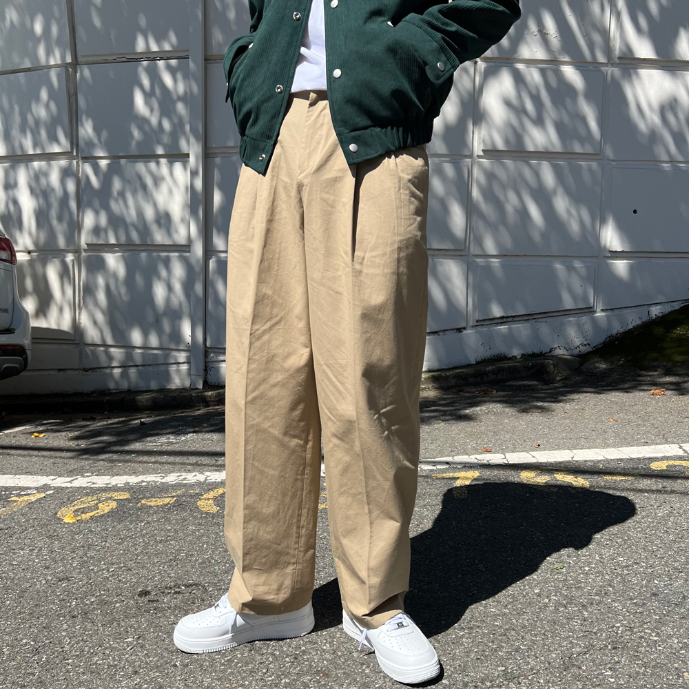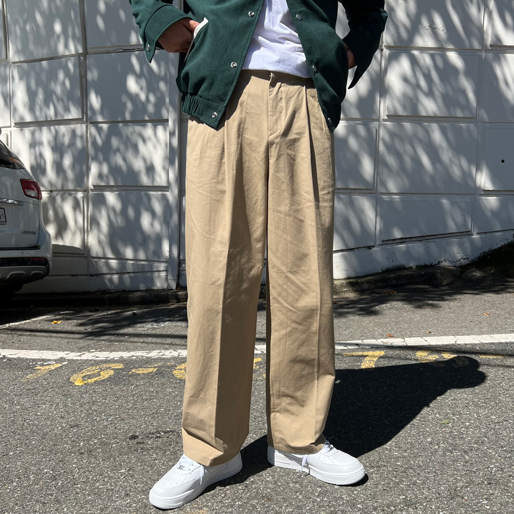 チノ二重プリーツ後ろゴムパンツ