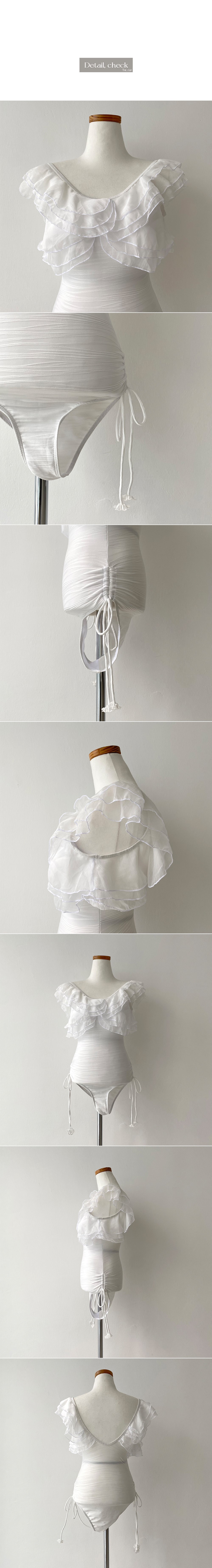 Uネックレースシャーリング水着