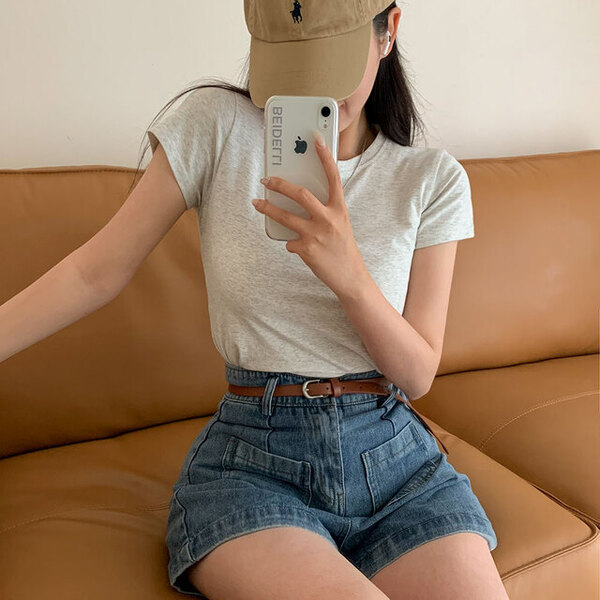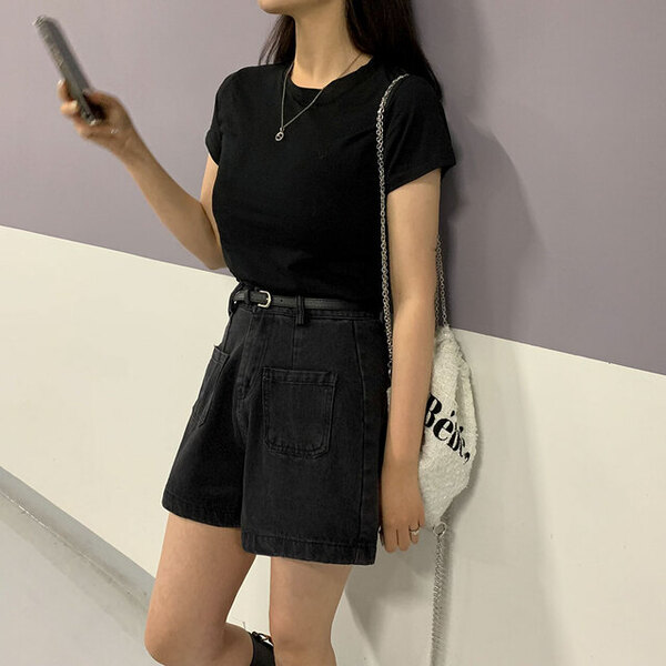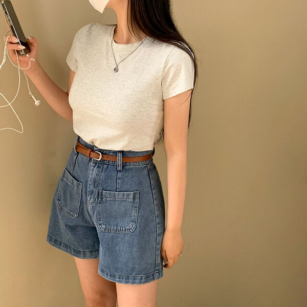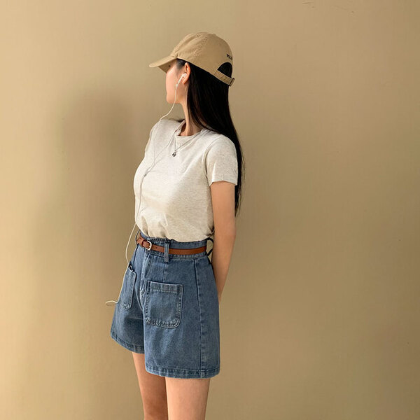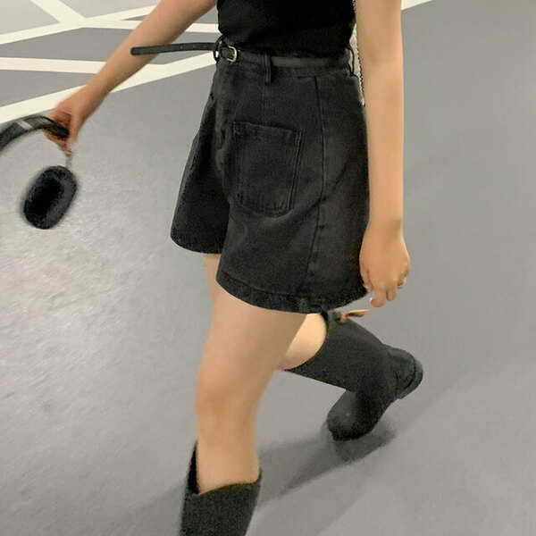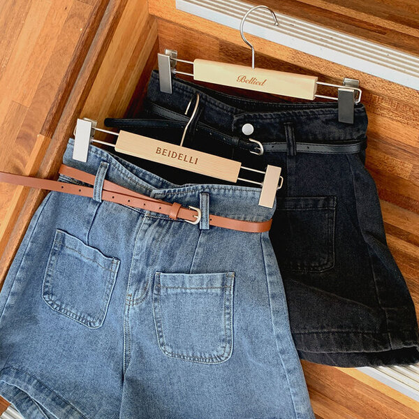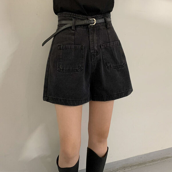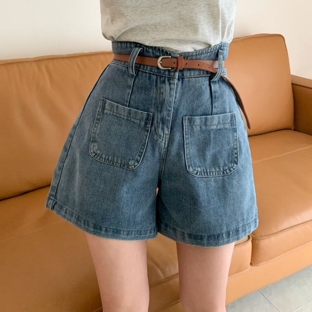 [ベルトセット]Aライン デニム 半ズボン