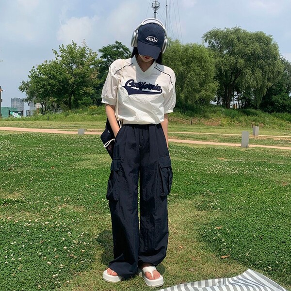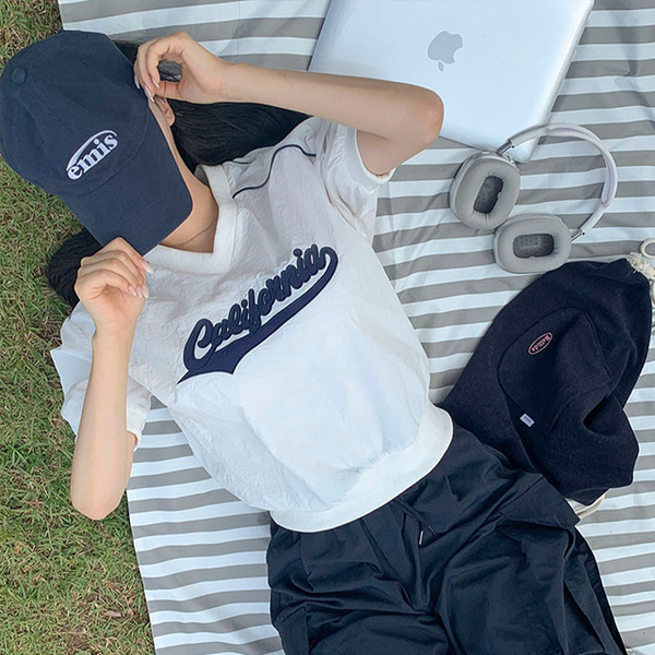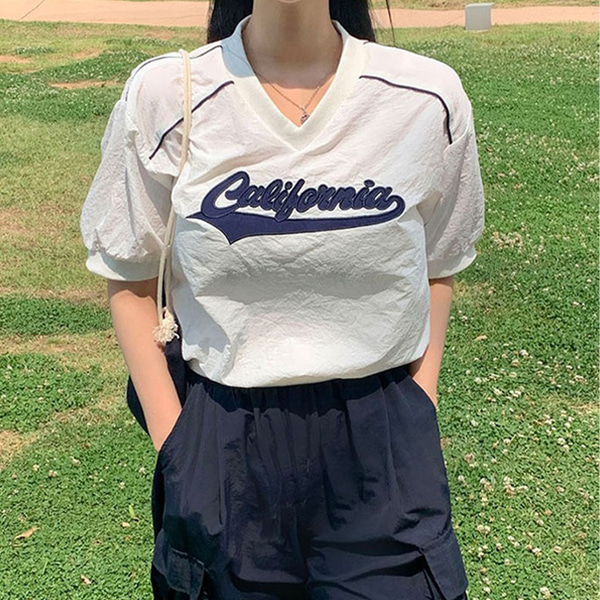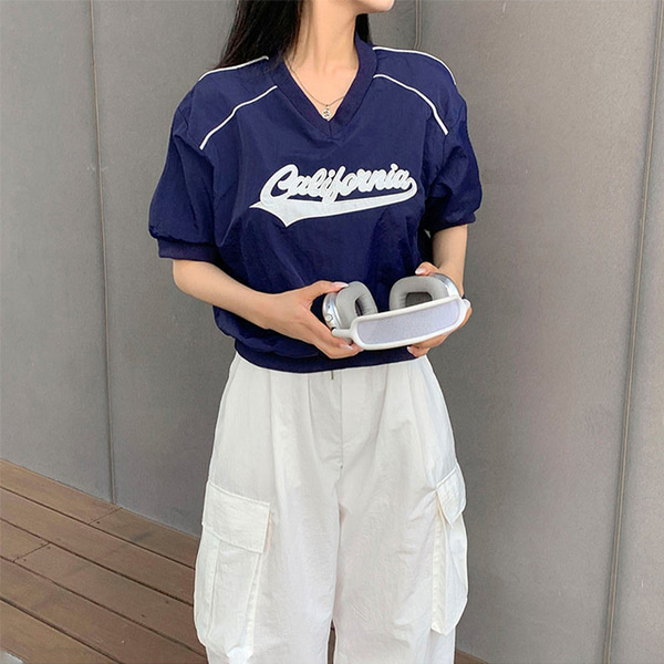 [2カラー/y2k]Vネック アノラック 半袖Tシャツ