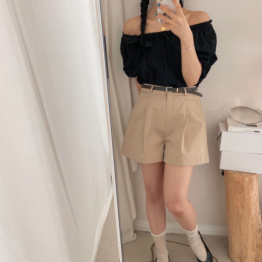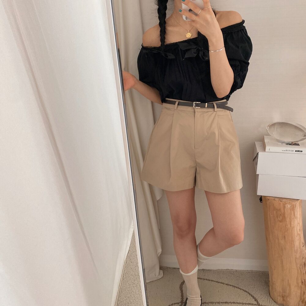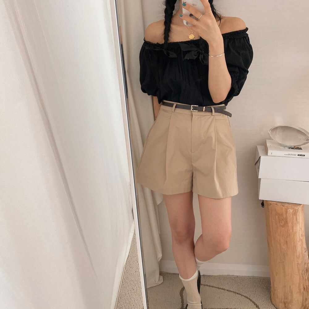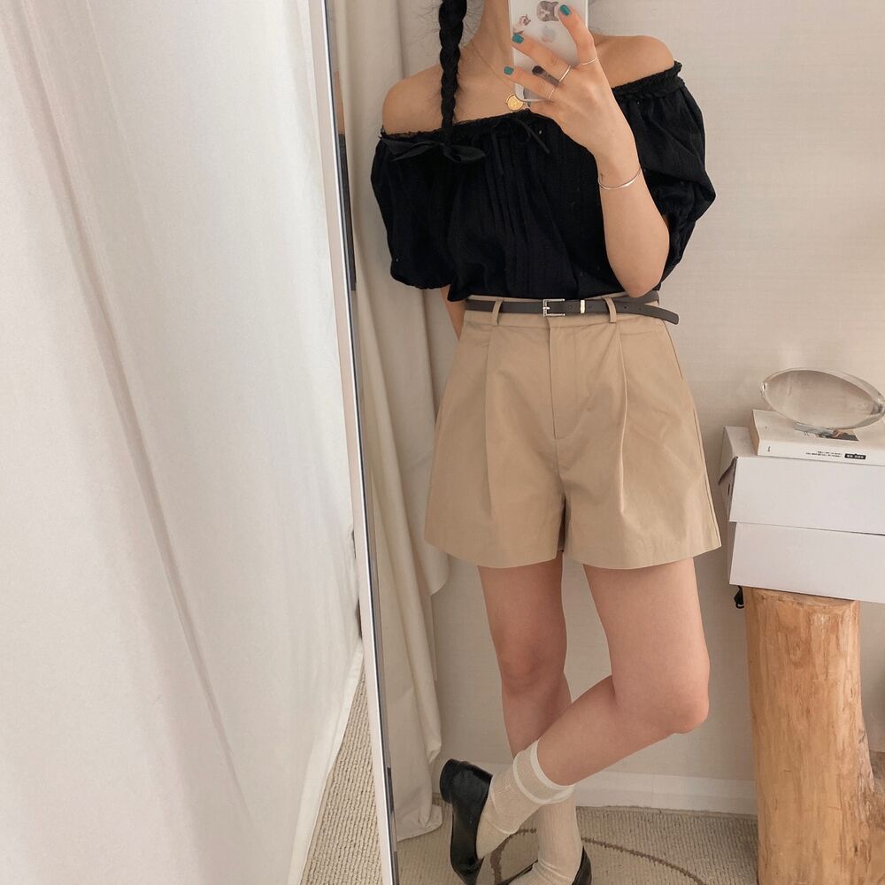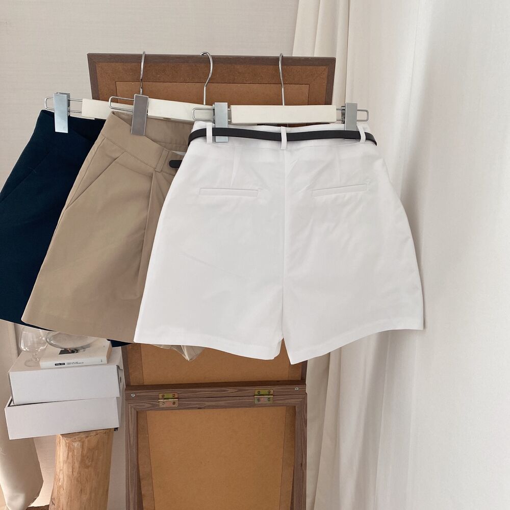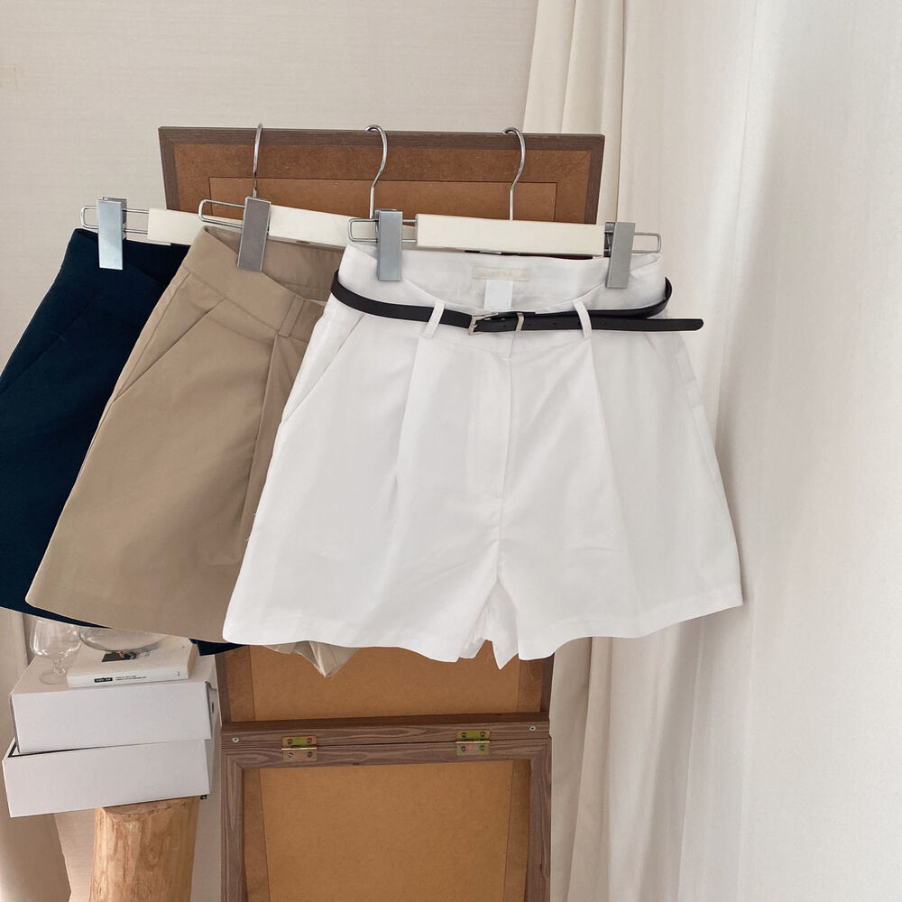 Women's/[BeltSET]ワンピンタックコットンサマーショーツ