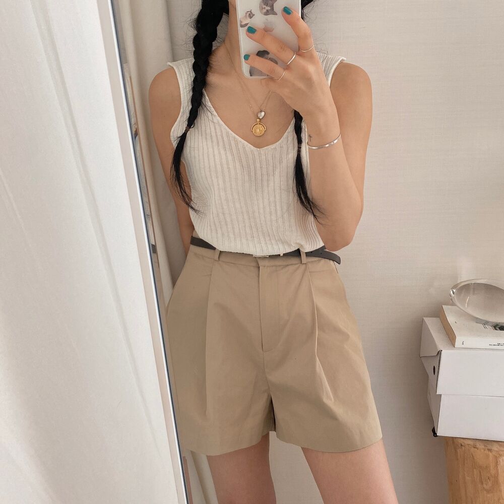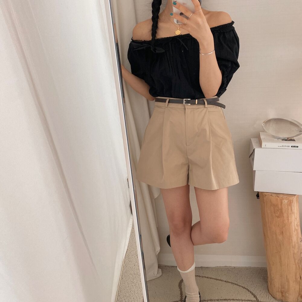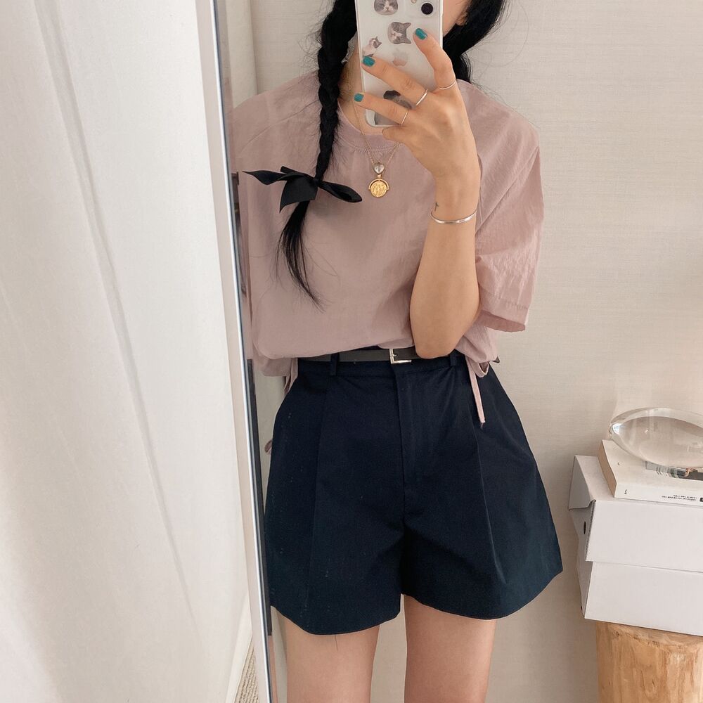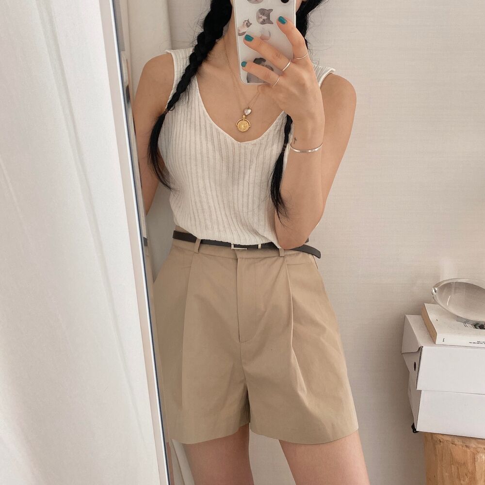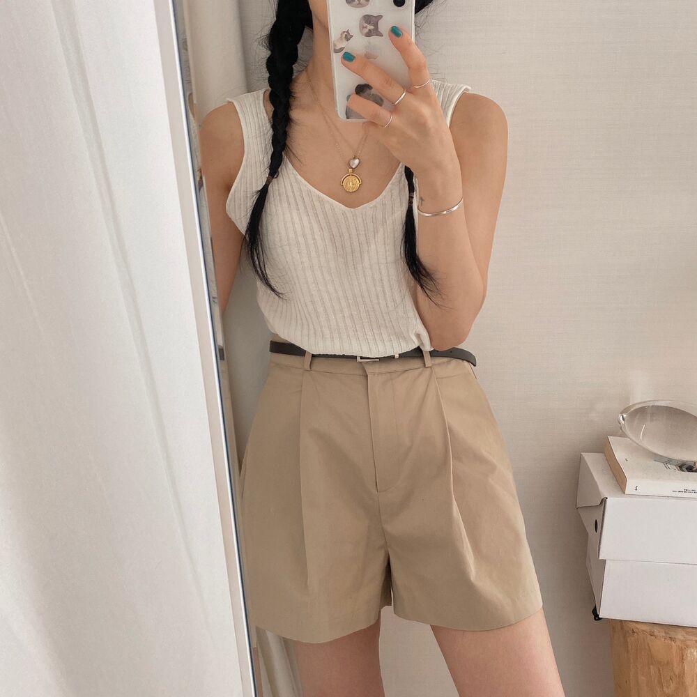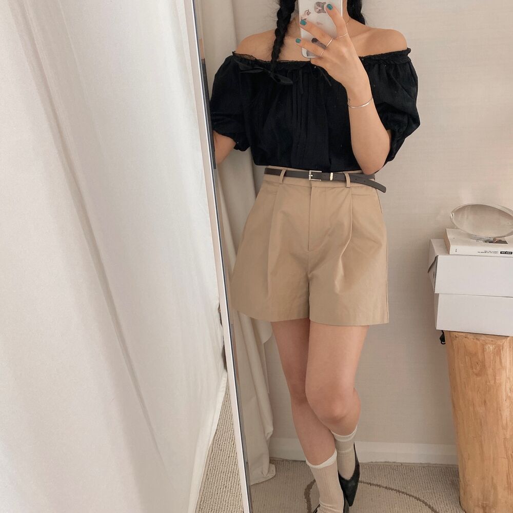Women's/[BeltSET]ワンピンタックコットンサマーショーツ
