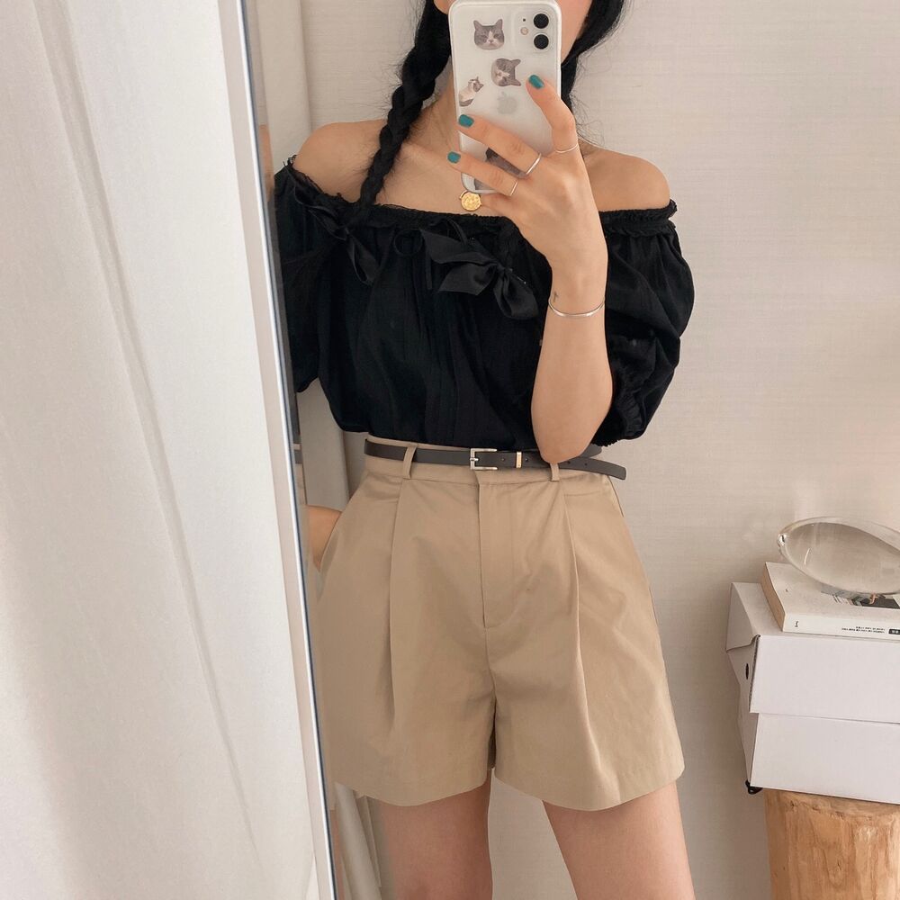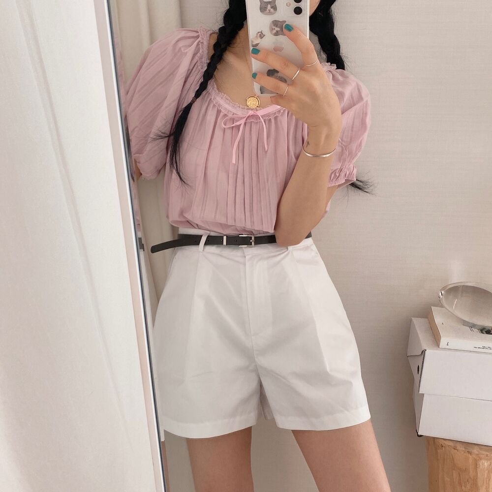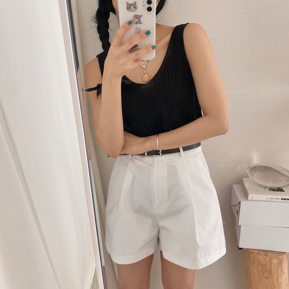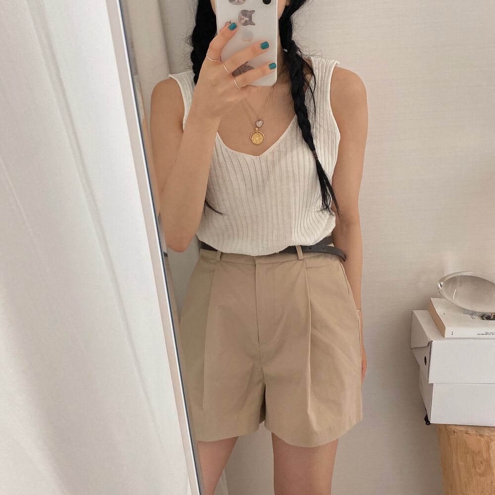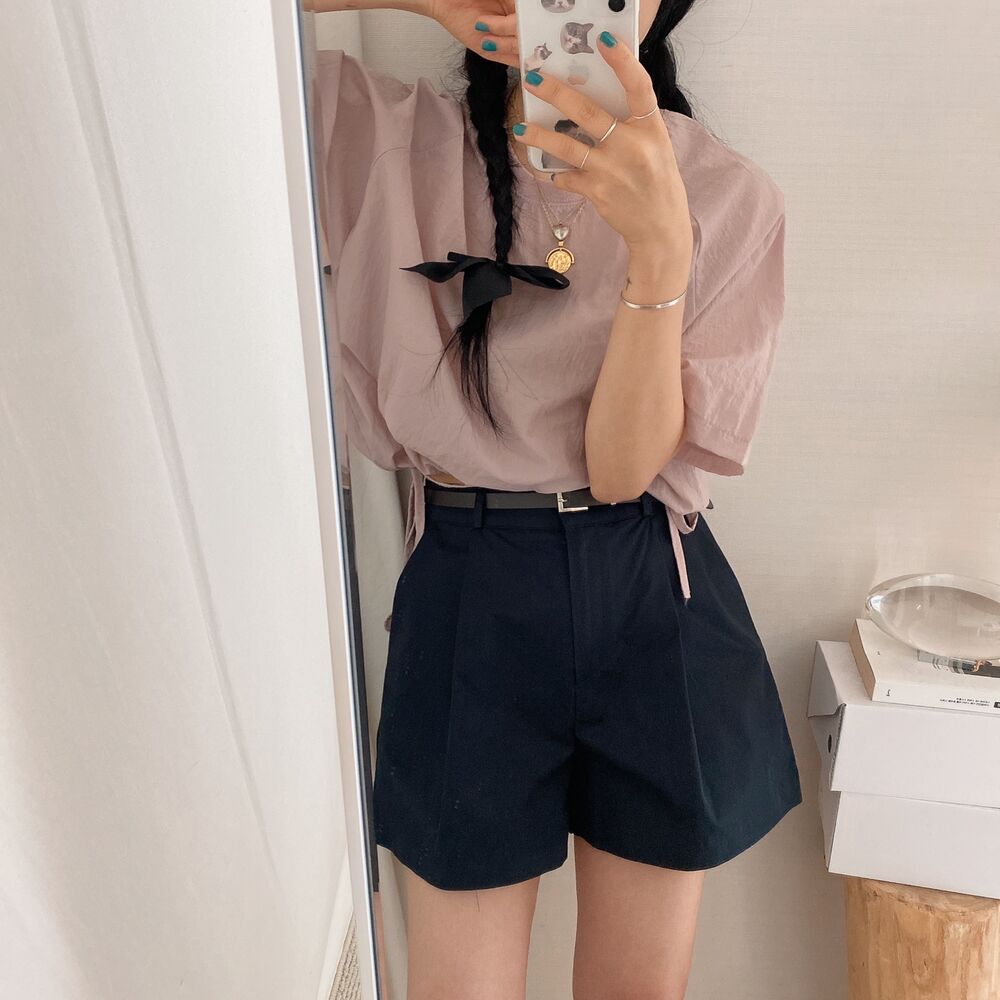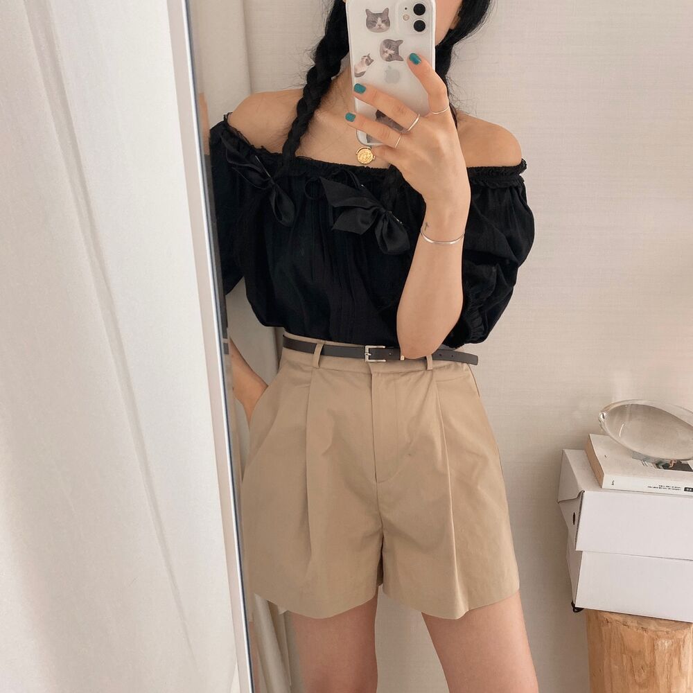Women's/[BeltSET]ワンピンタックコットンサマーショーツ