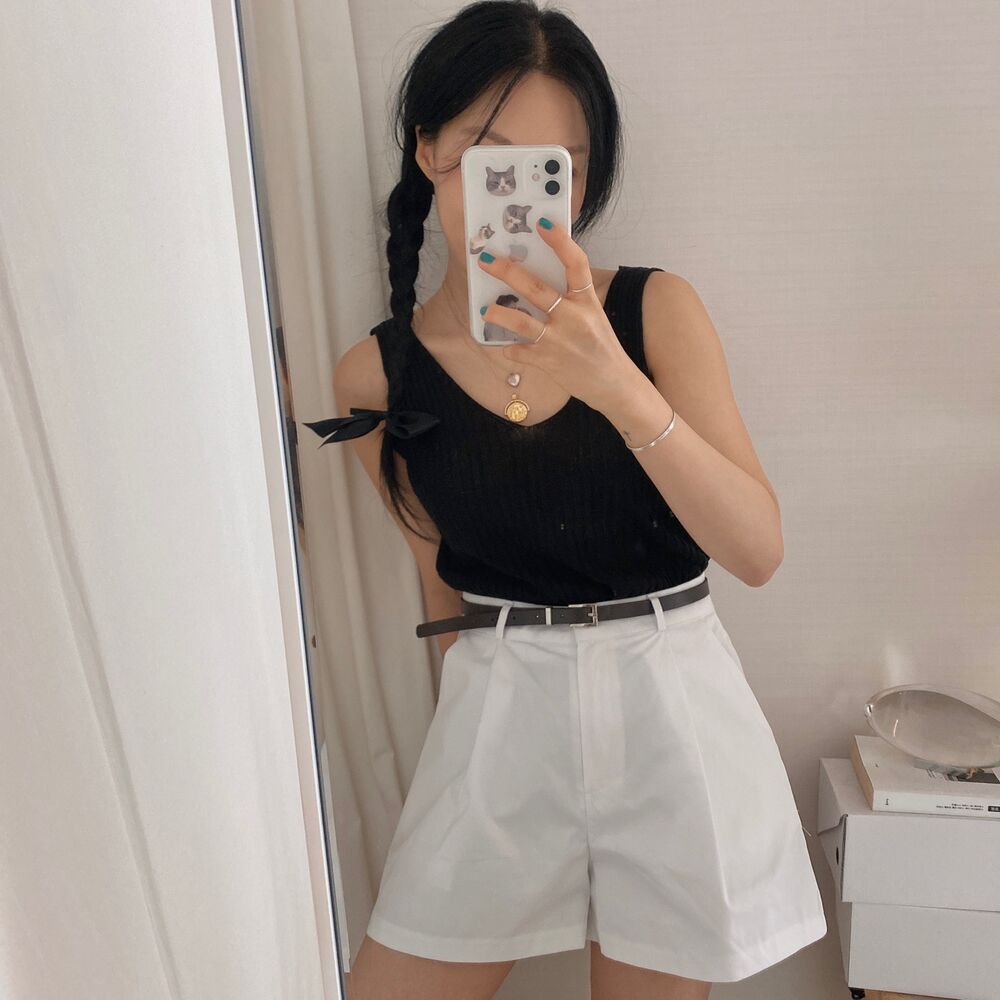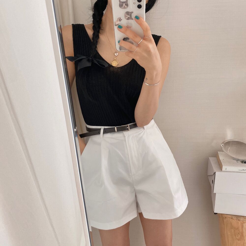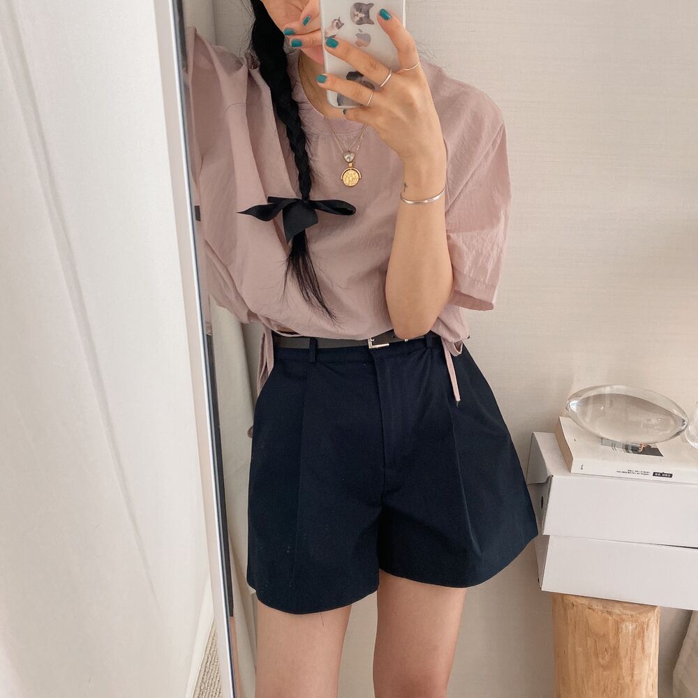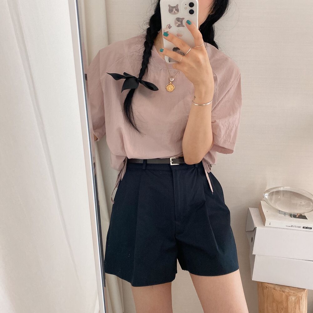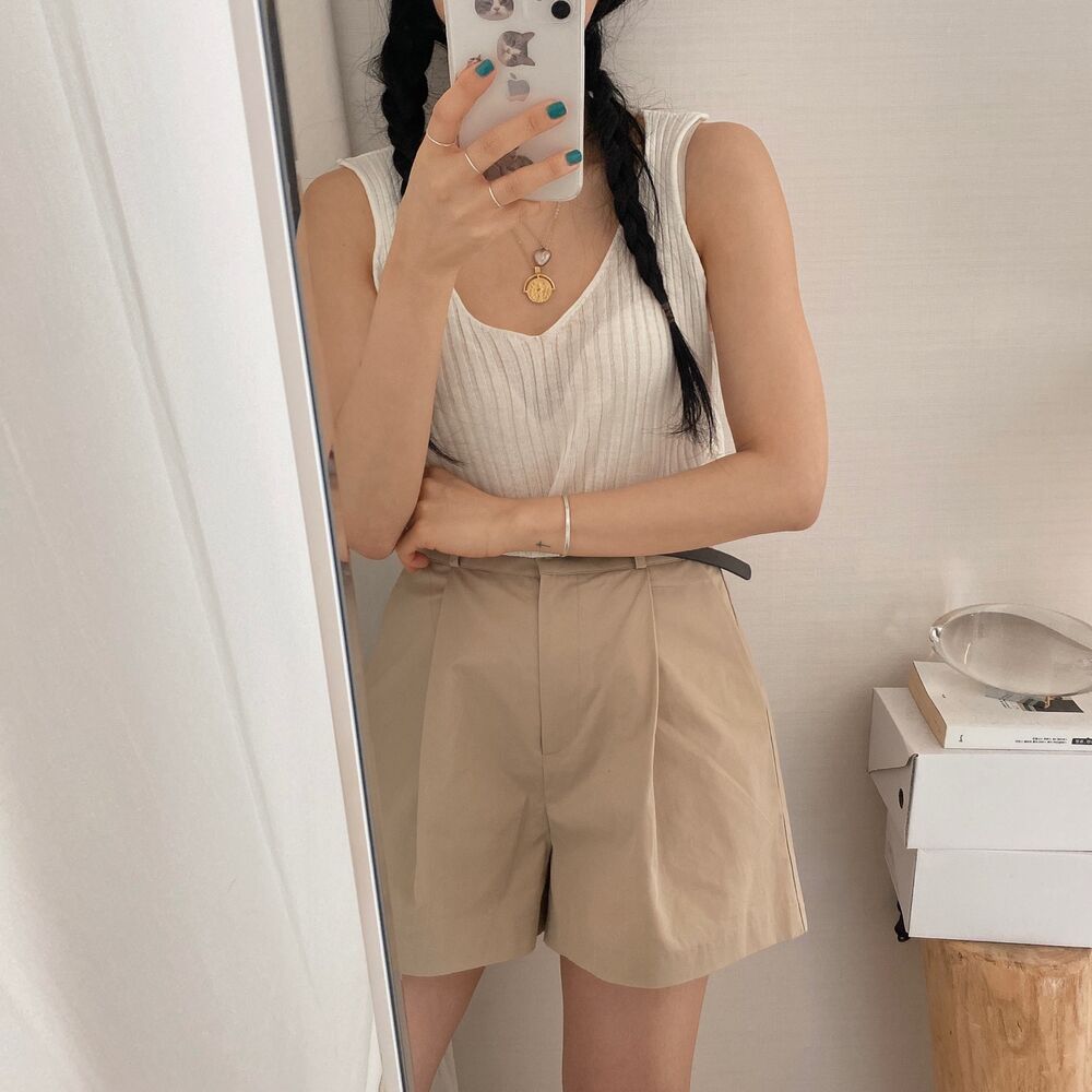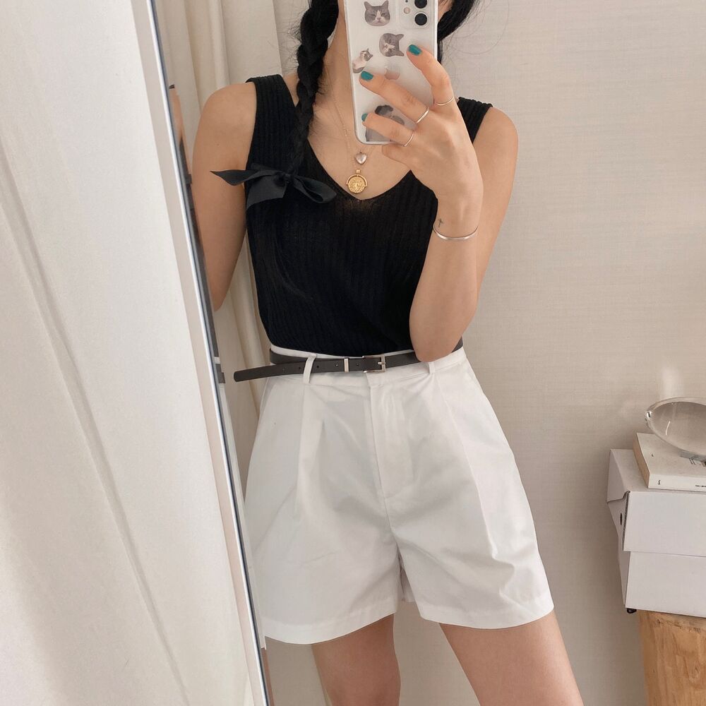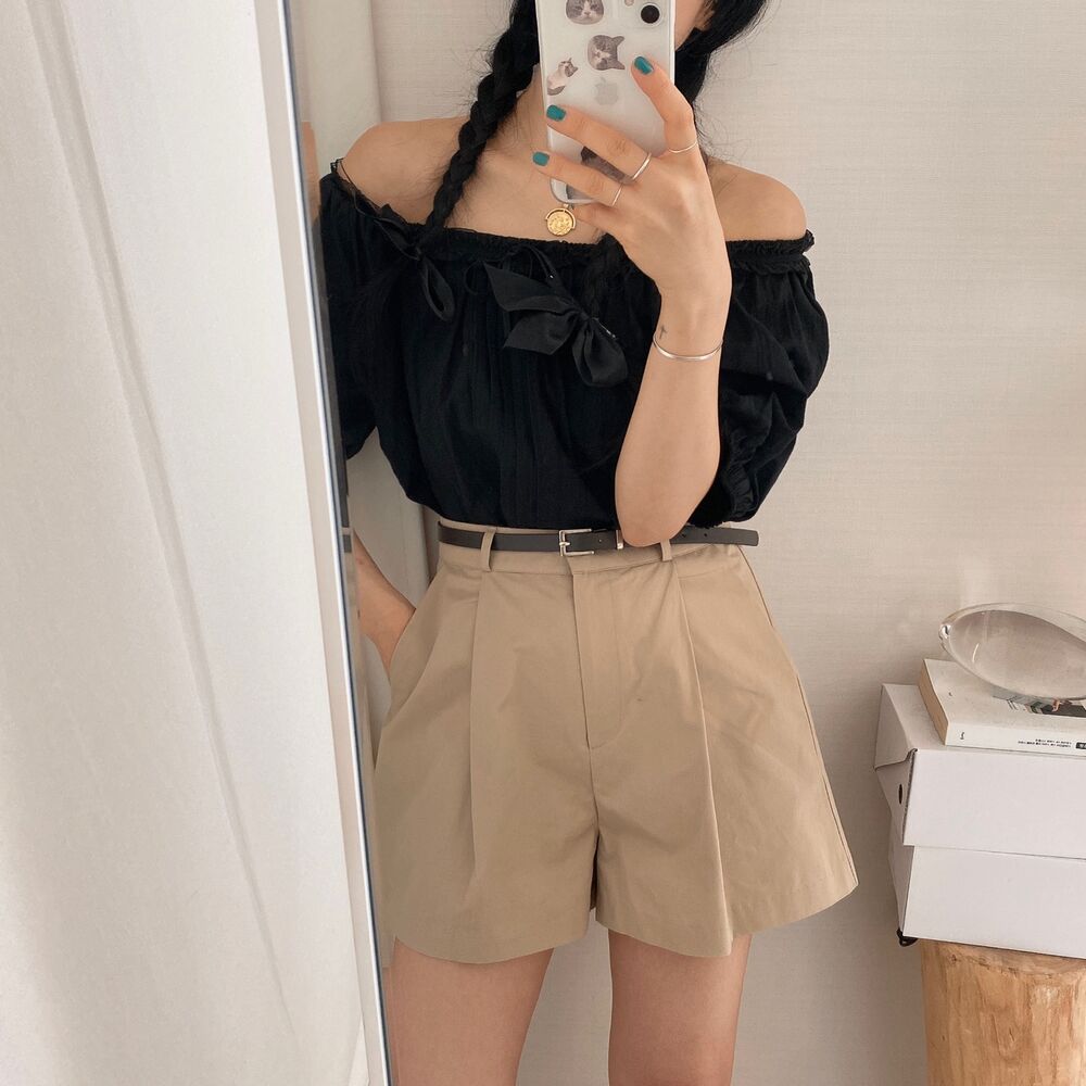 Women's/[BeltSET]ワンピンタックコットンサマーショーツ