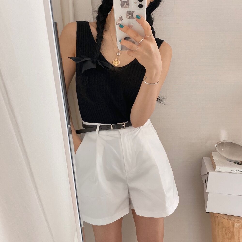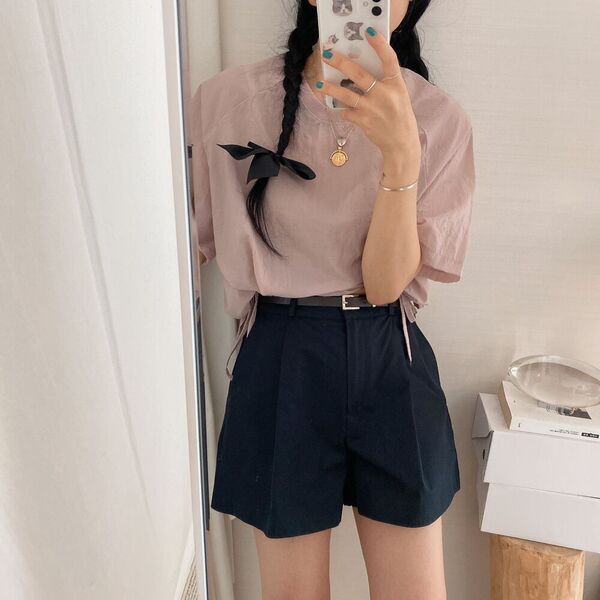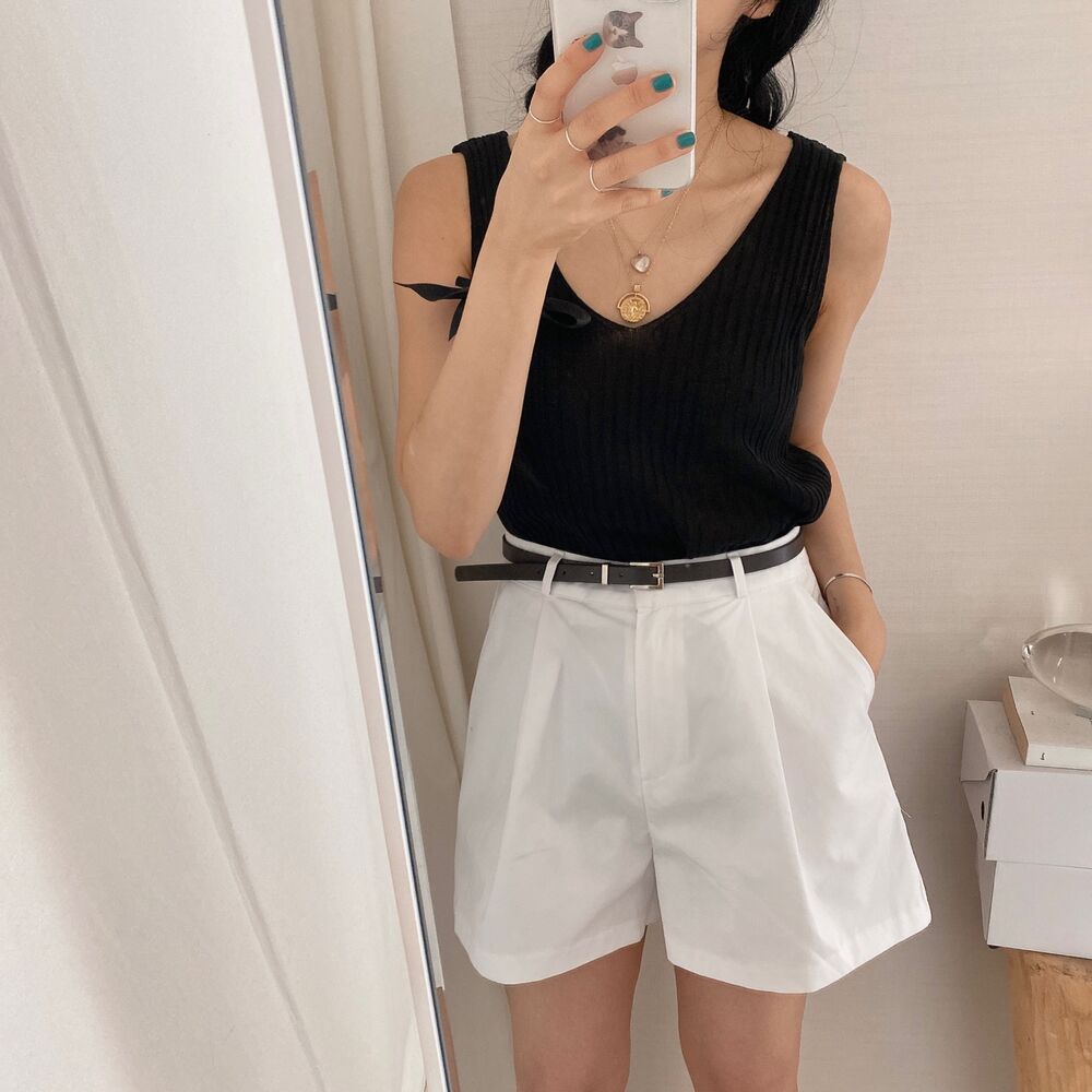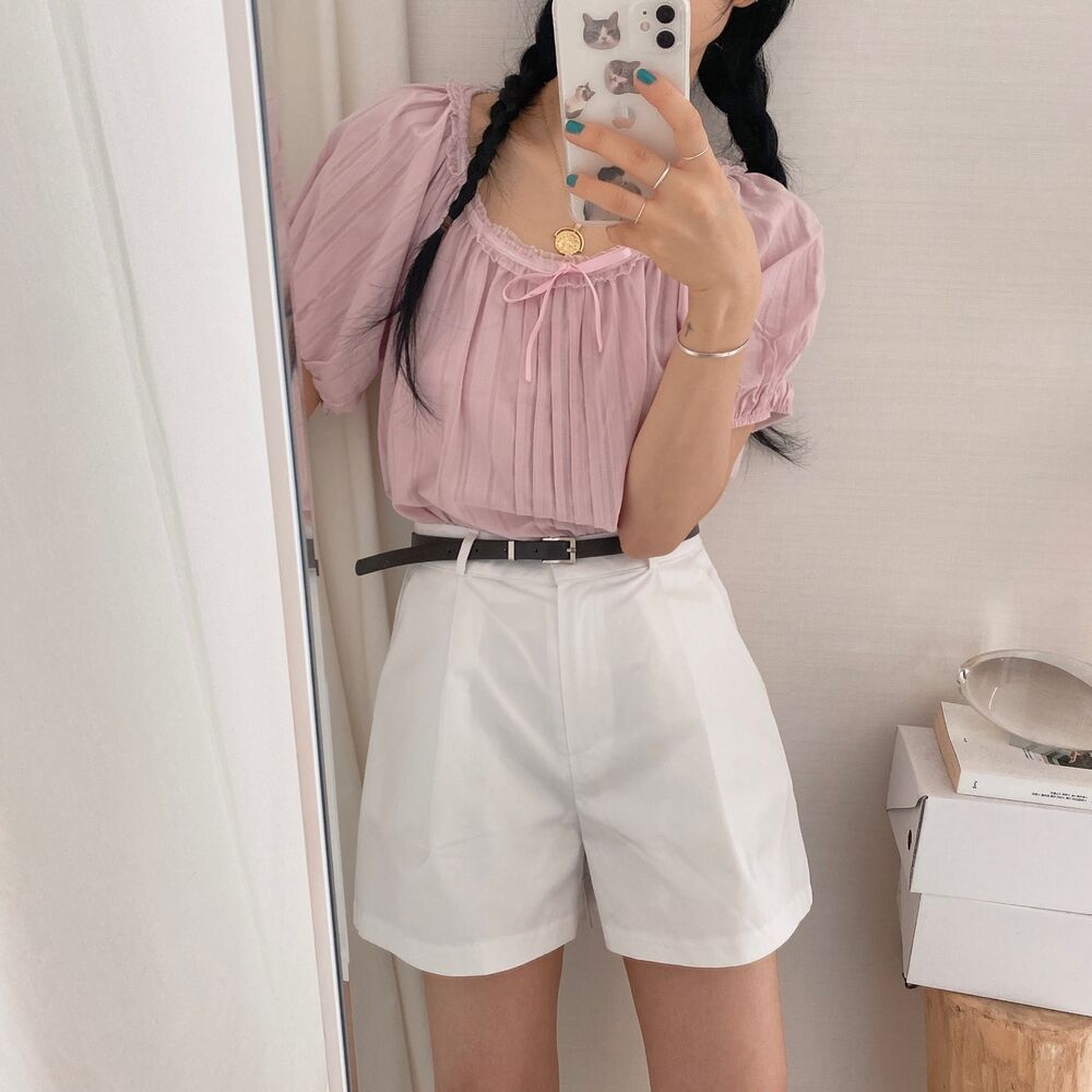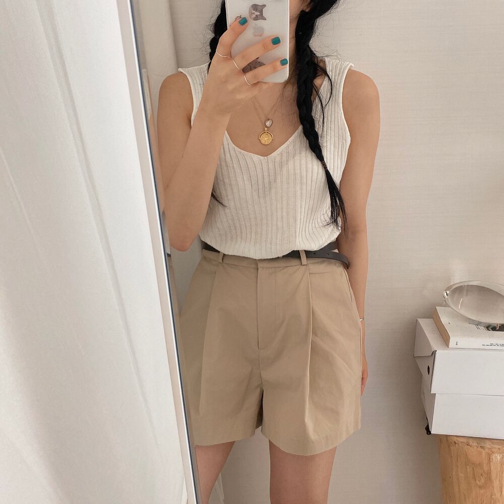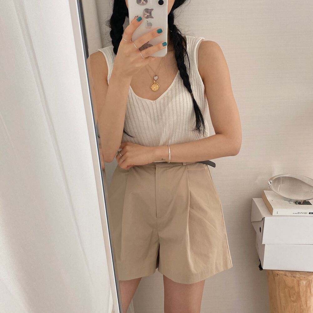 Women's/[BeltSET]ワンピンタックコットンサマーショーツ