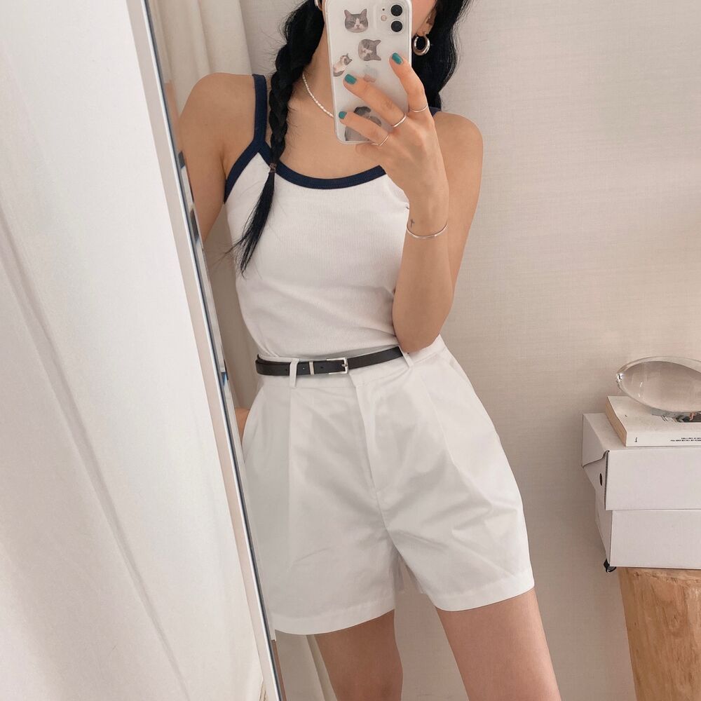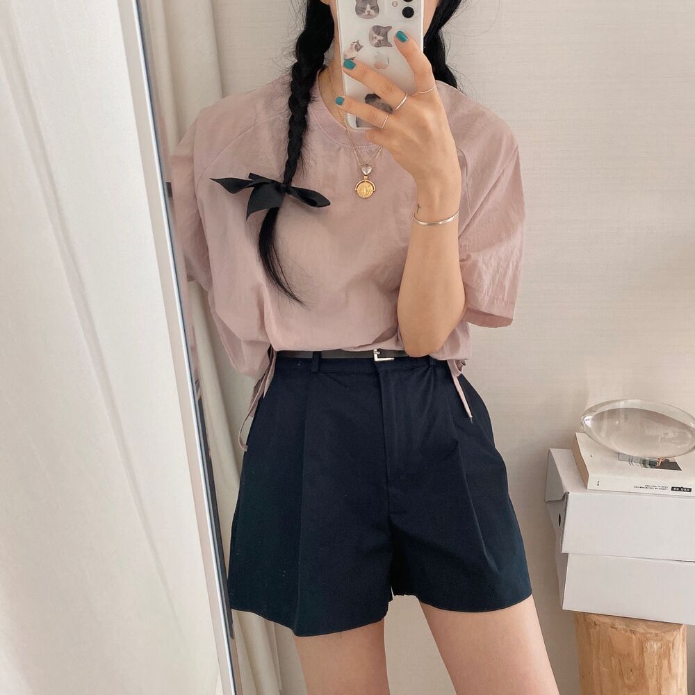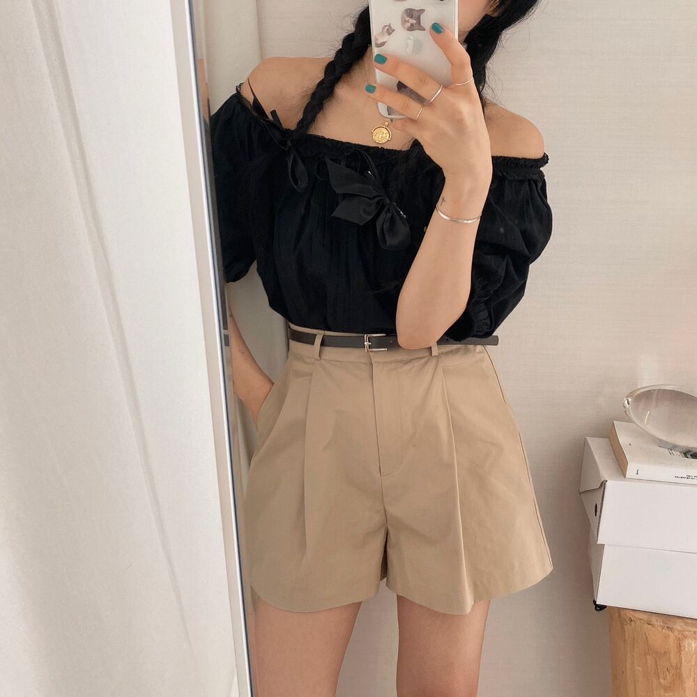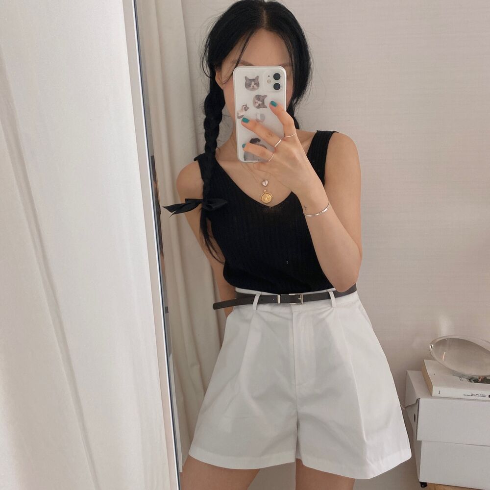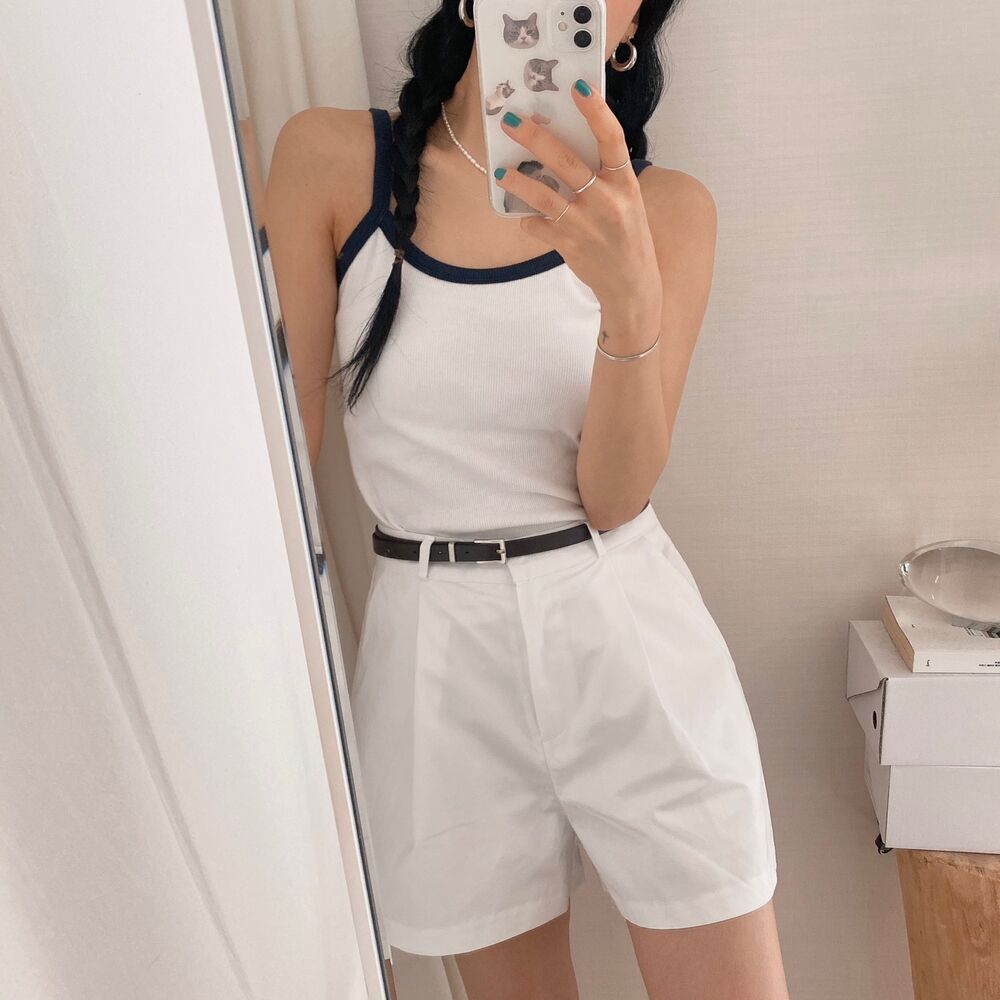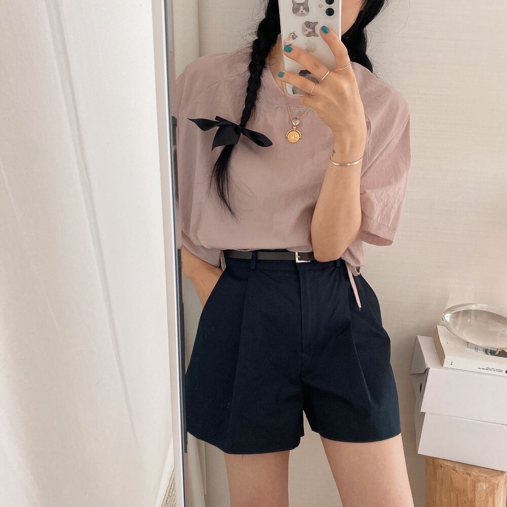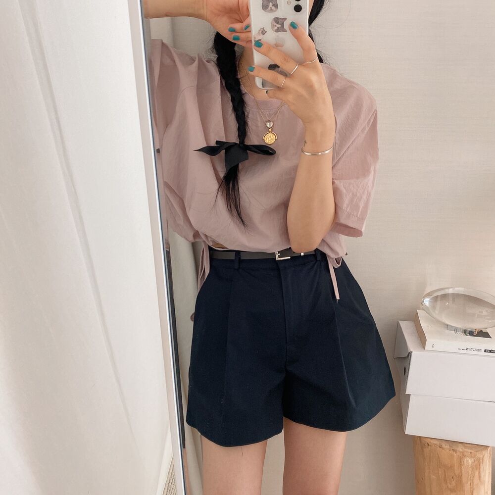 Women's/[BeltSET]ワンピンタックコットンサマーショーツ
