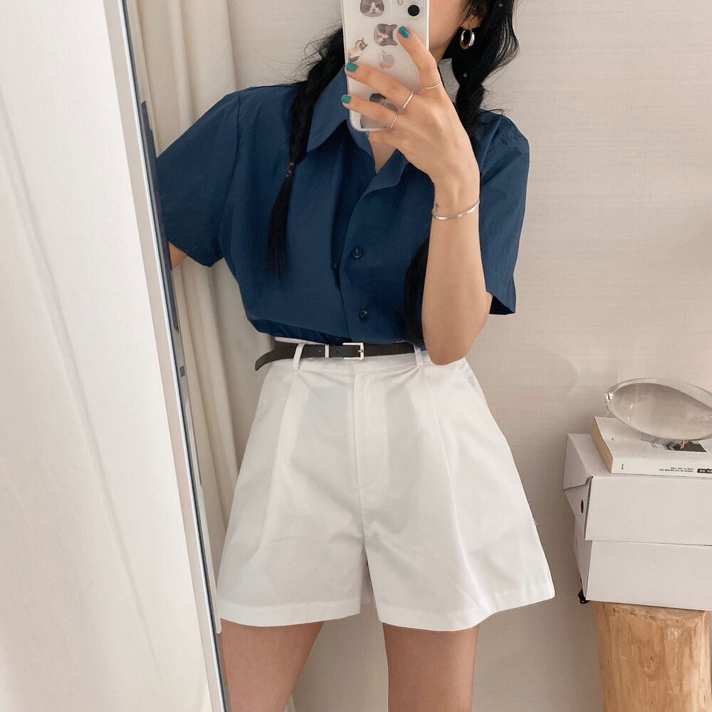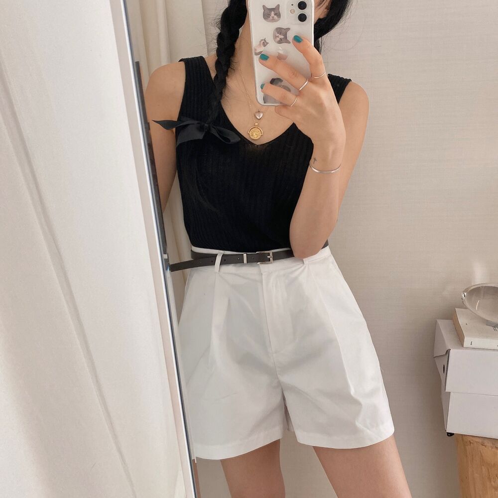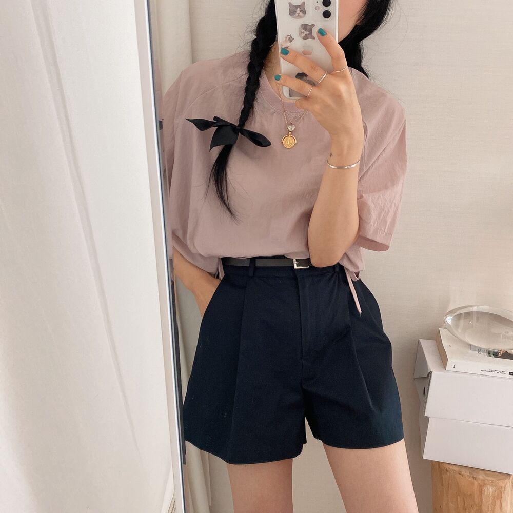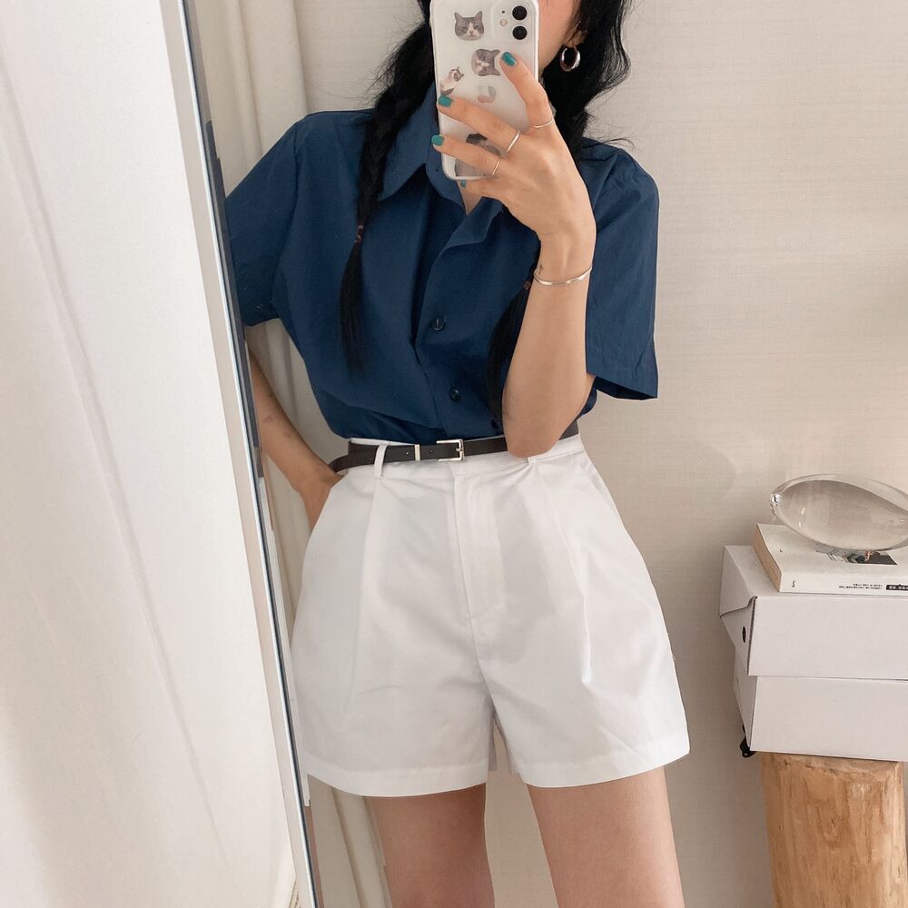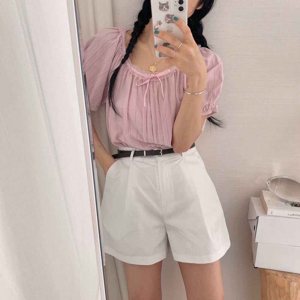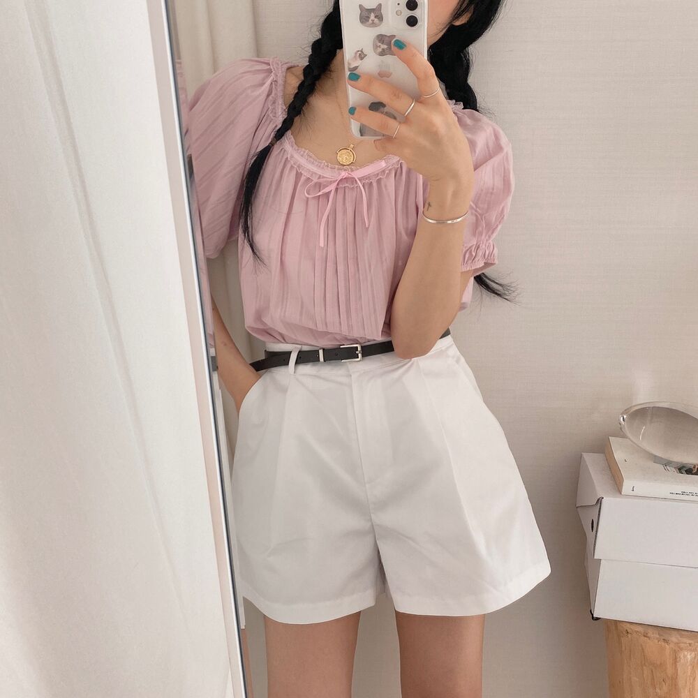 Women's/[BeltSET]ワンピンタックコットンサマーショーツ