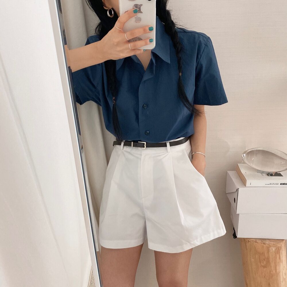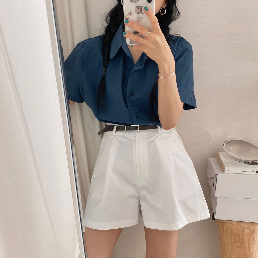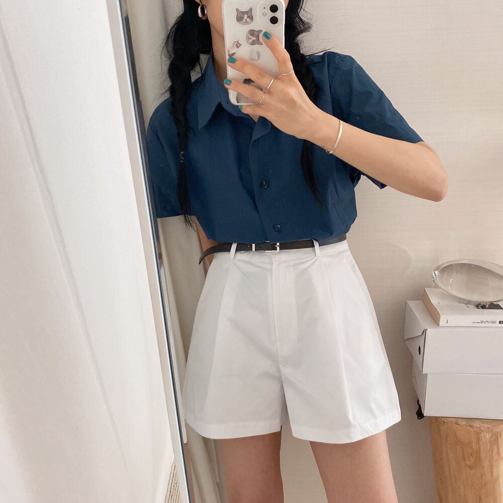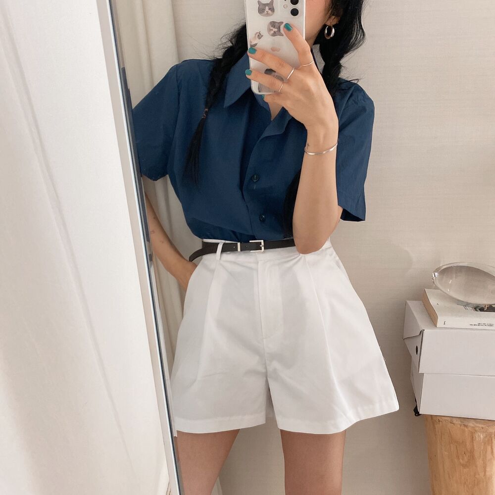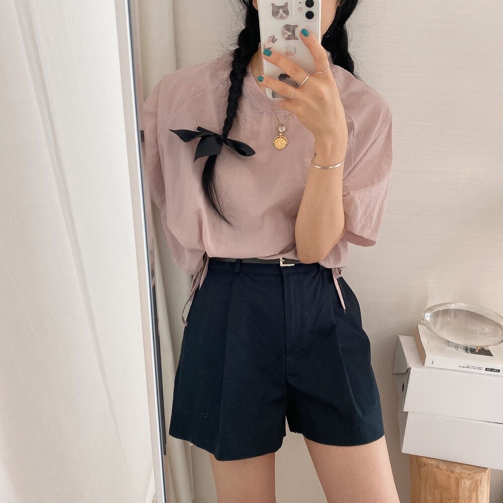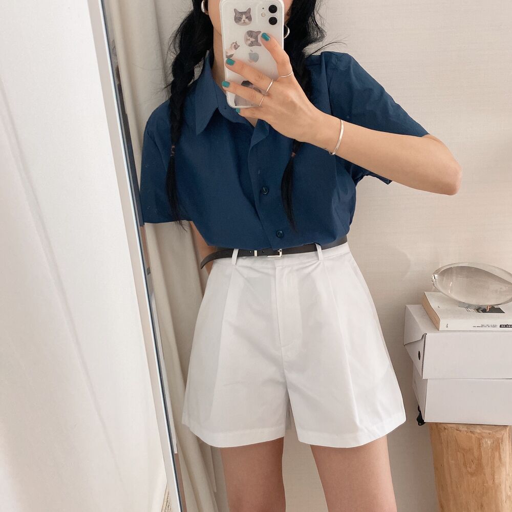 Women's/[BeltSET]ワンピンタックコットンサマーショーツ
