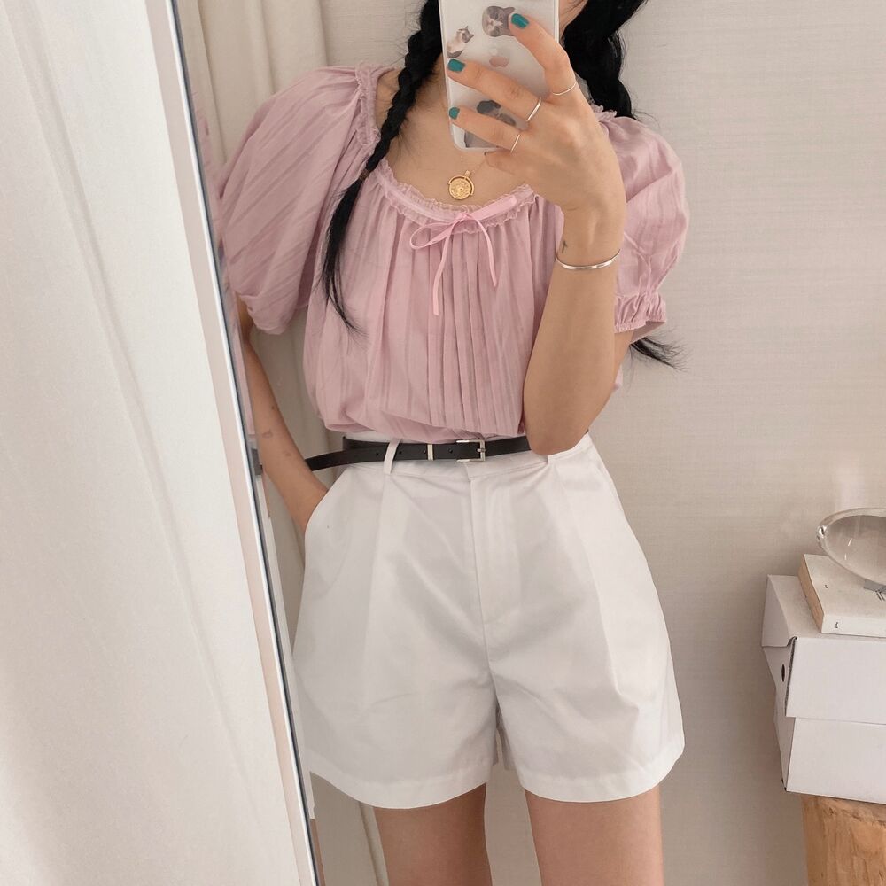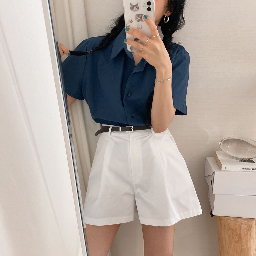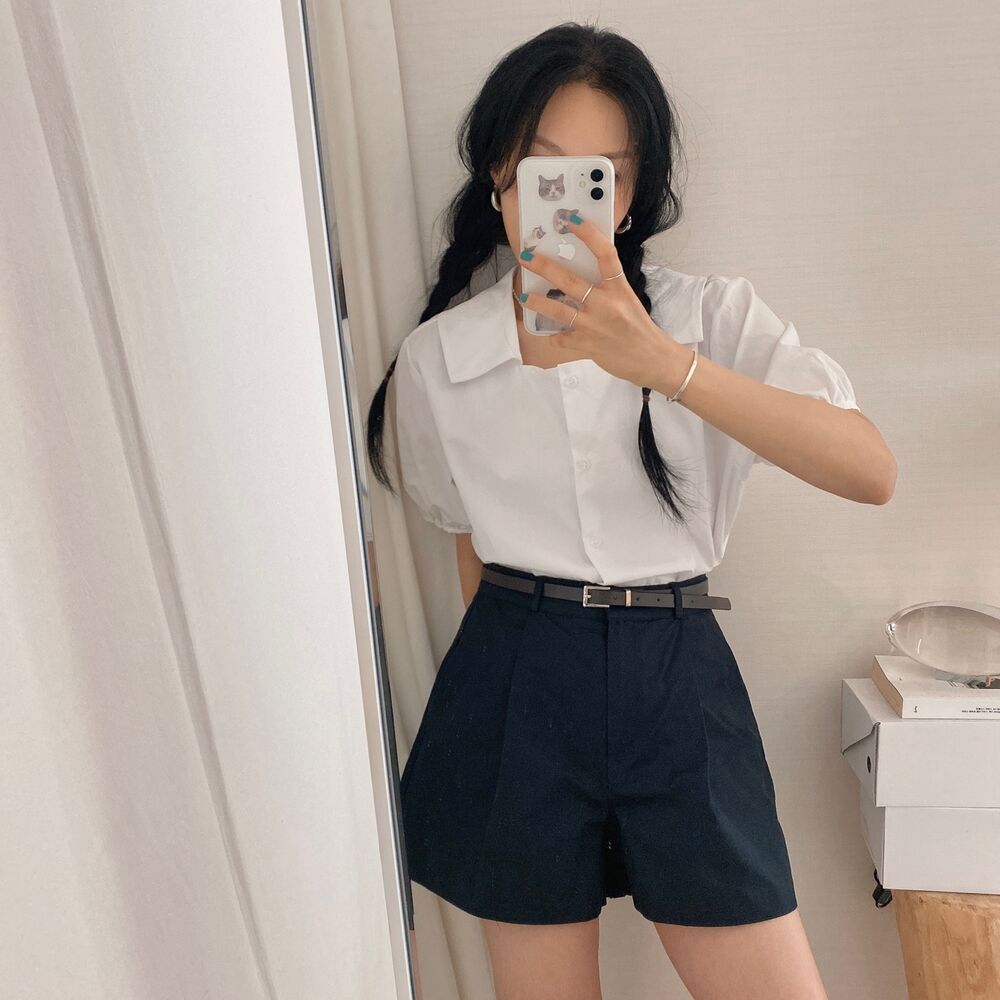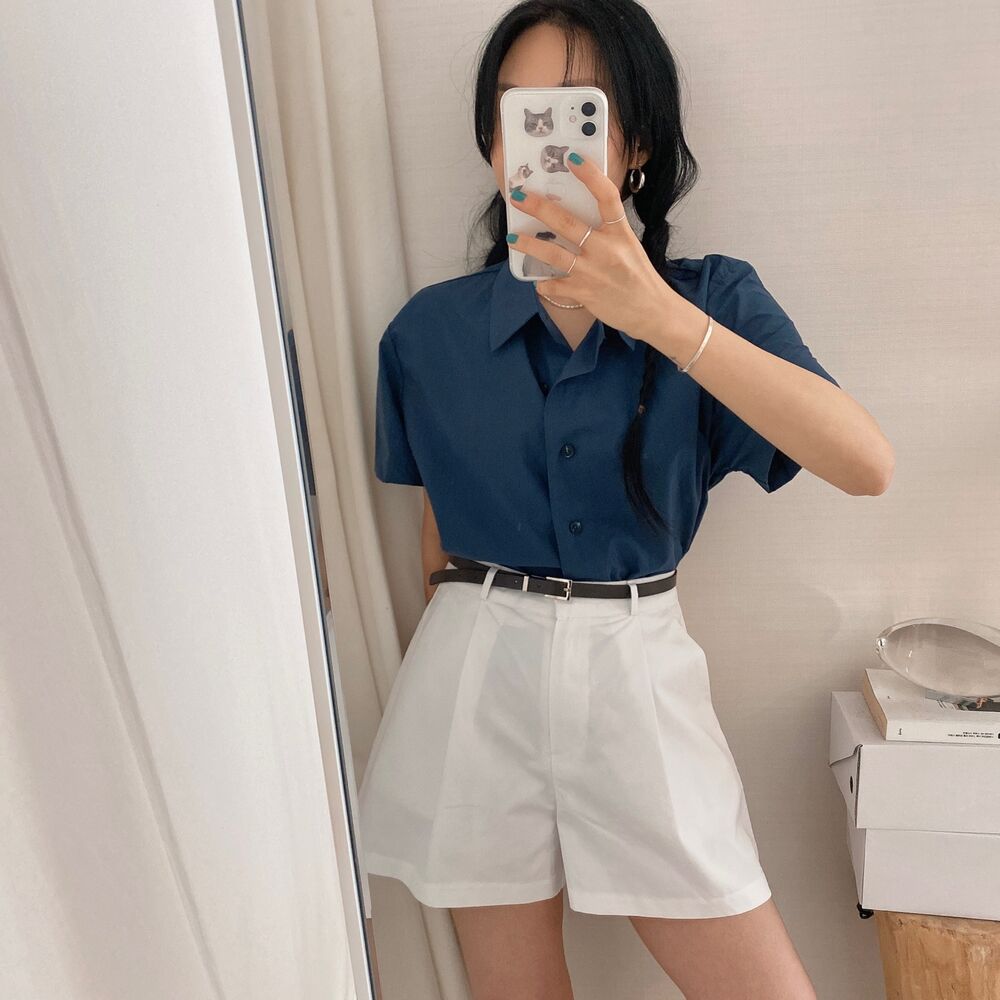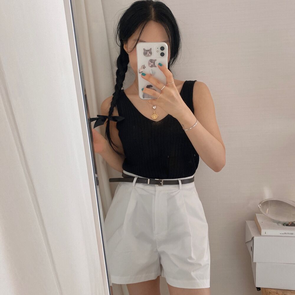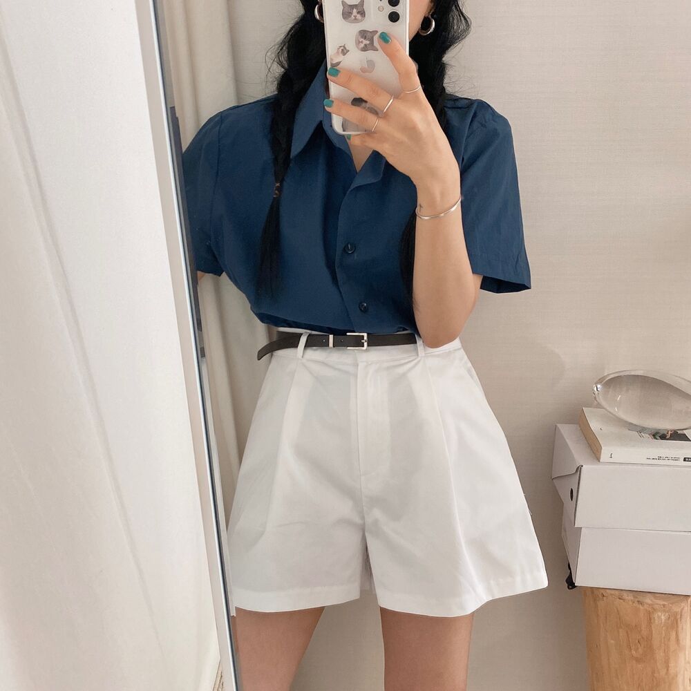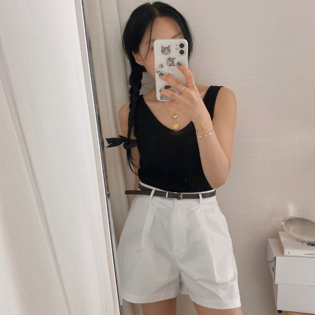 Women's/[BeltSET]ワンピンタックコットンサマーショーツ
