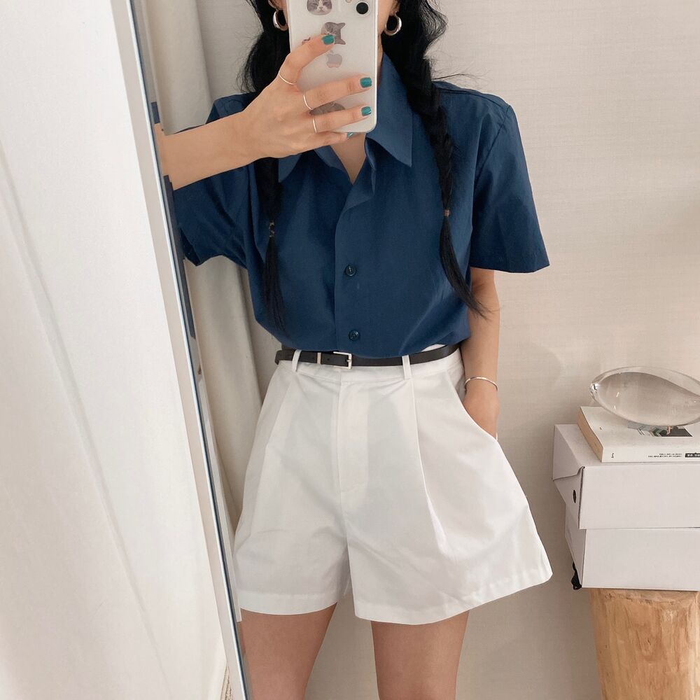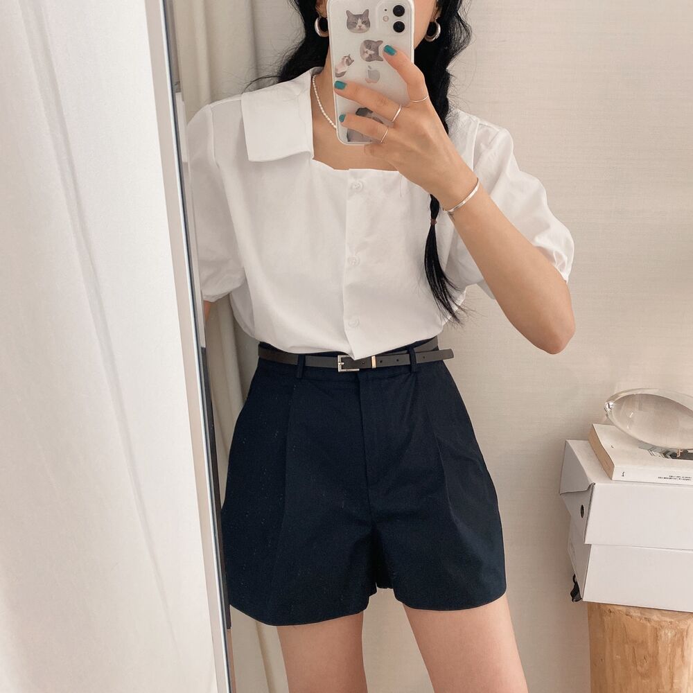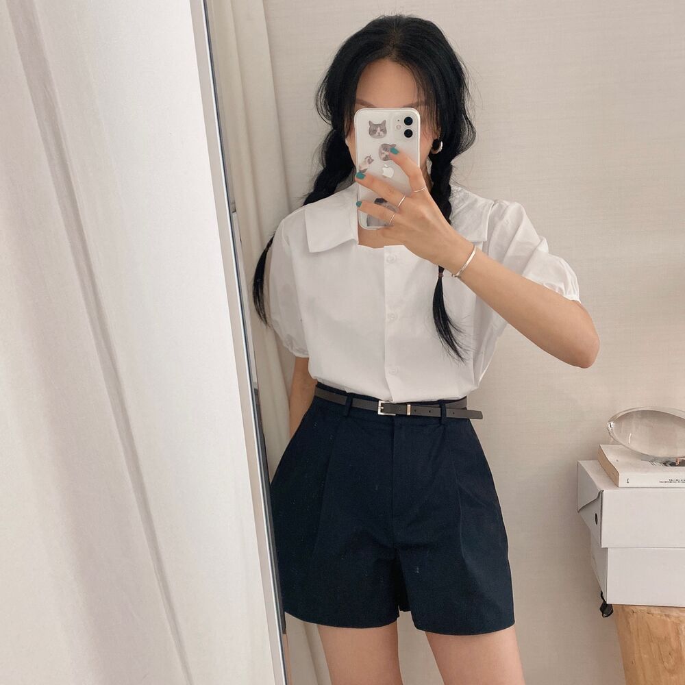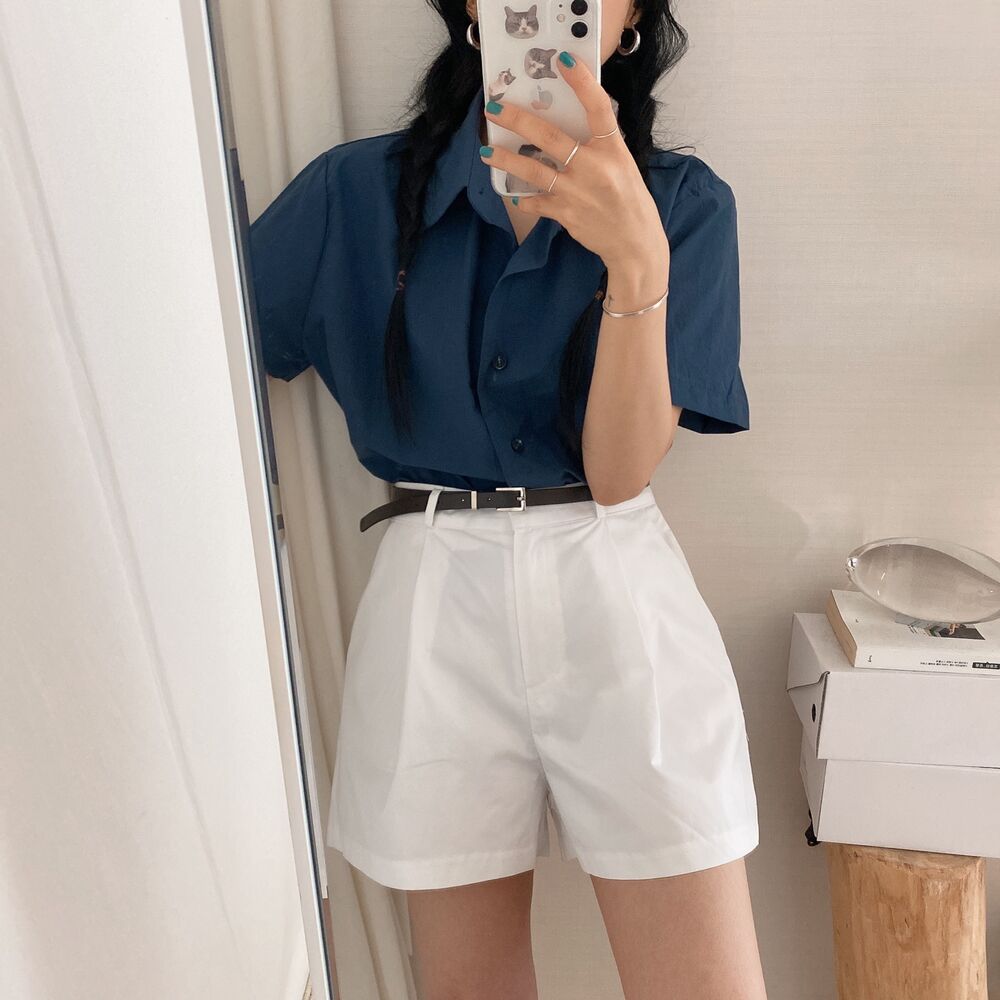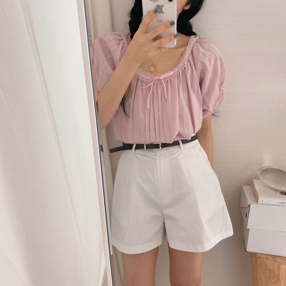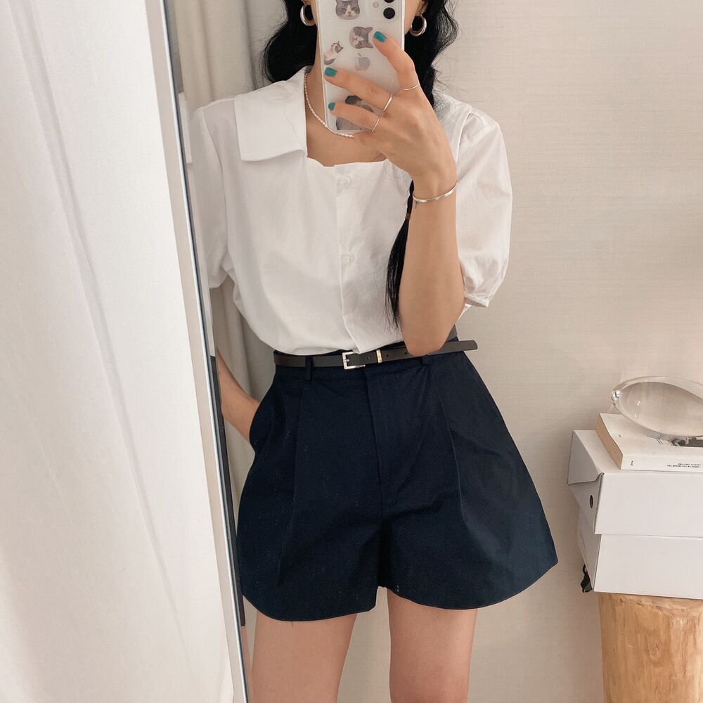 Women's/[BeltSET]ワンピンタックコットンサマーショーツ