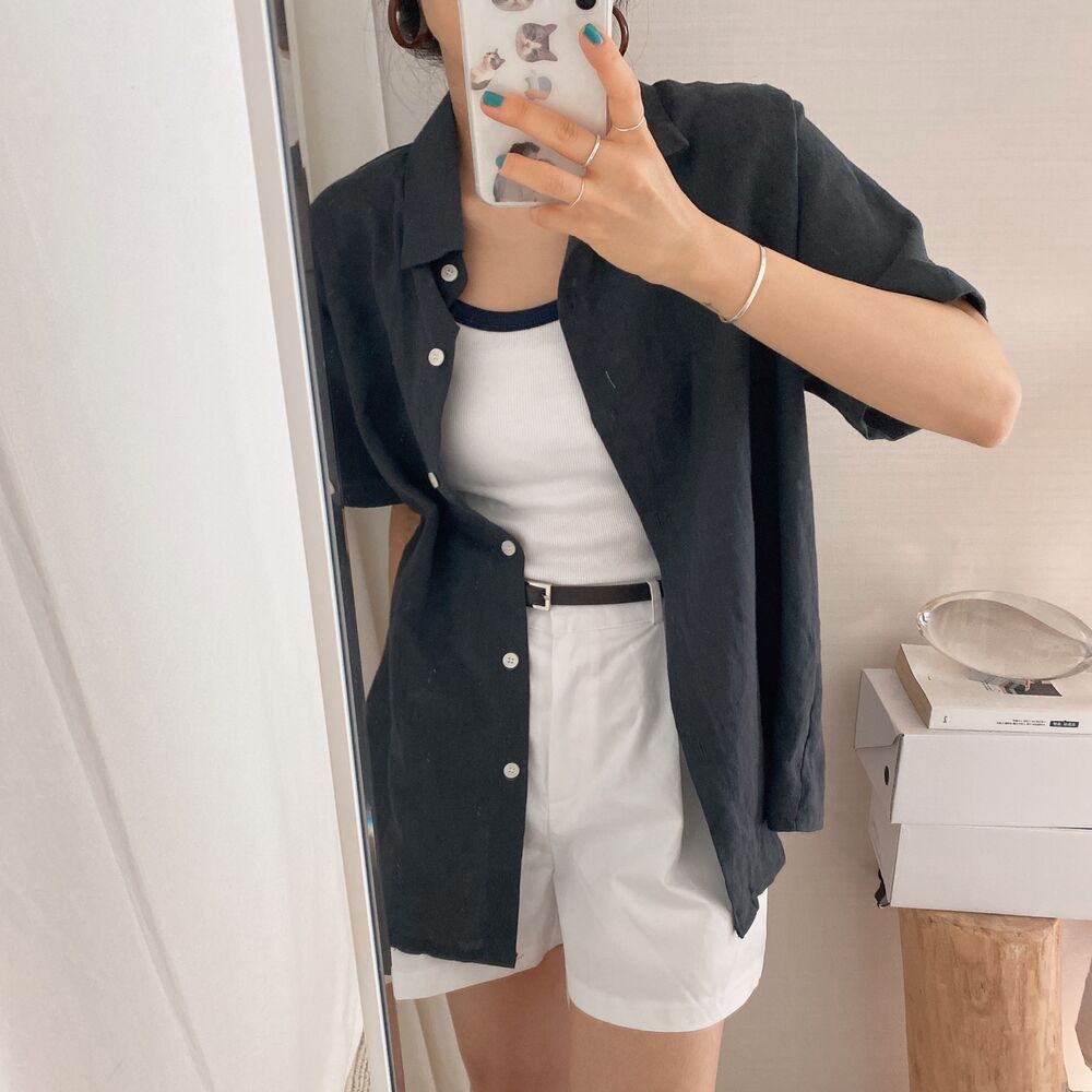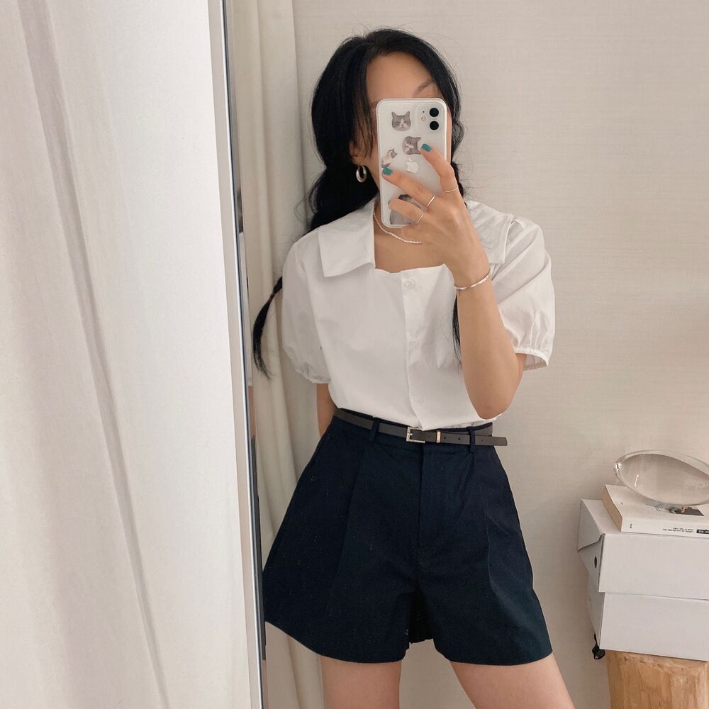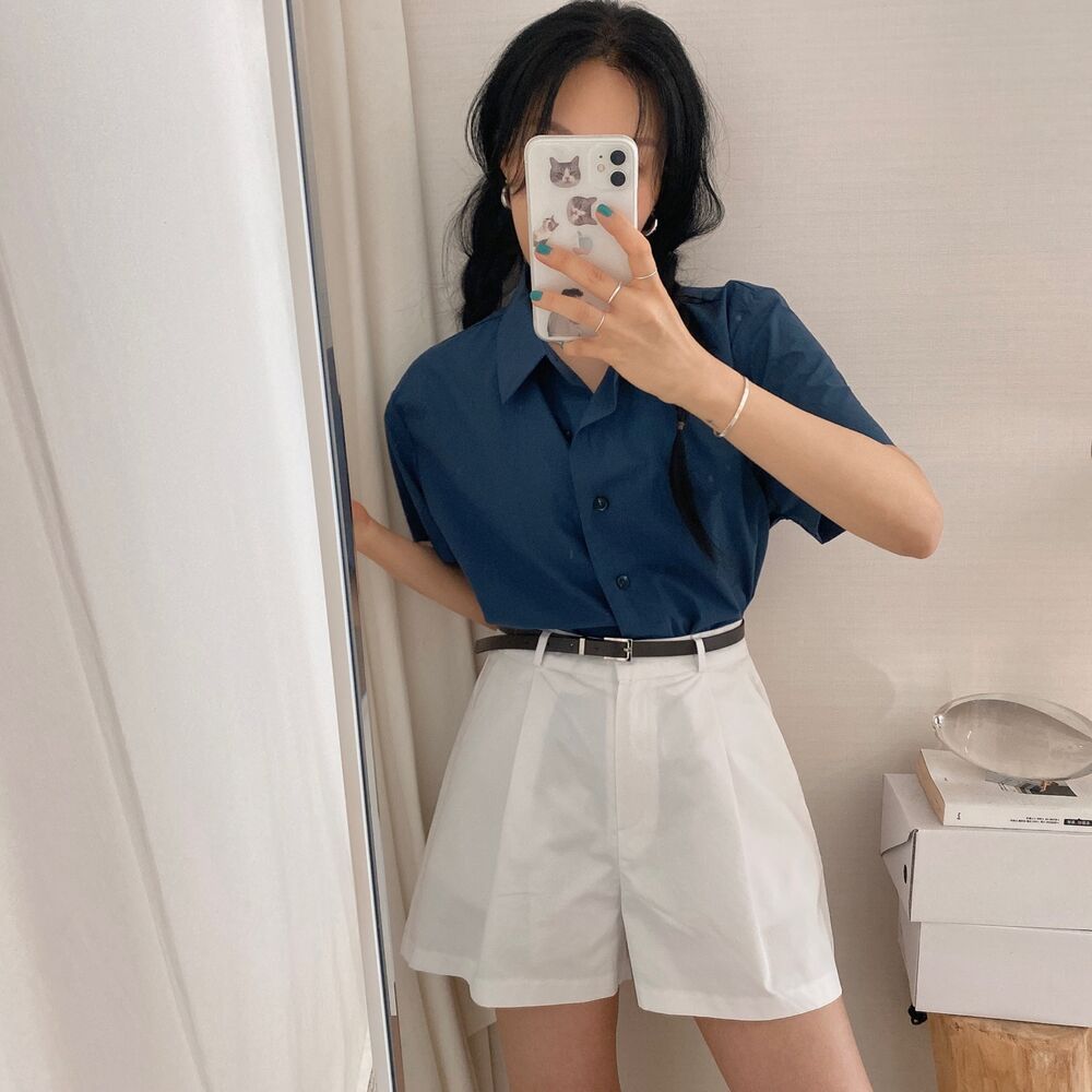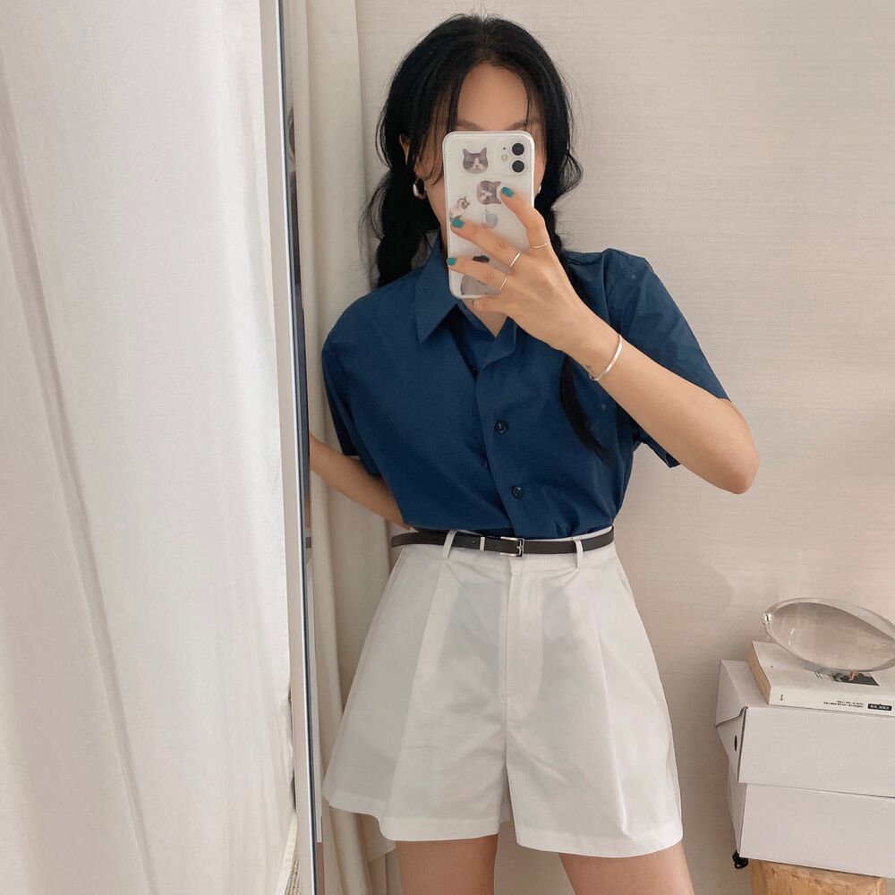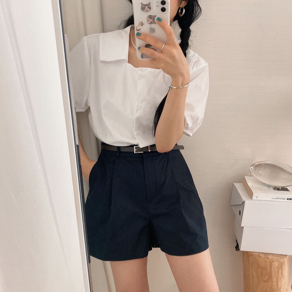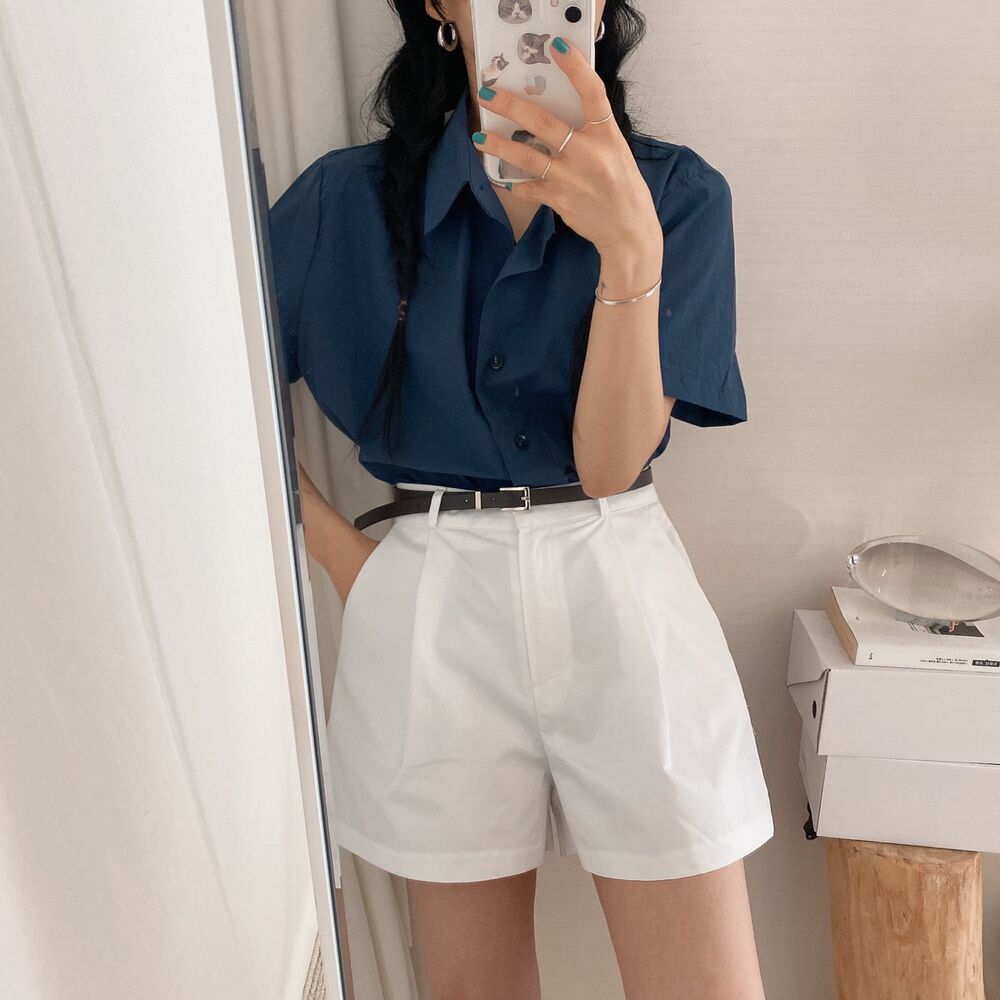 Women's/[BeltSET]ワンピンタックコットンサマーショーツ