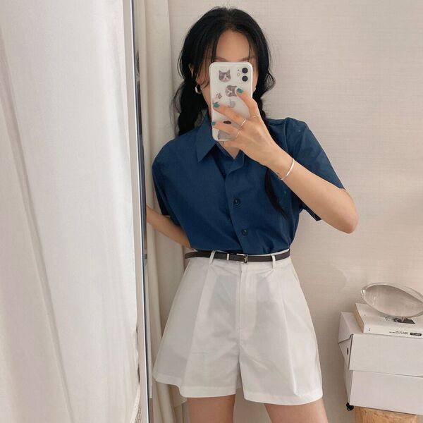 [BeltSET]ワンピンタックコットンサマーショーツ