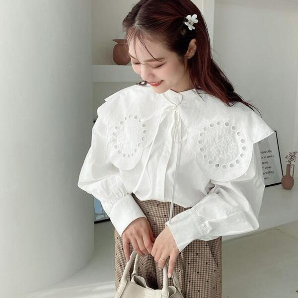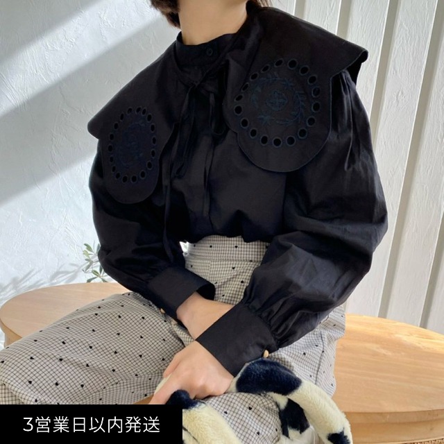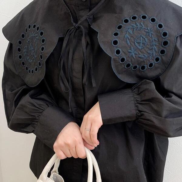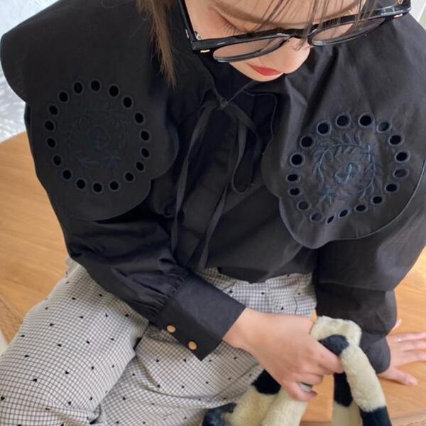 スカラップレースのつけ襟が、大人っぽい可愛さです。