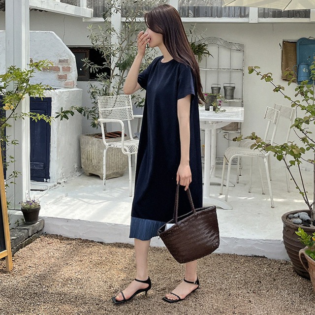[original] 配色プリーツルーズフィットワンピース
