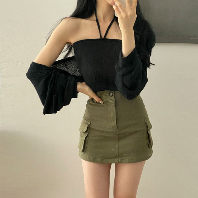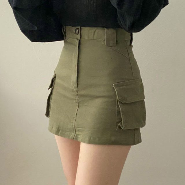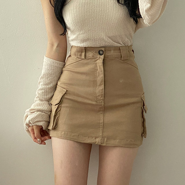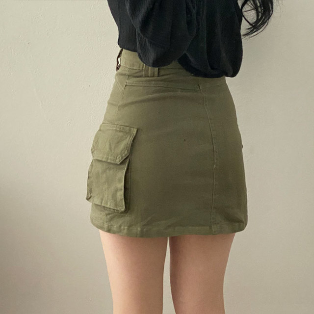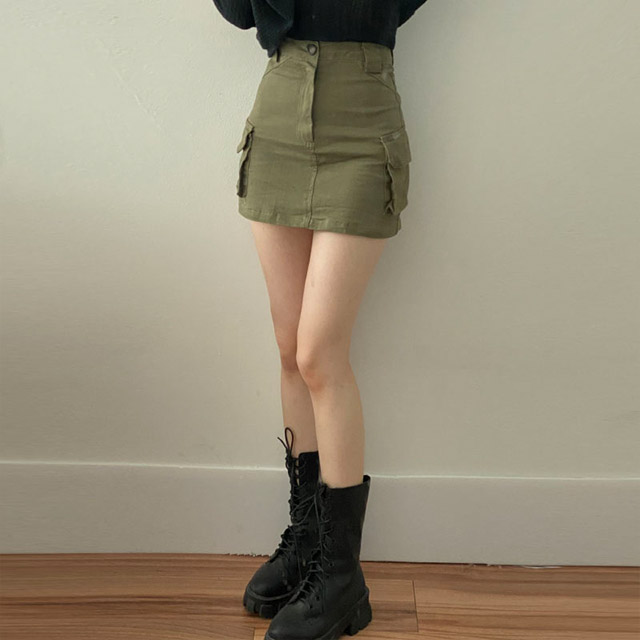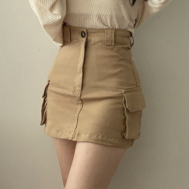 Women's/[3color] スパンカーゴポケットミニスカートパンツ