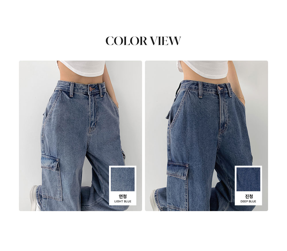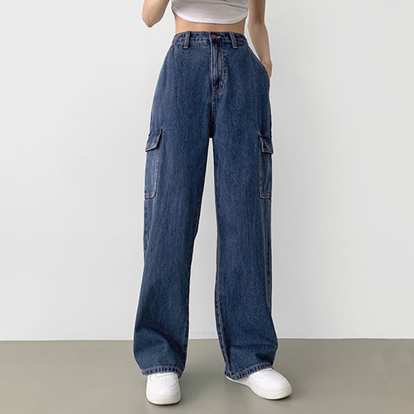 Women's/アメカジカーゴポケットロングワイドデニムパンツ