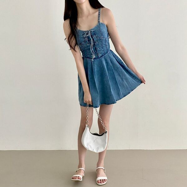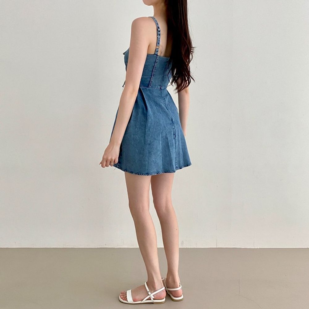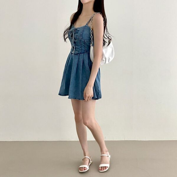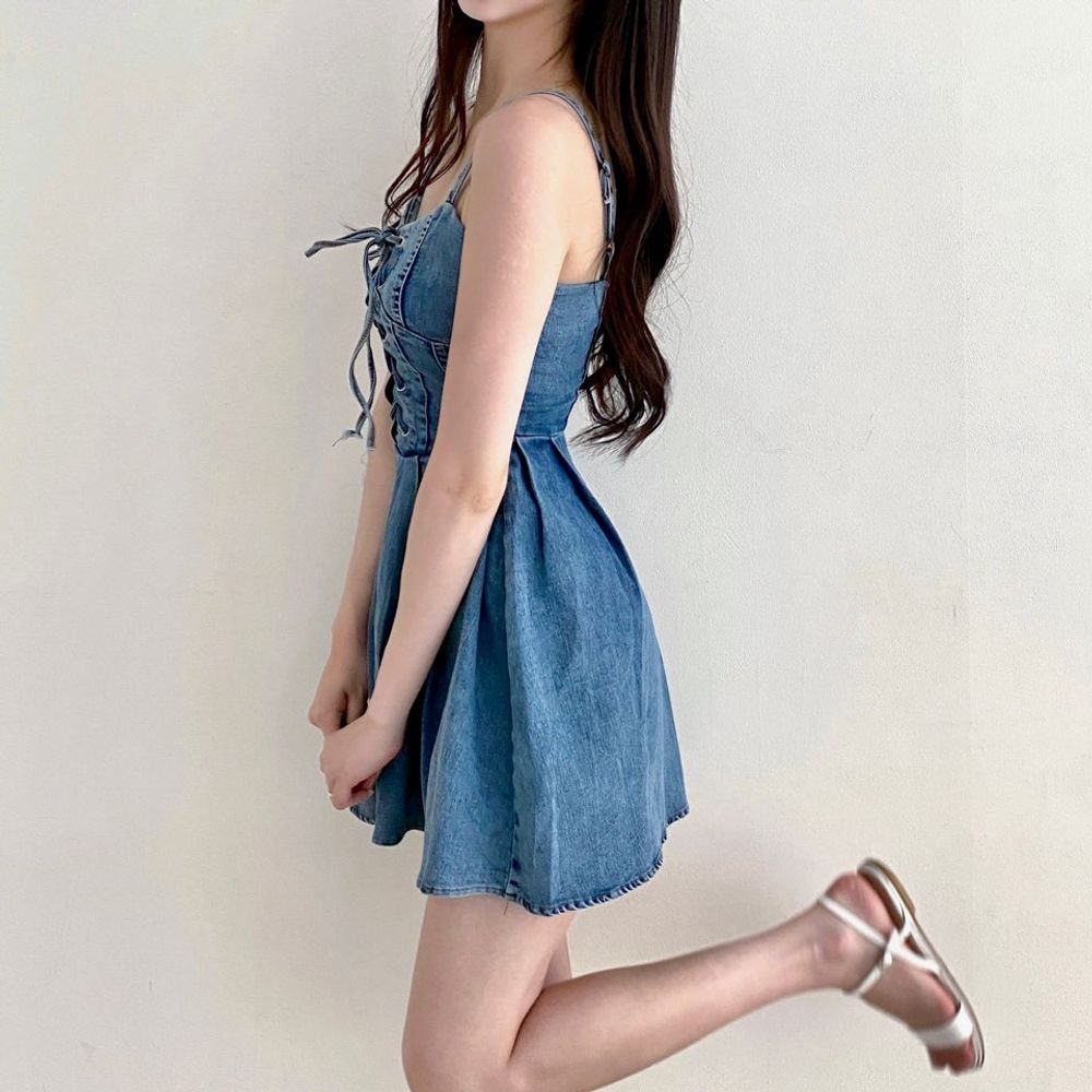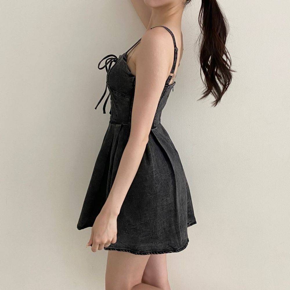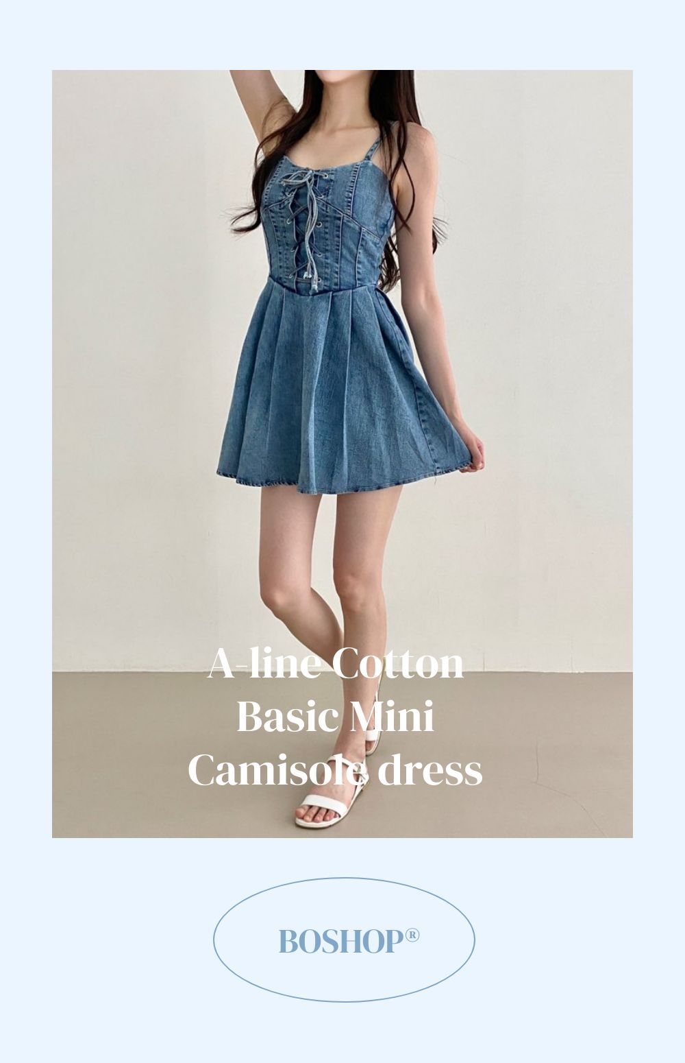 無地 Aライン コットン ベーシック ミニ キャミワンピース