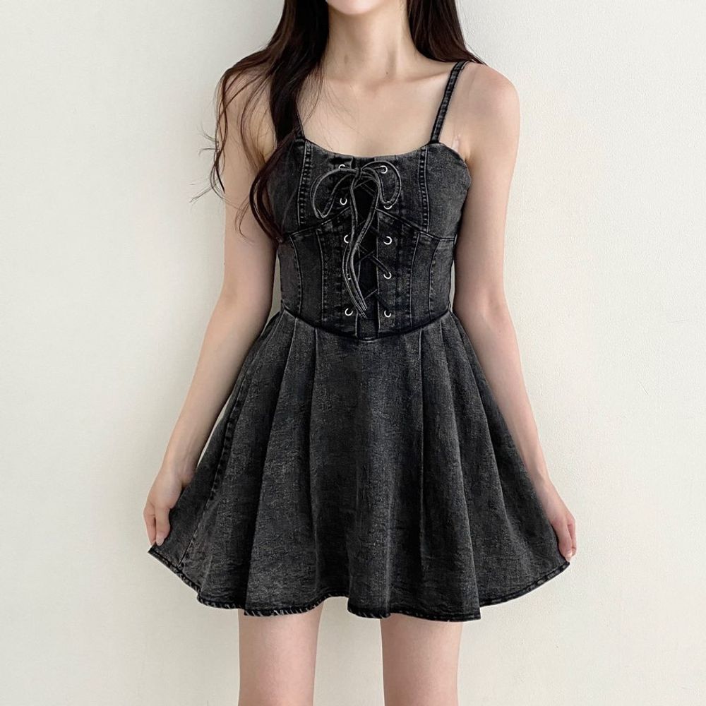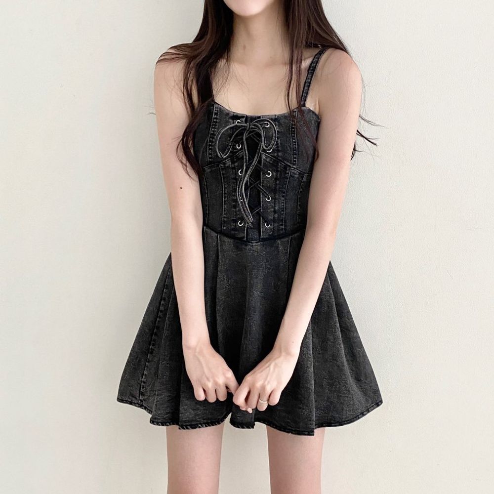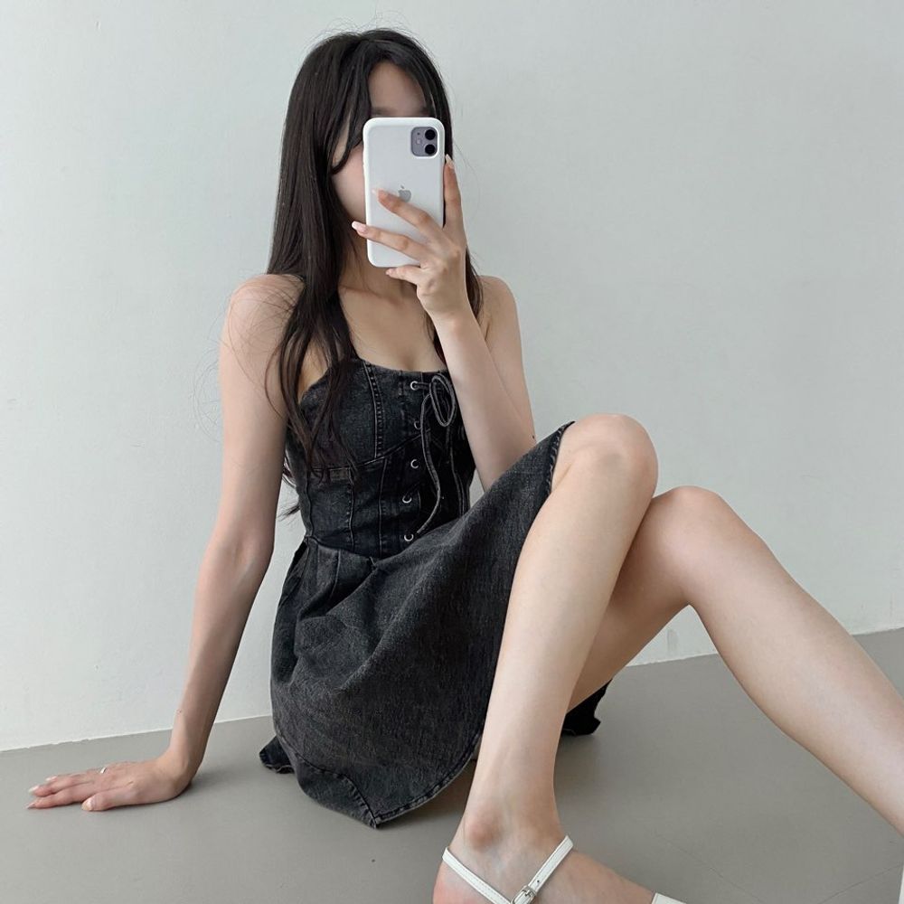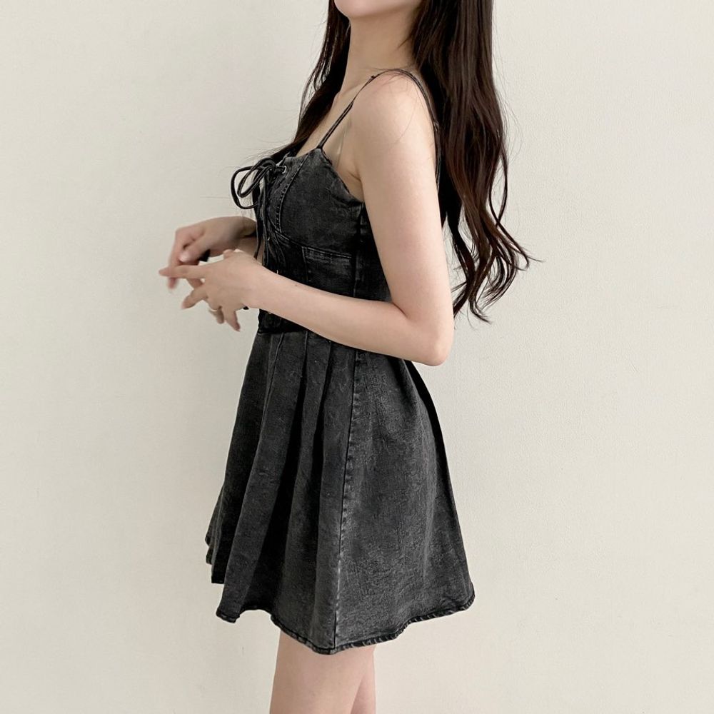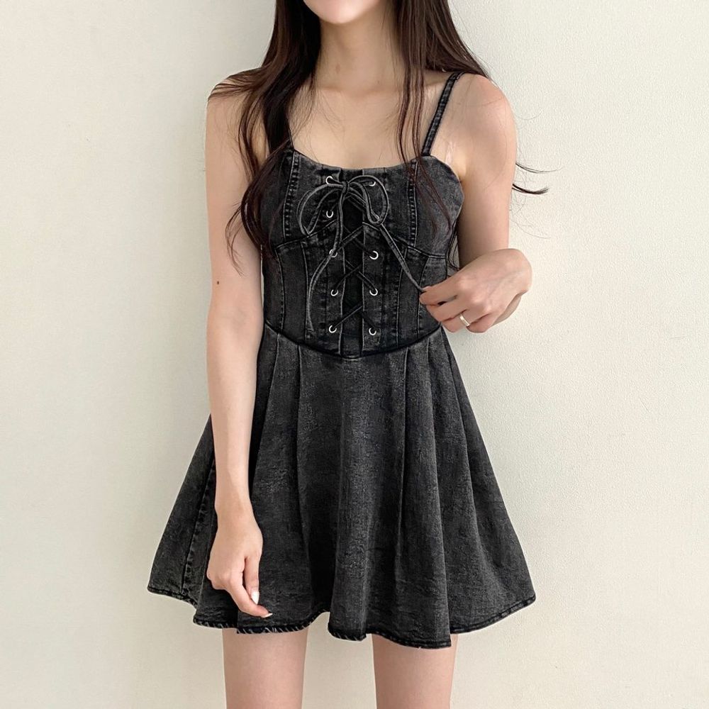無地 Aライン コットン ベーシック ミニ キャミワンピース
