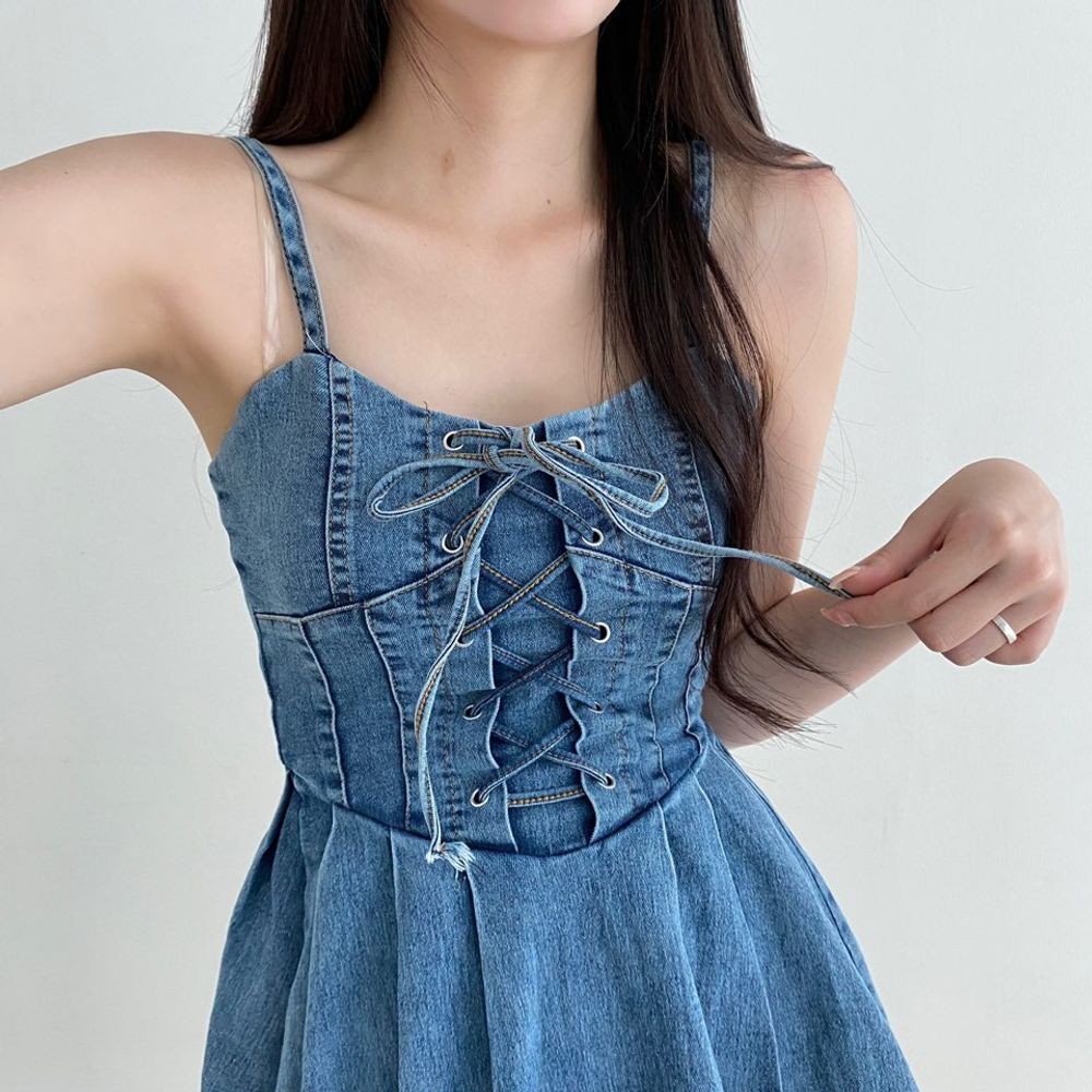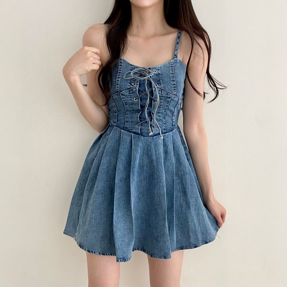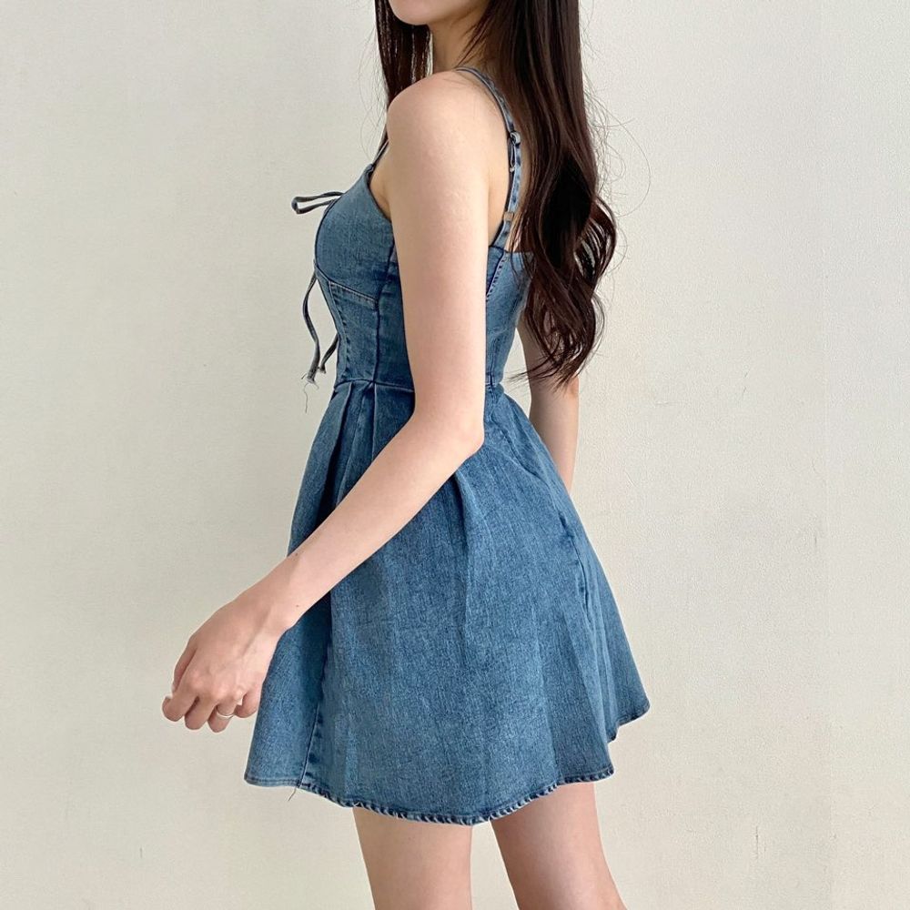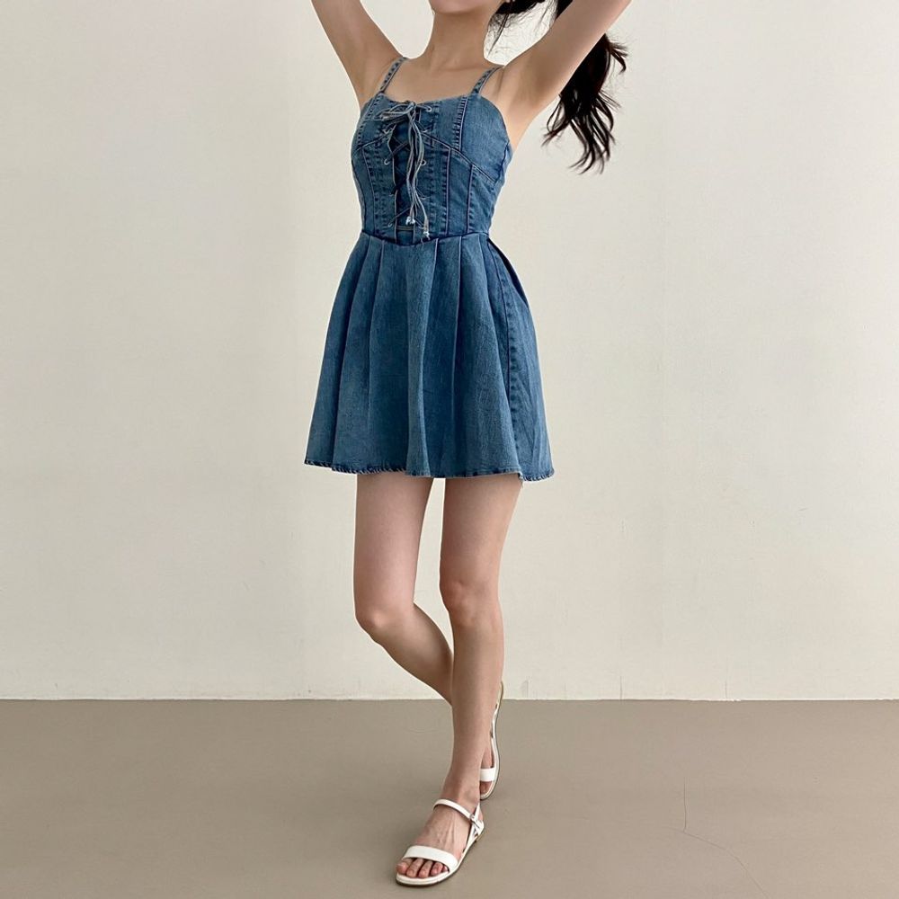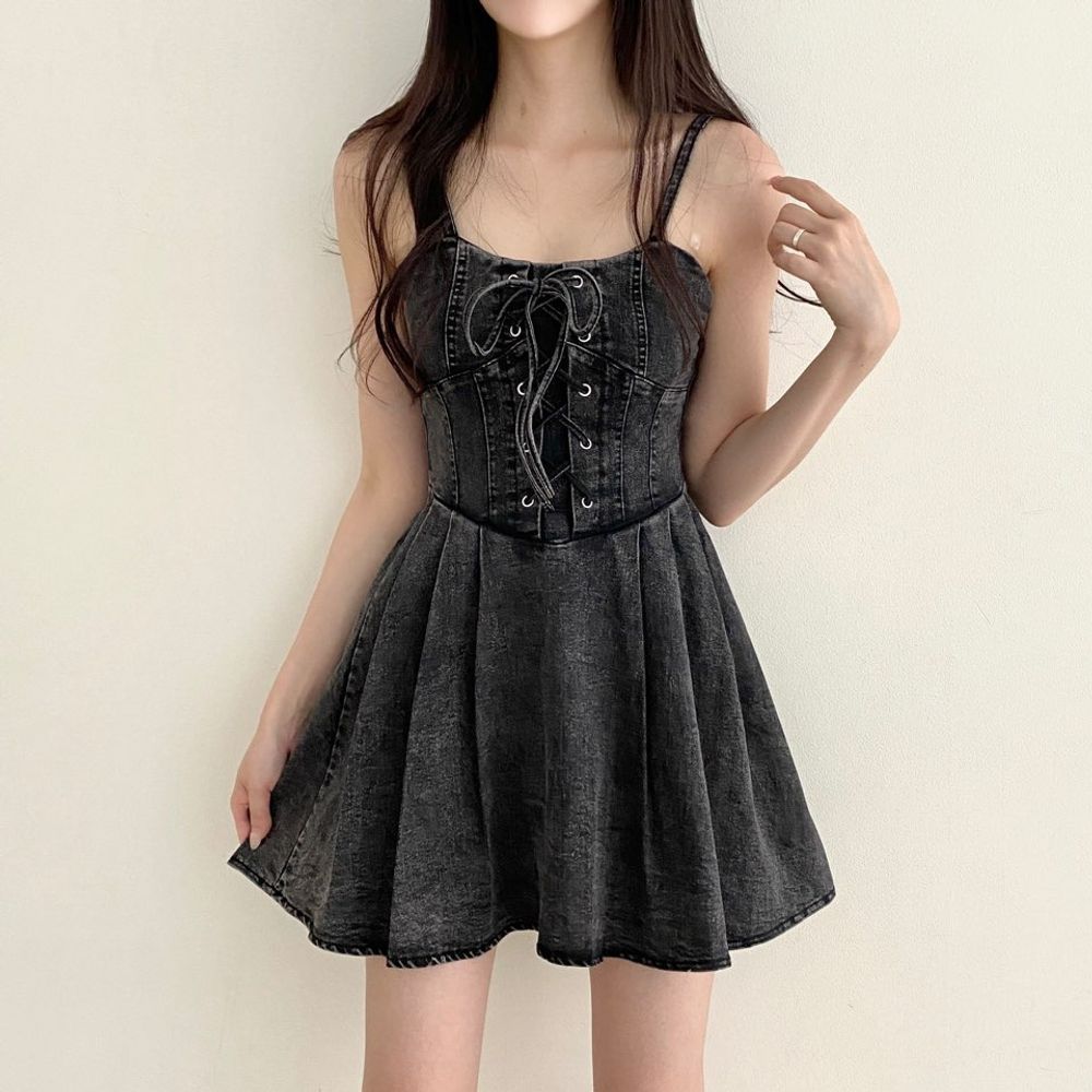 無地 Aライン コットン ベーシック ミニ キャミワンピース