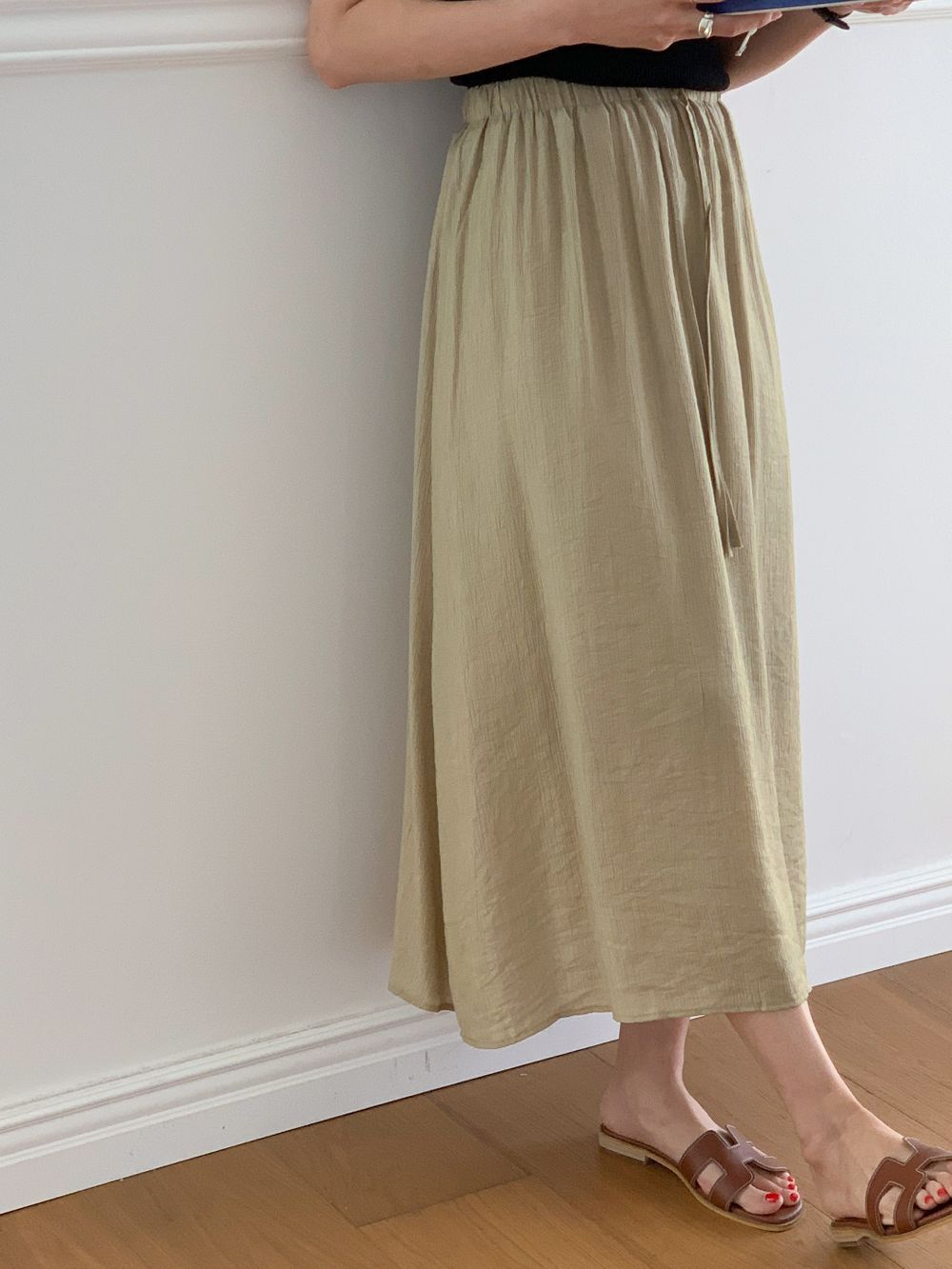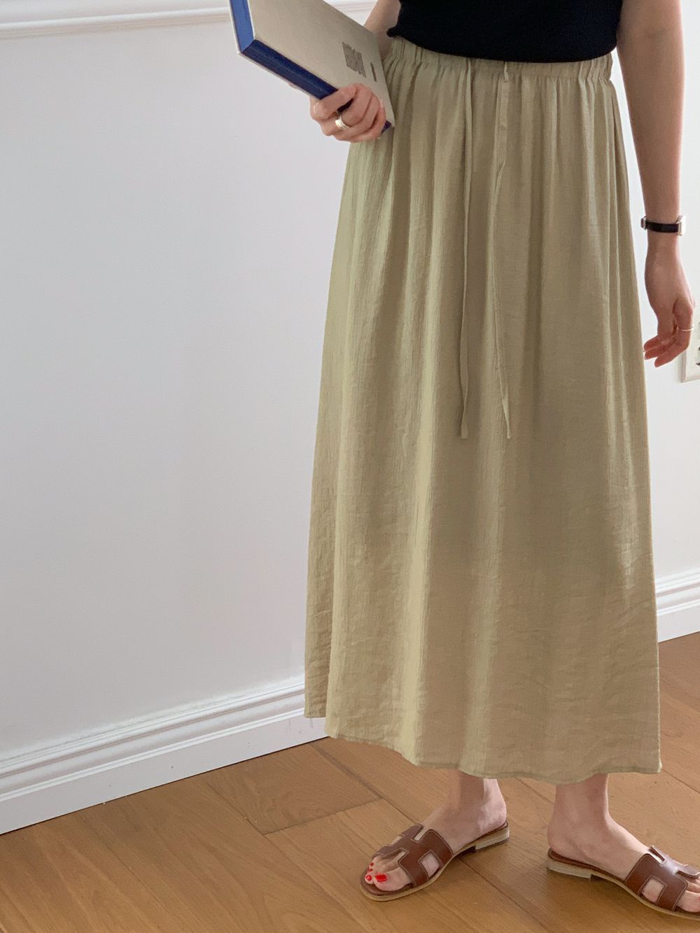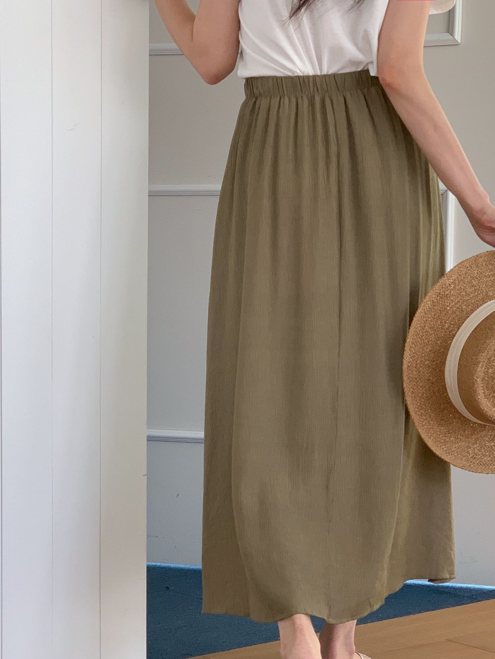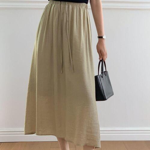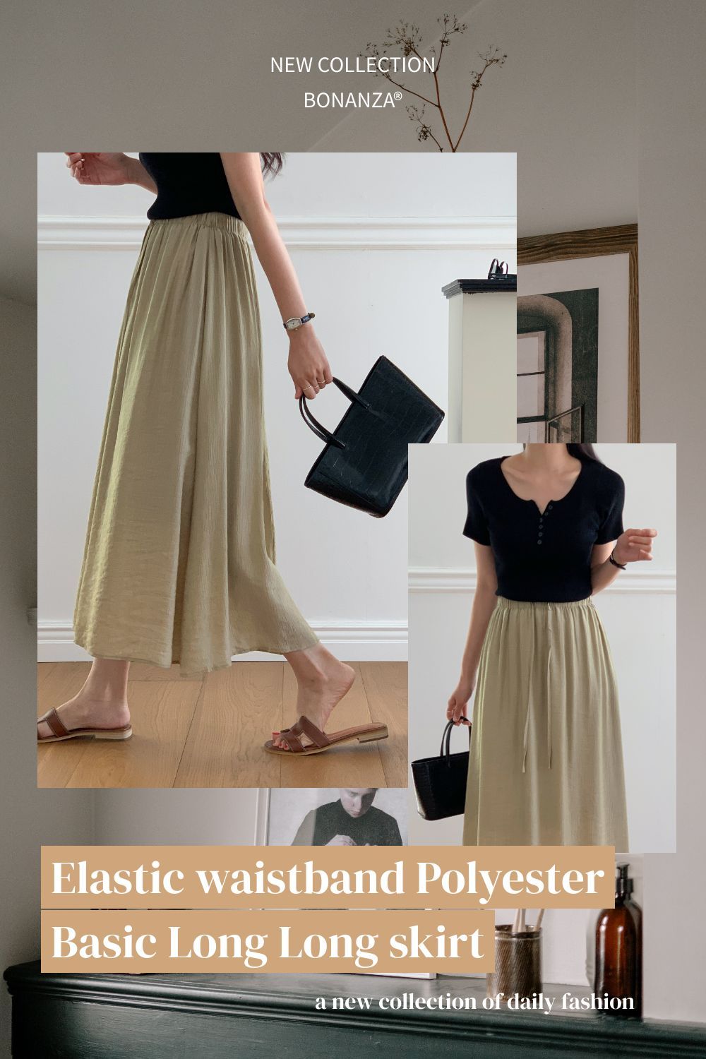 無地 ゴム ポリエステル ベーシック ロング ロングスカート