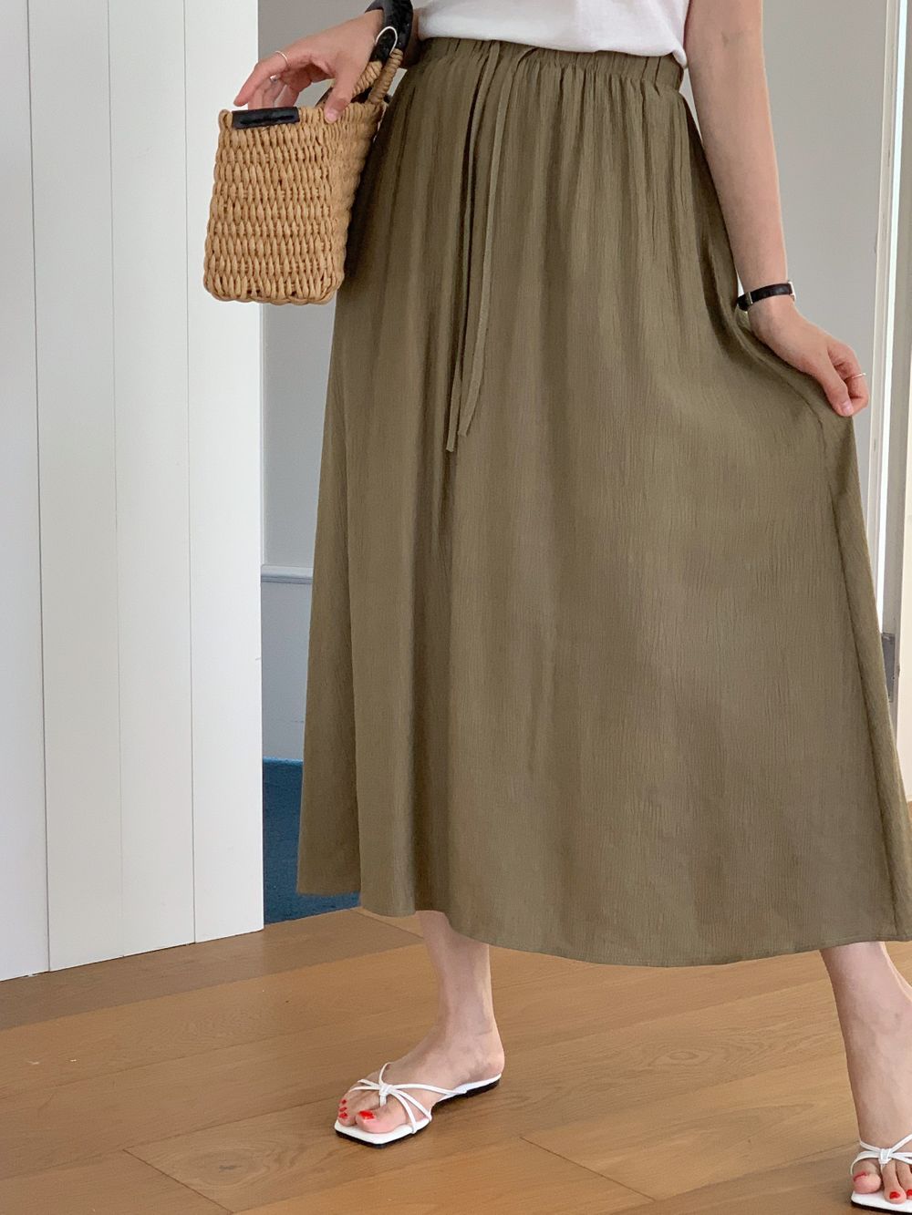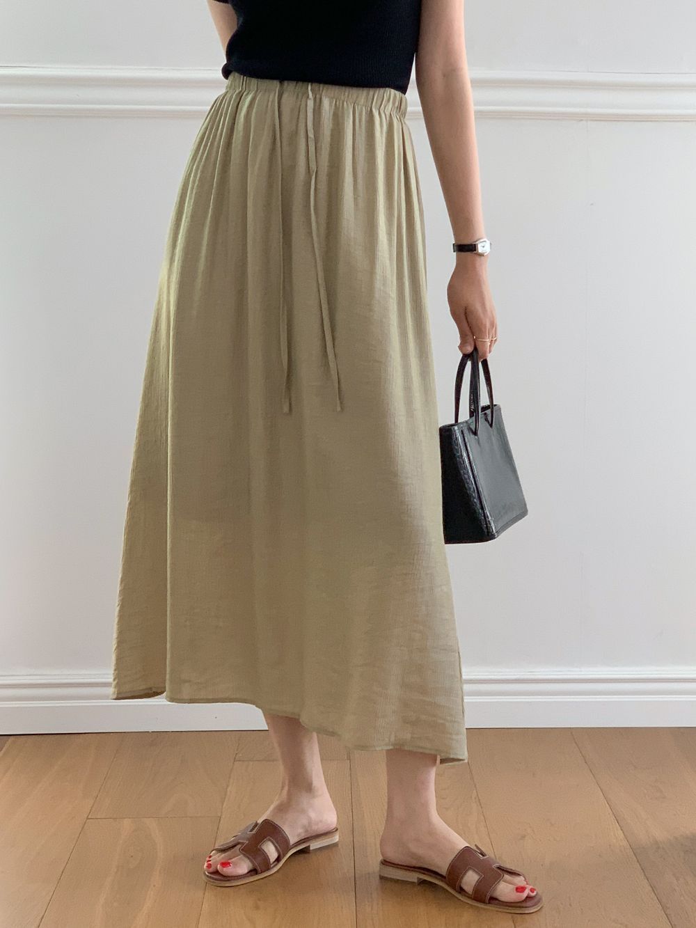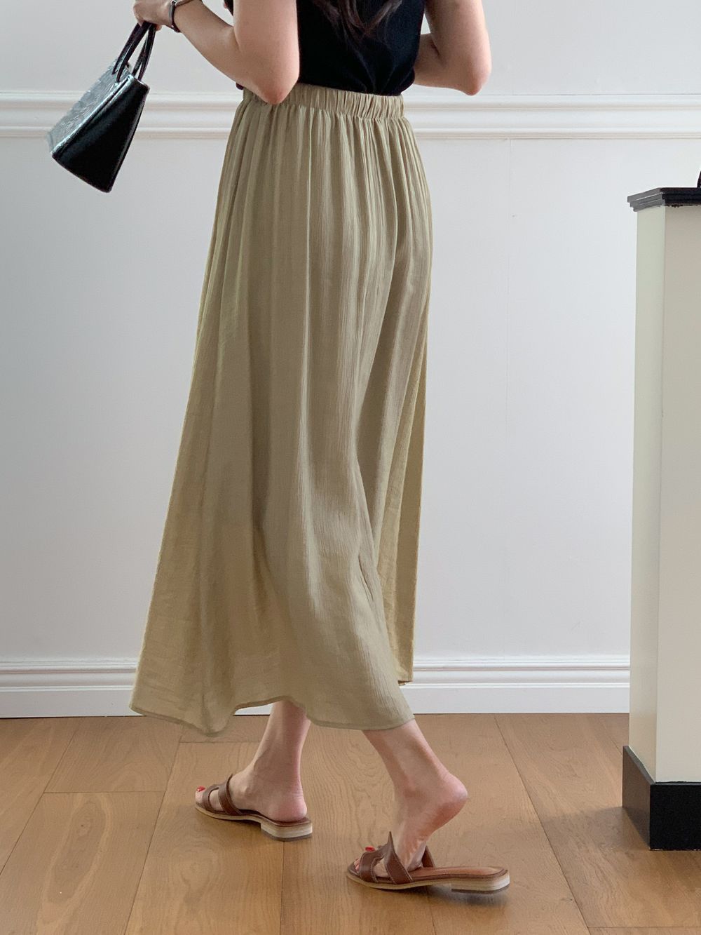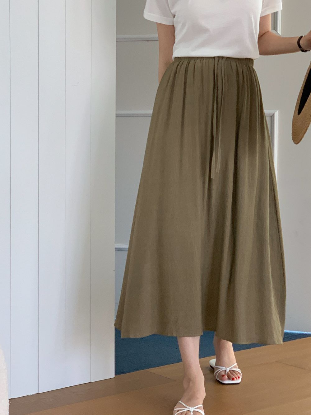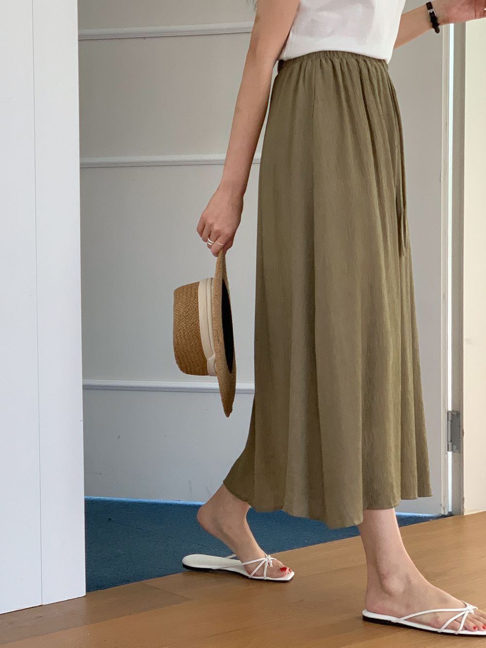 無地 ゴム ポリエステル ベーシック ロング ロングスカート