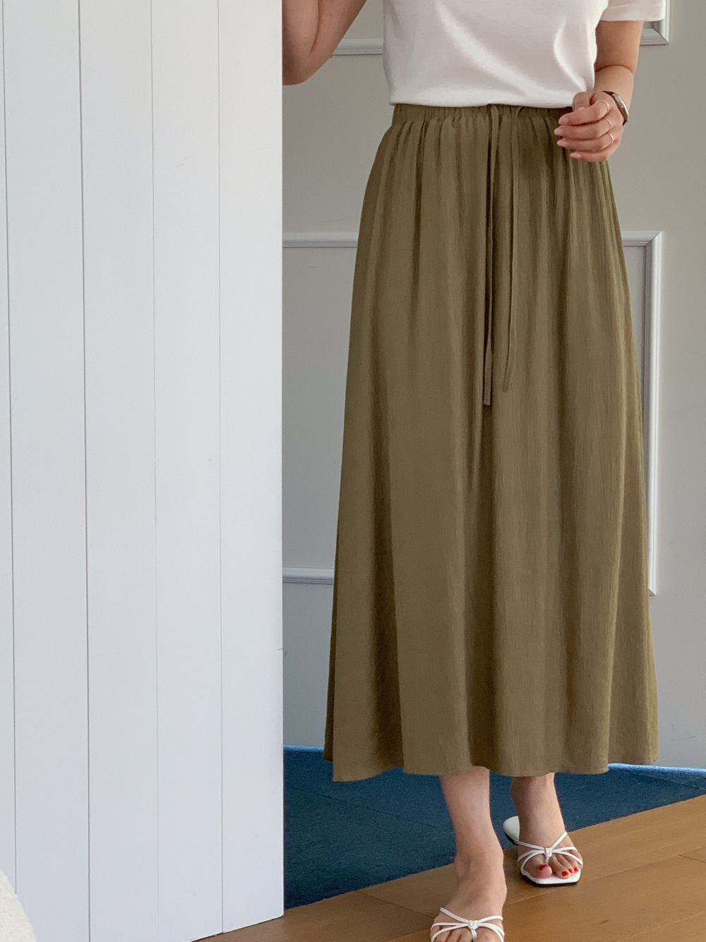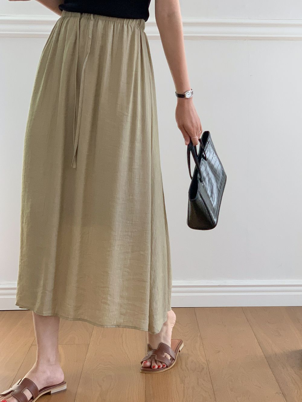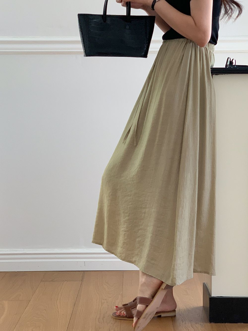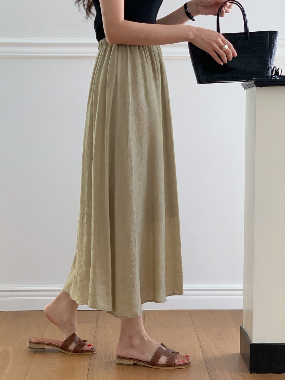 無地 ゴム ポリエステル ベーシック ロング ロングスカート