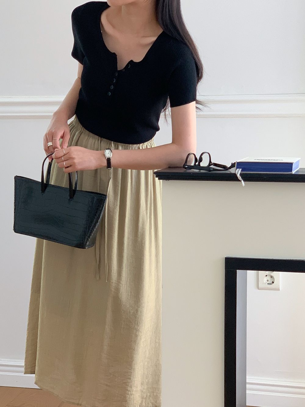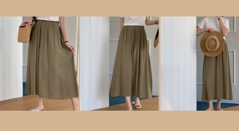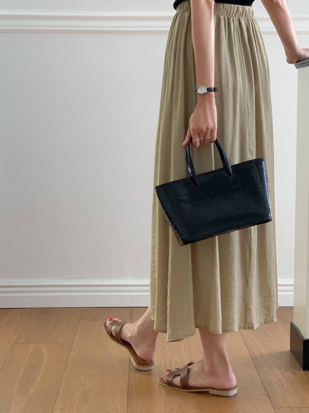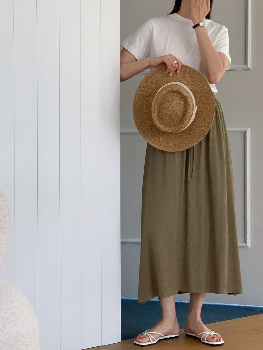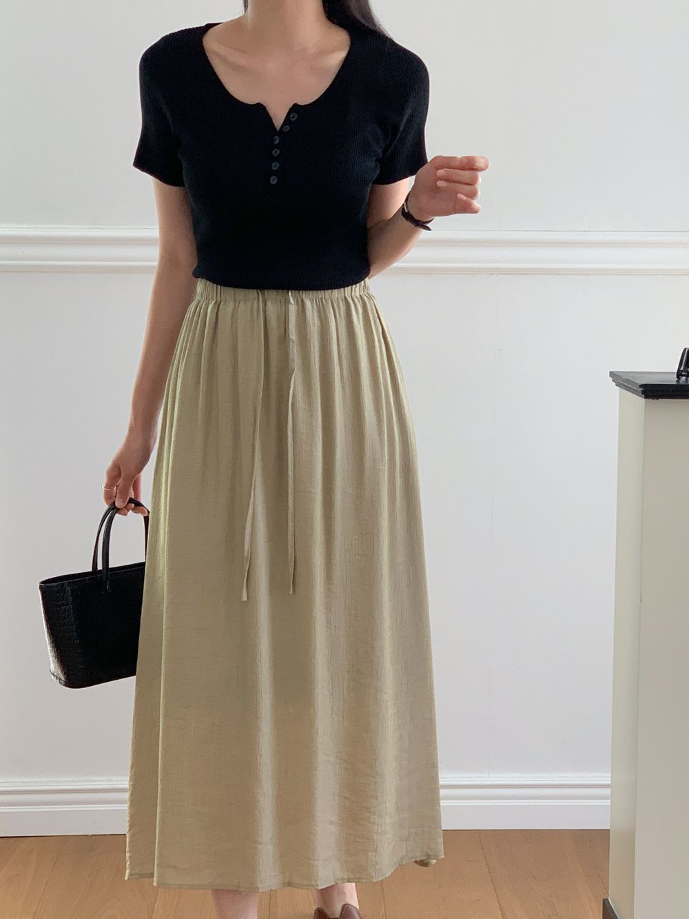 無地 ゴム ポリエステル ベーシック ロング ロングスカート