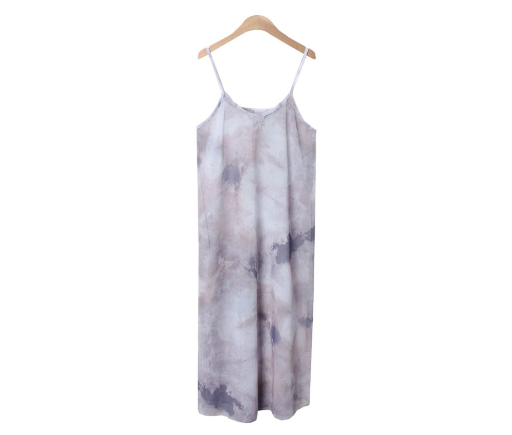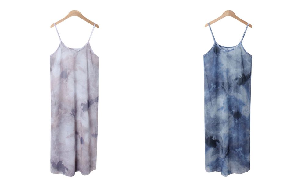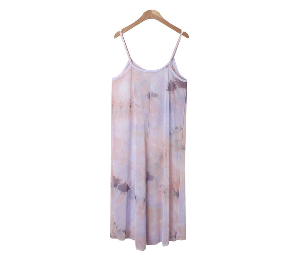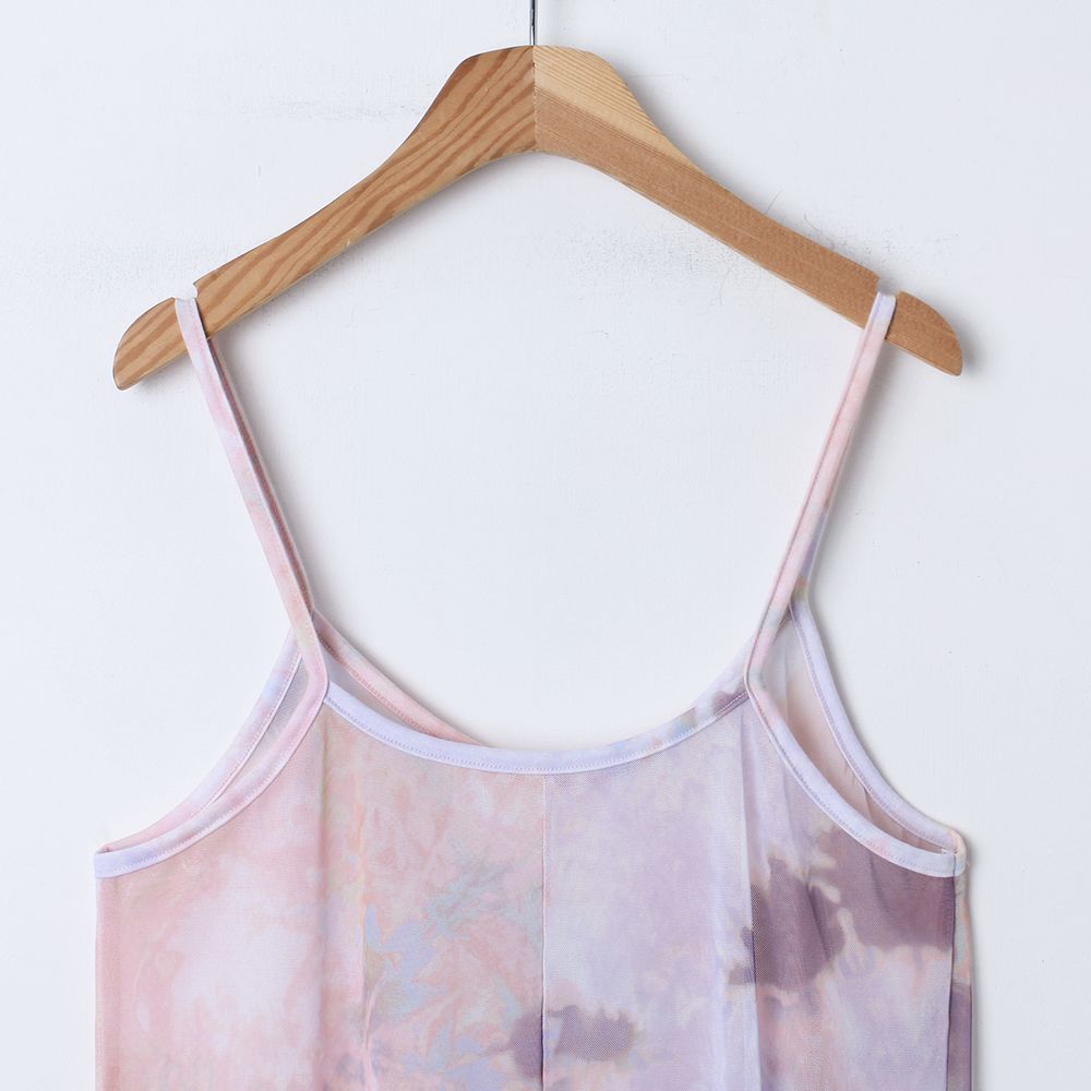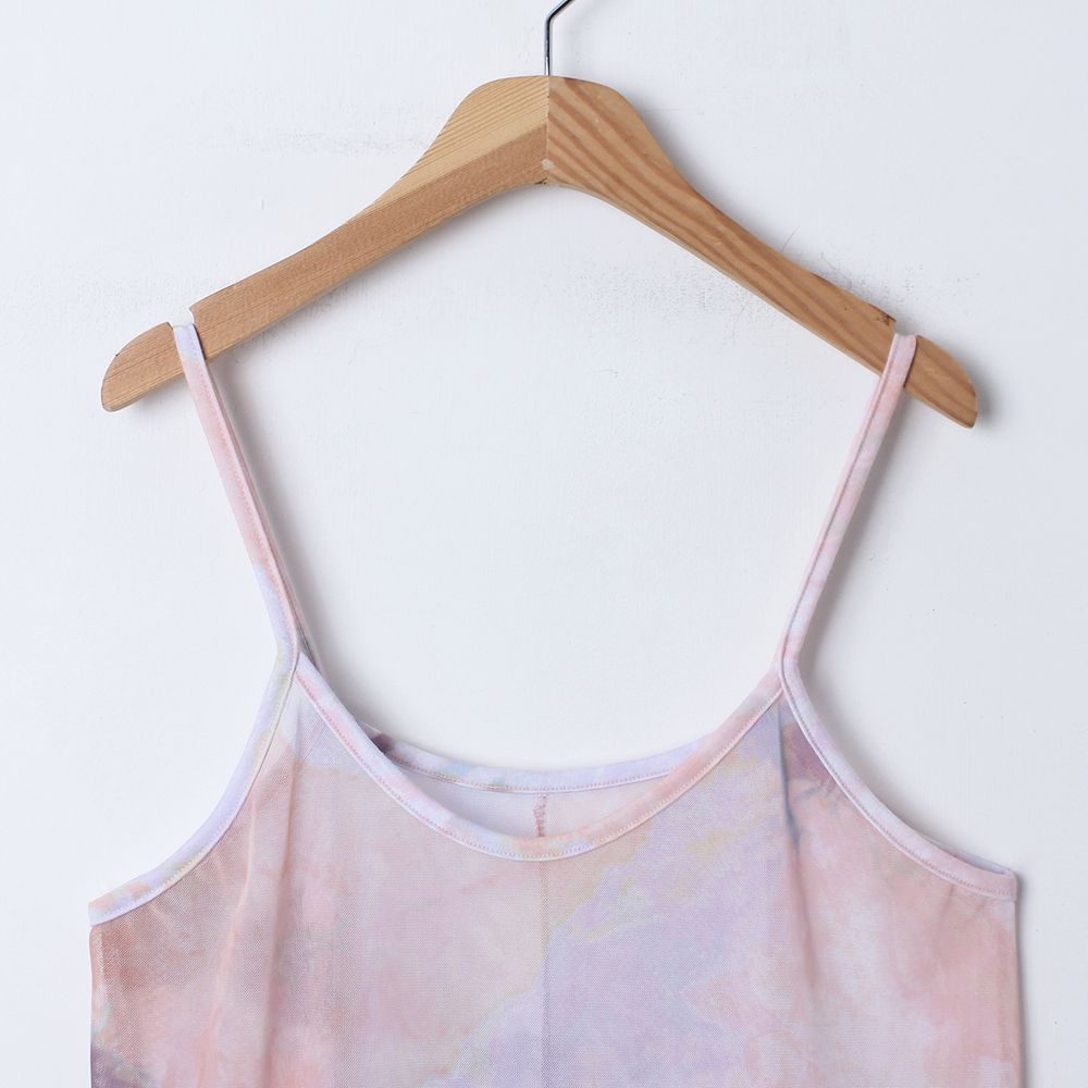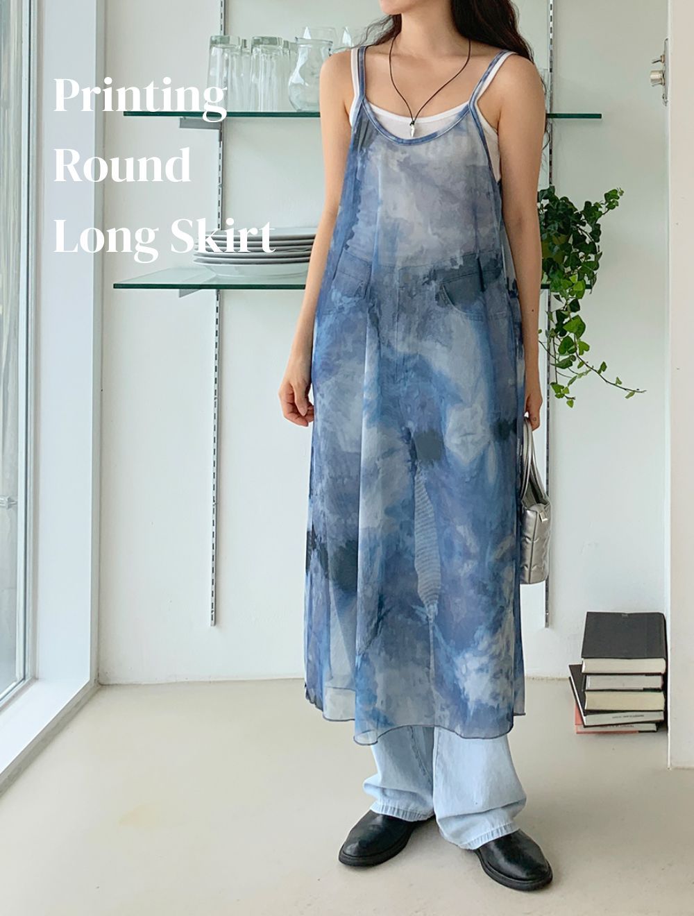 タイダイ ラウンドネック ポリエステル パステル ロング ロングスカート