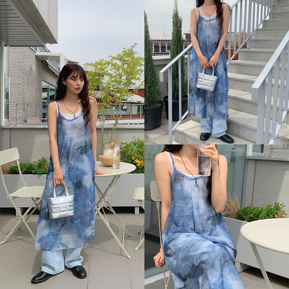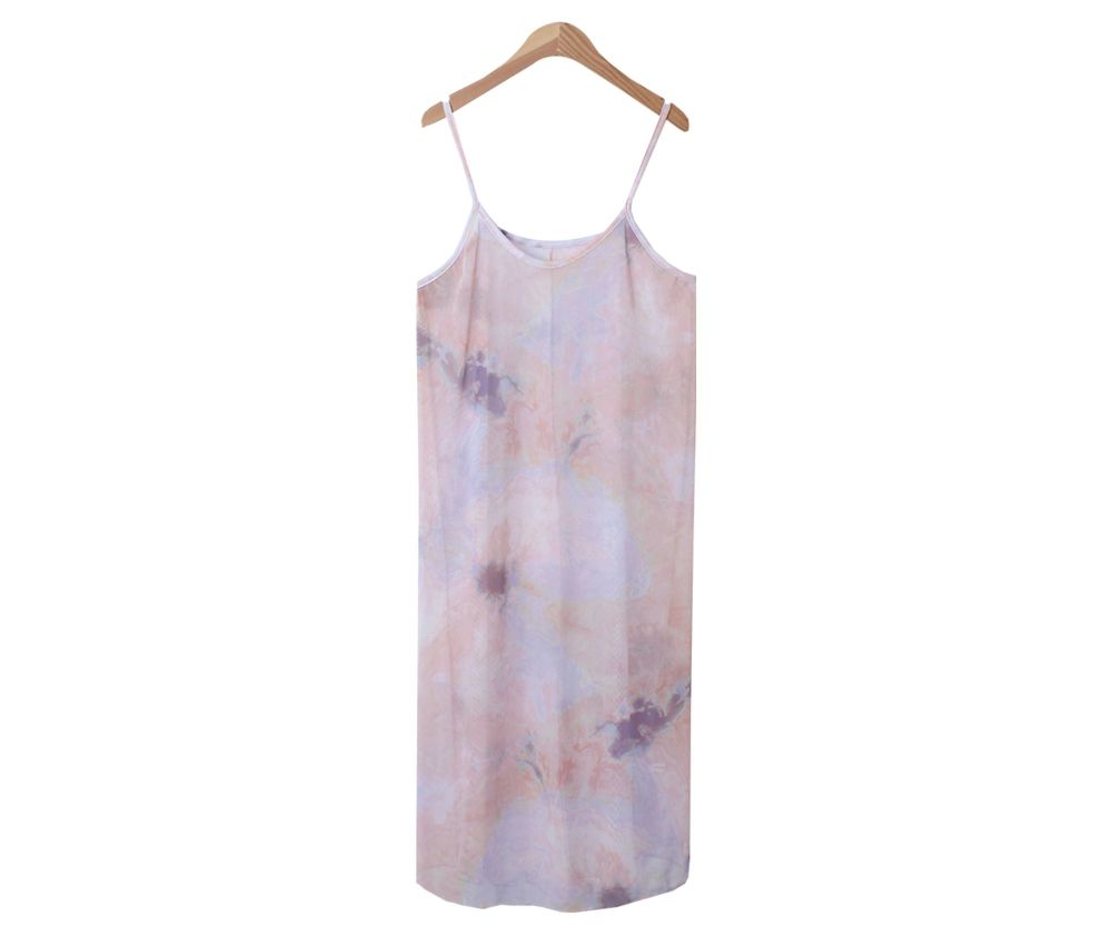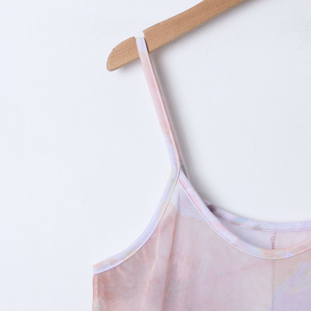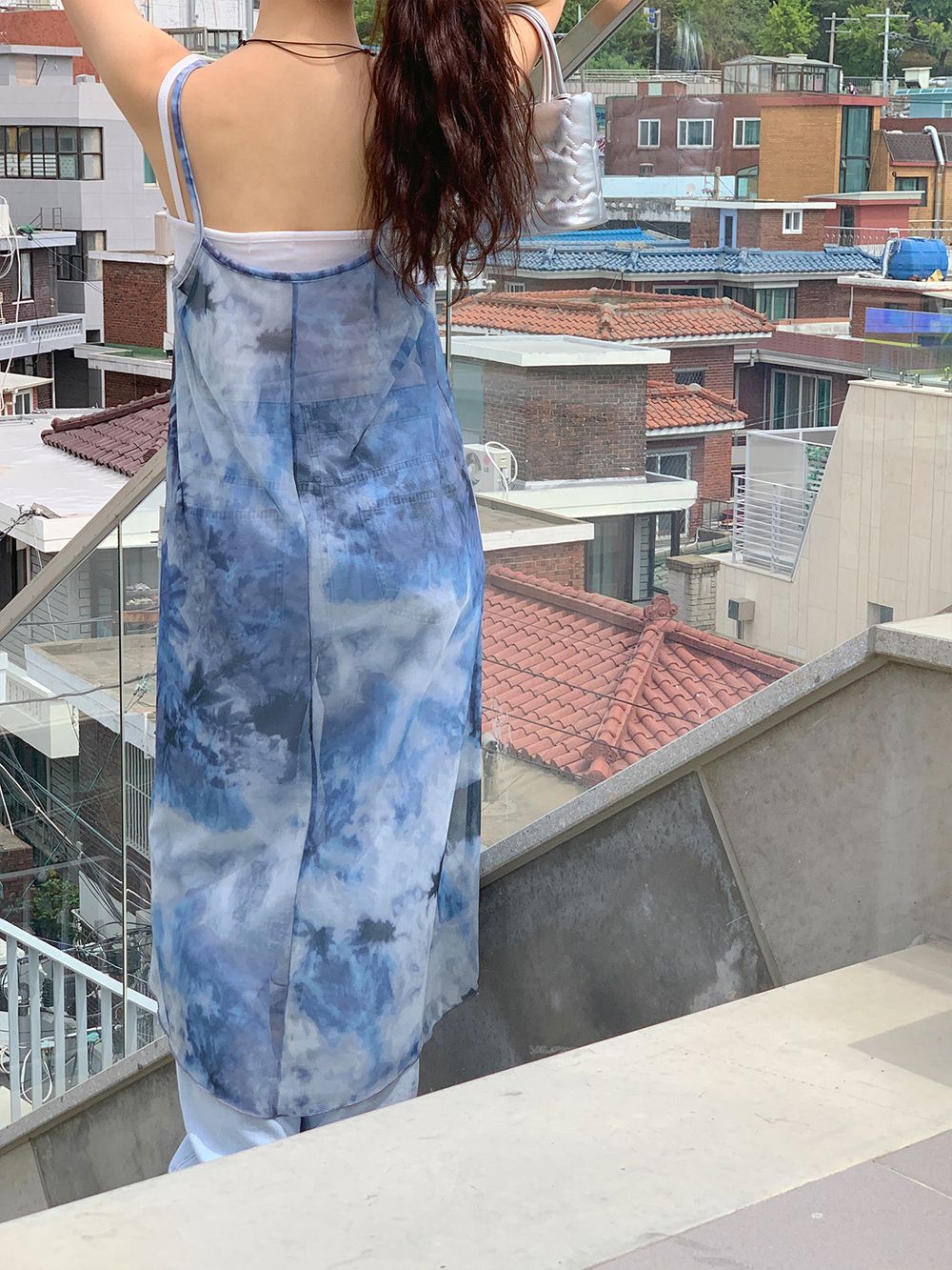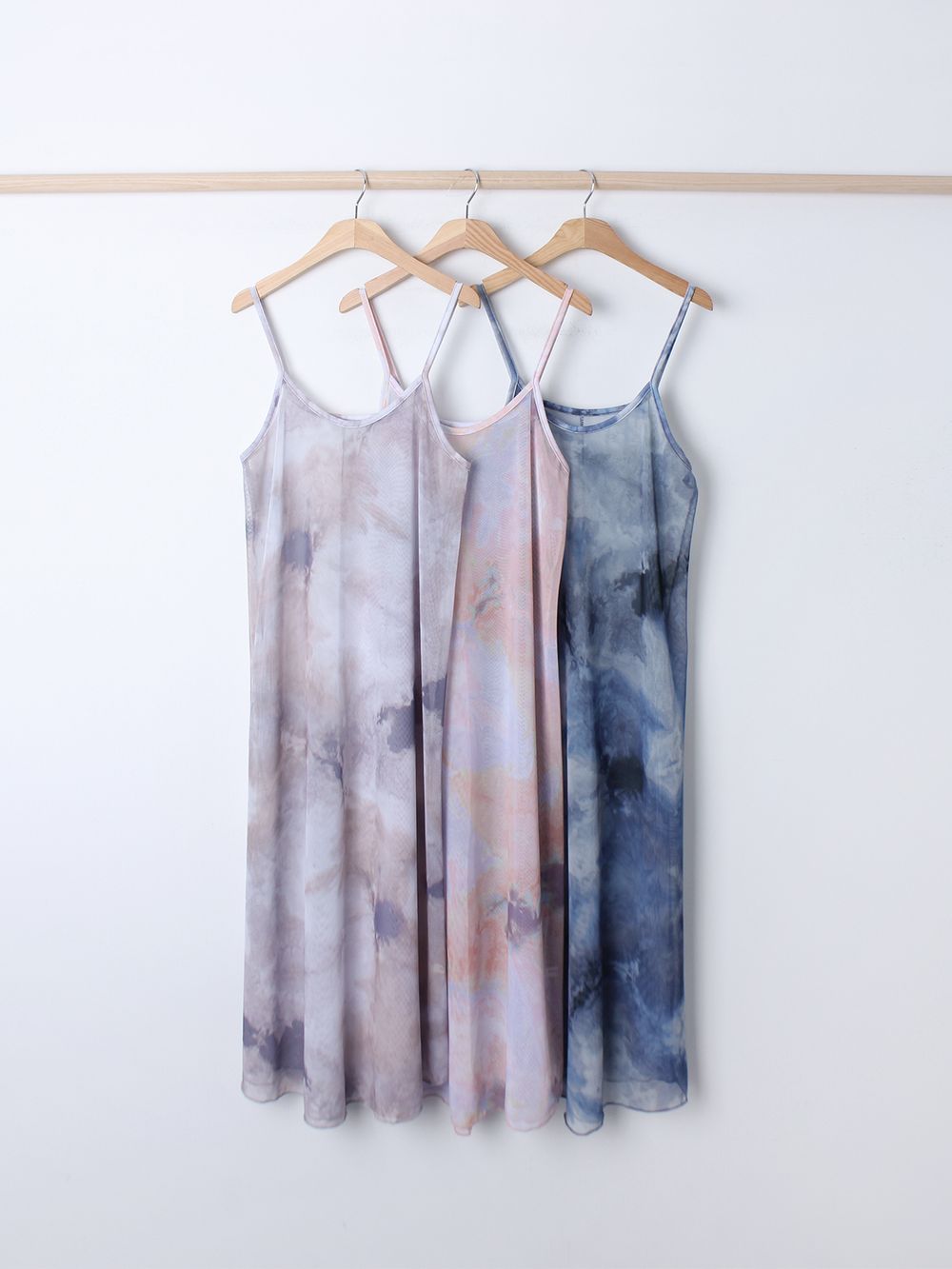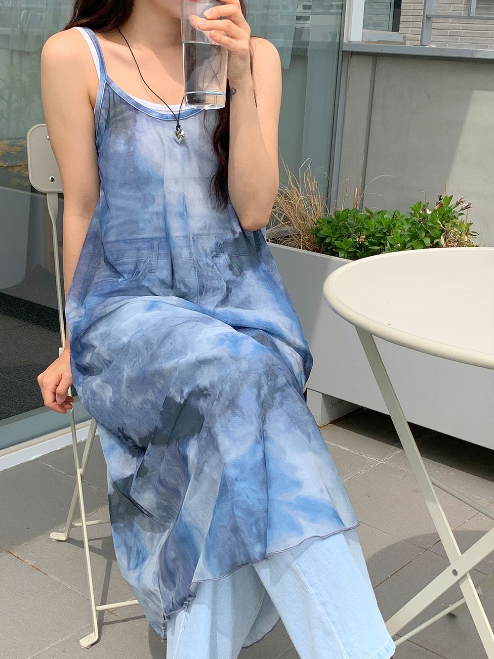 タイダイ ラウンドネック ポリエステル パステル ロング ロングスカート