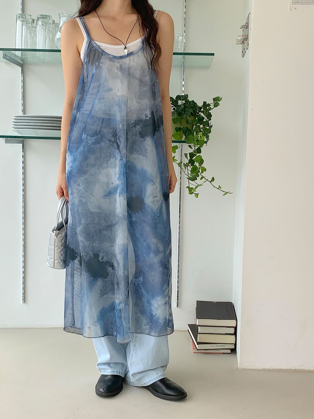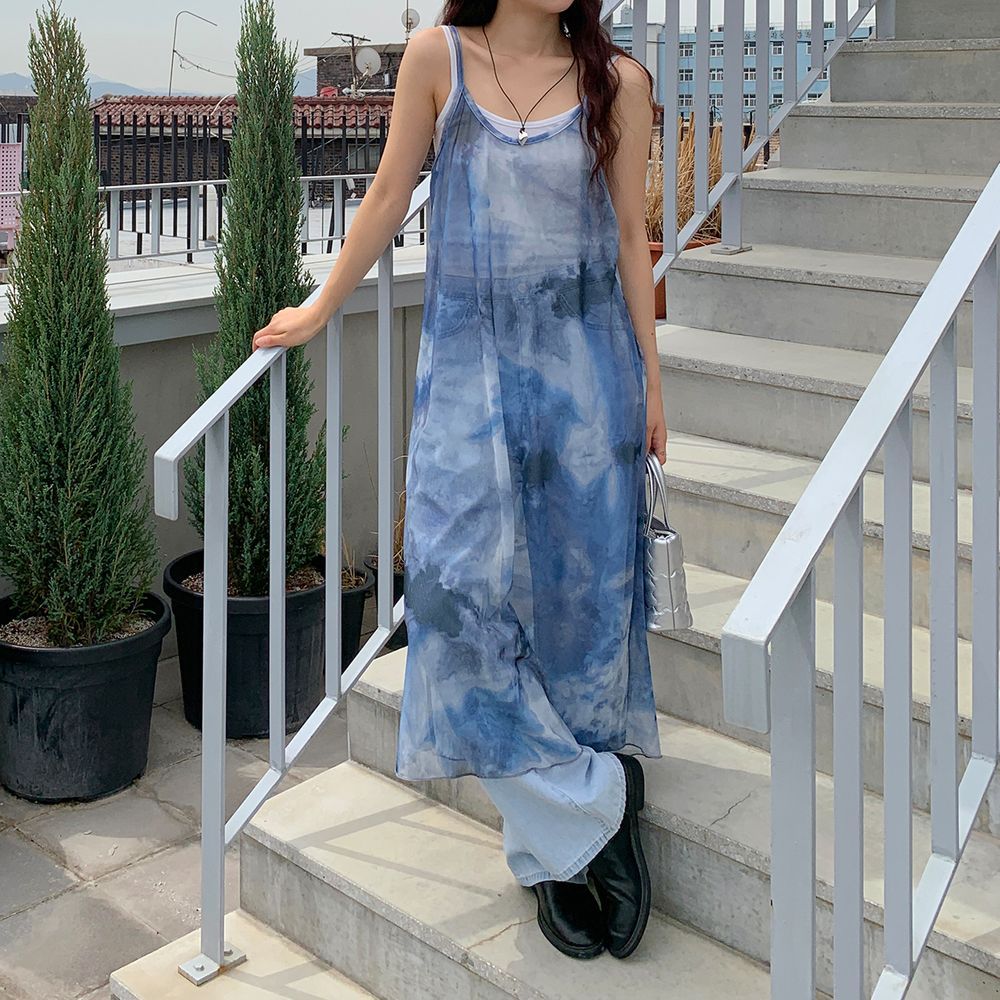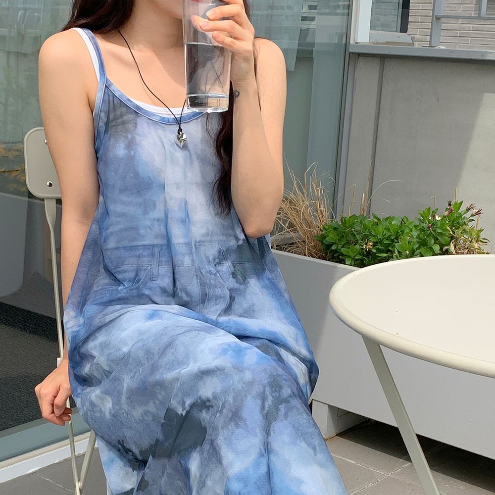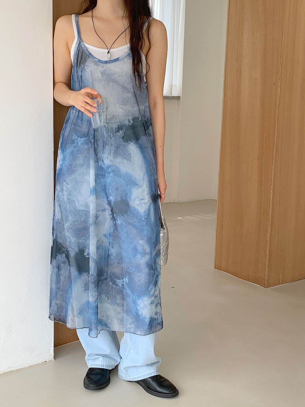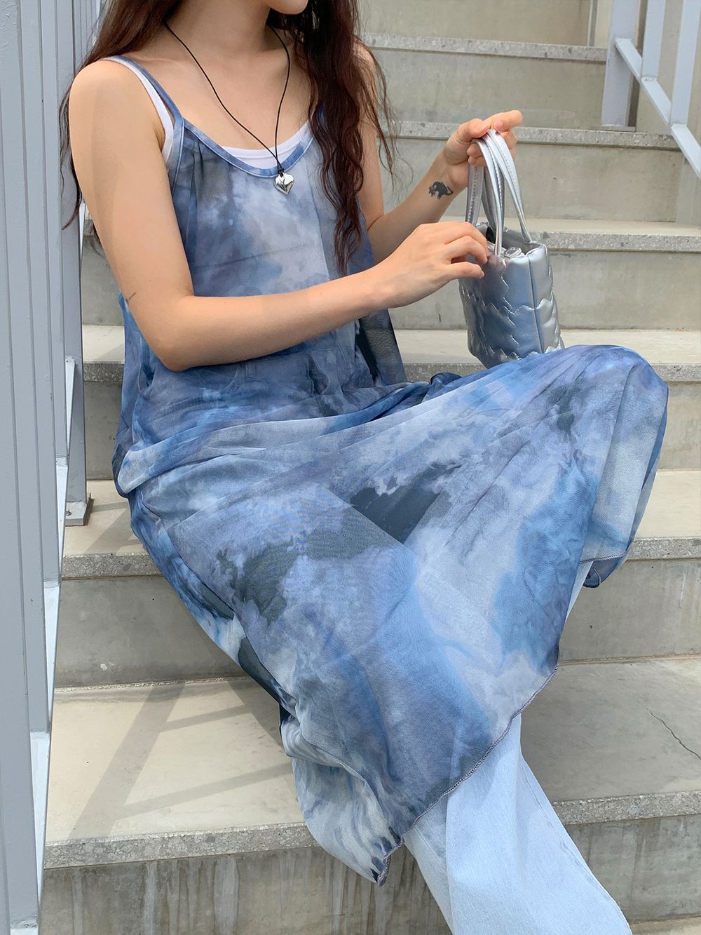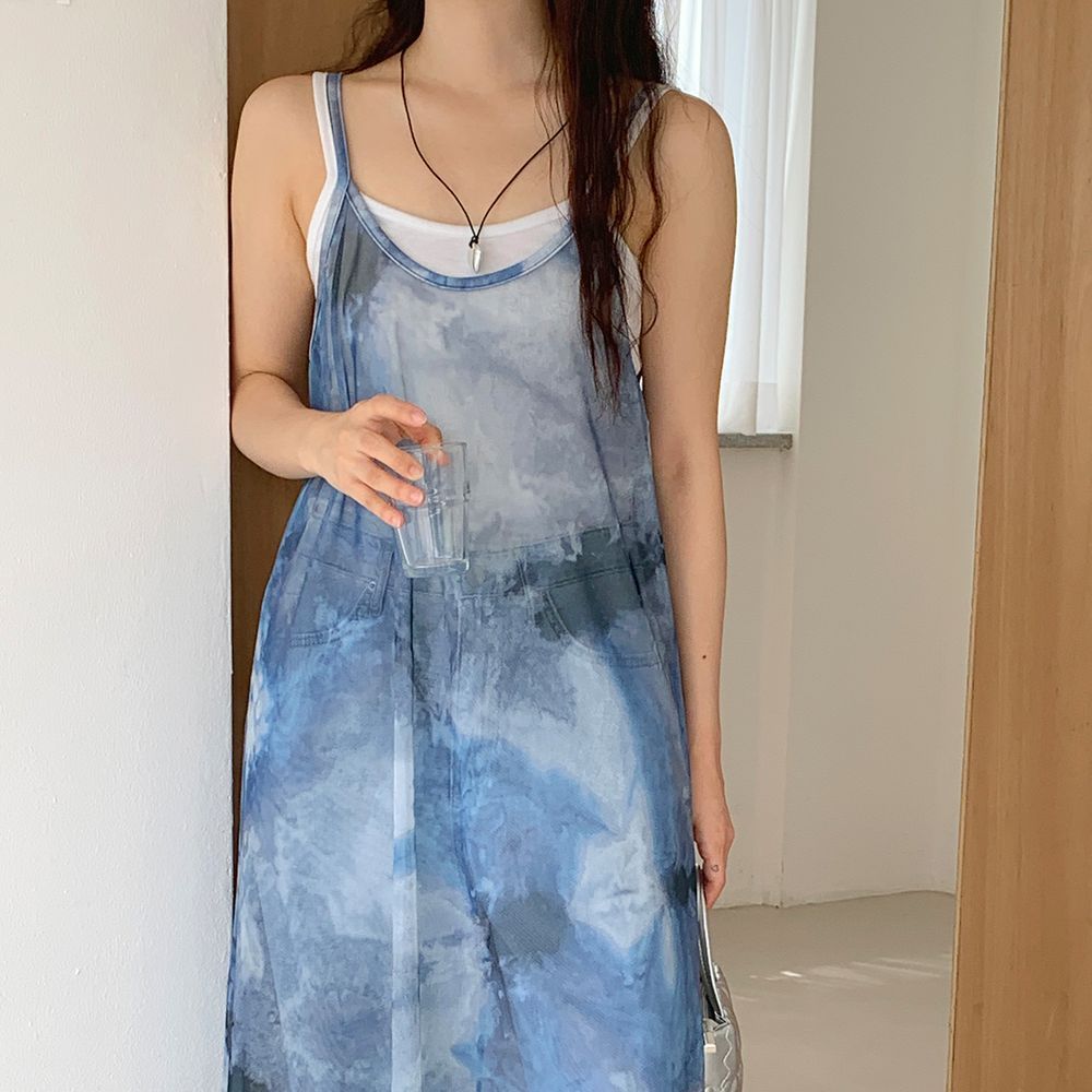 タイダイ ラウンドネック ポリエステル パステル ロング ロングスカート