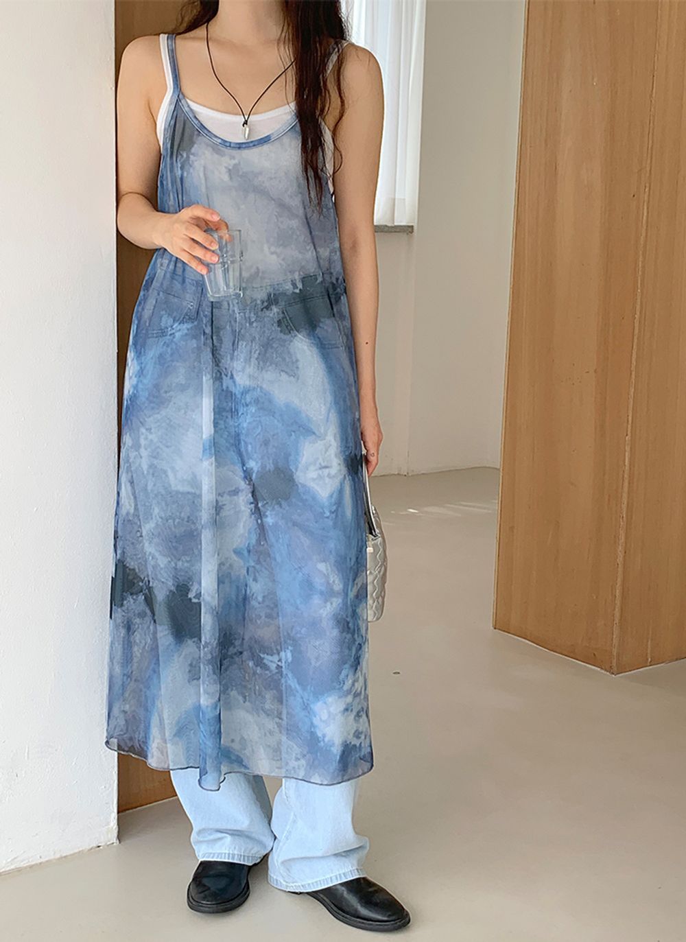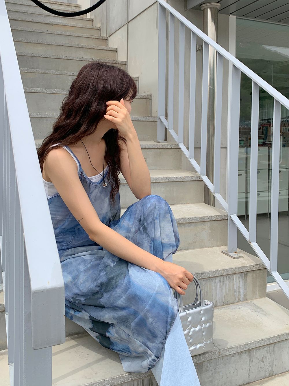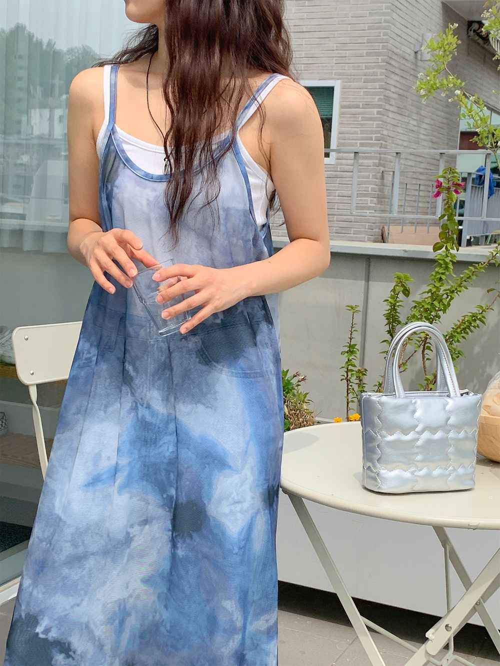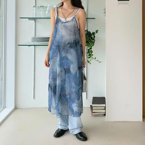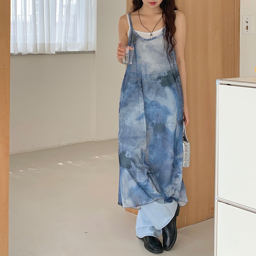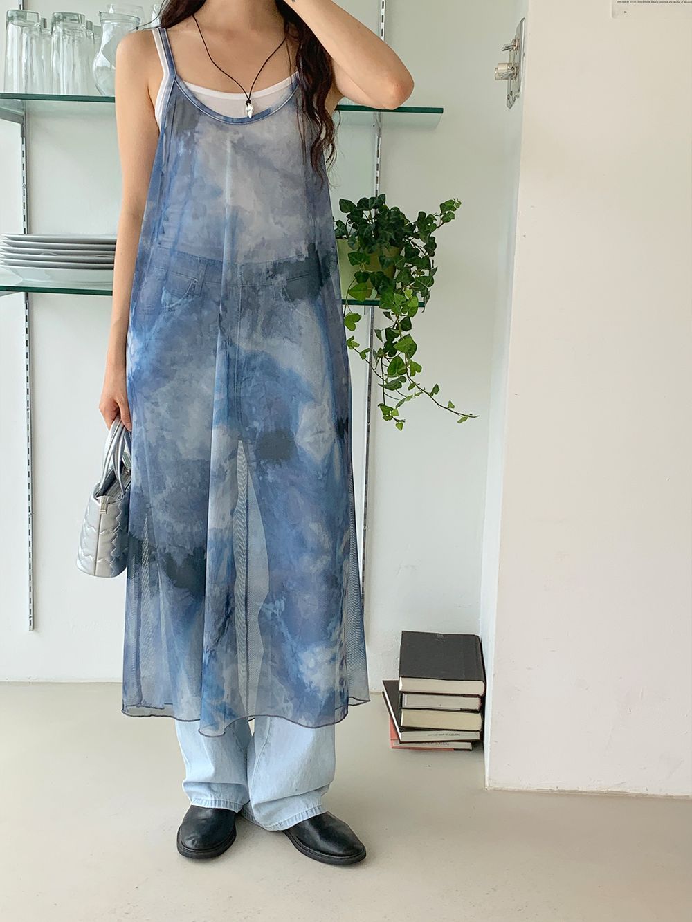 タイダイ ラウンドネック ポリエステル パステル ロング ロングスカート