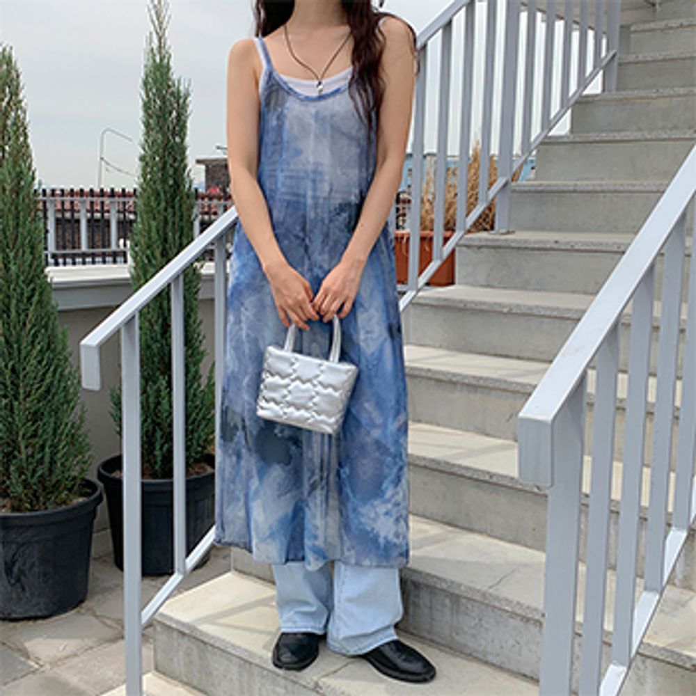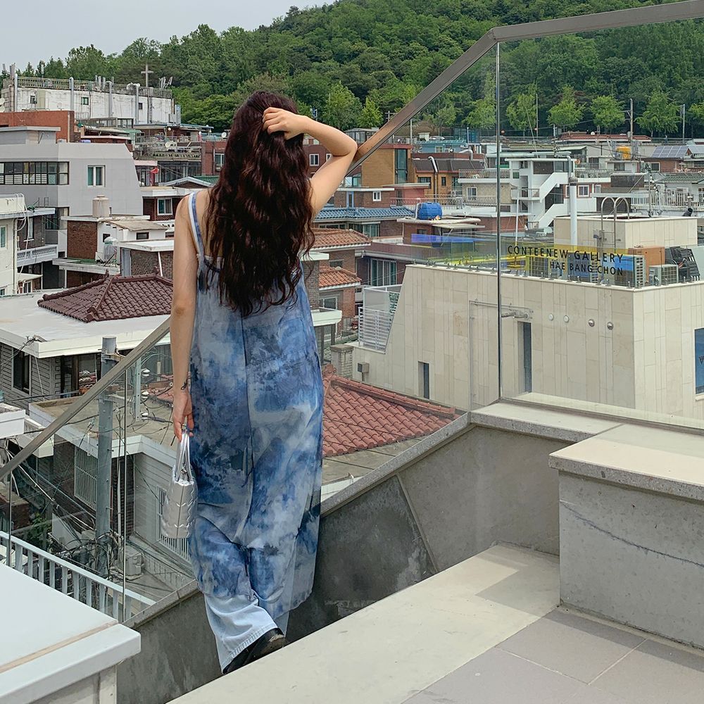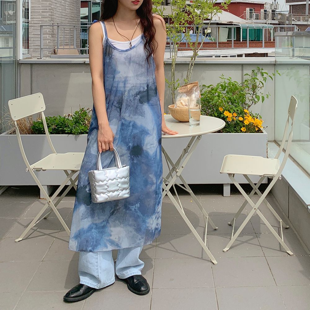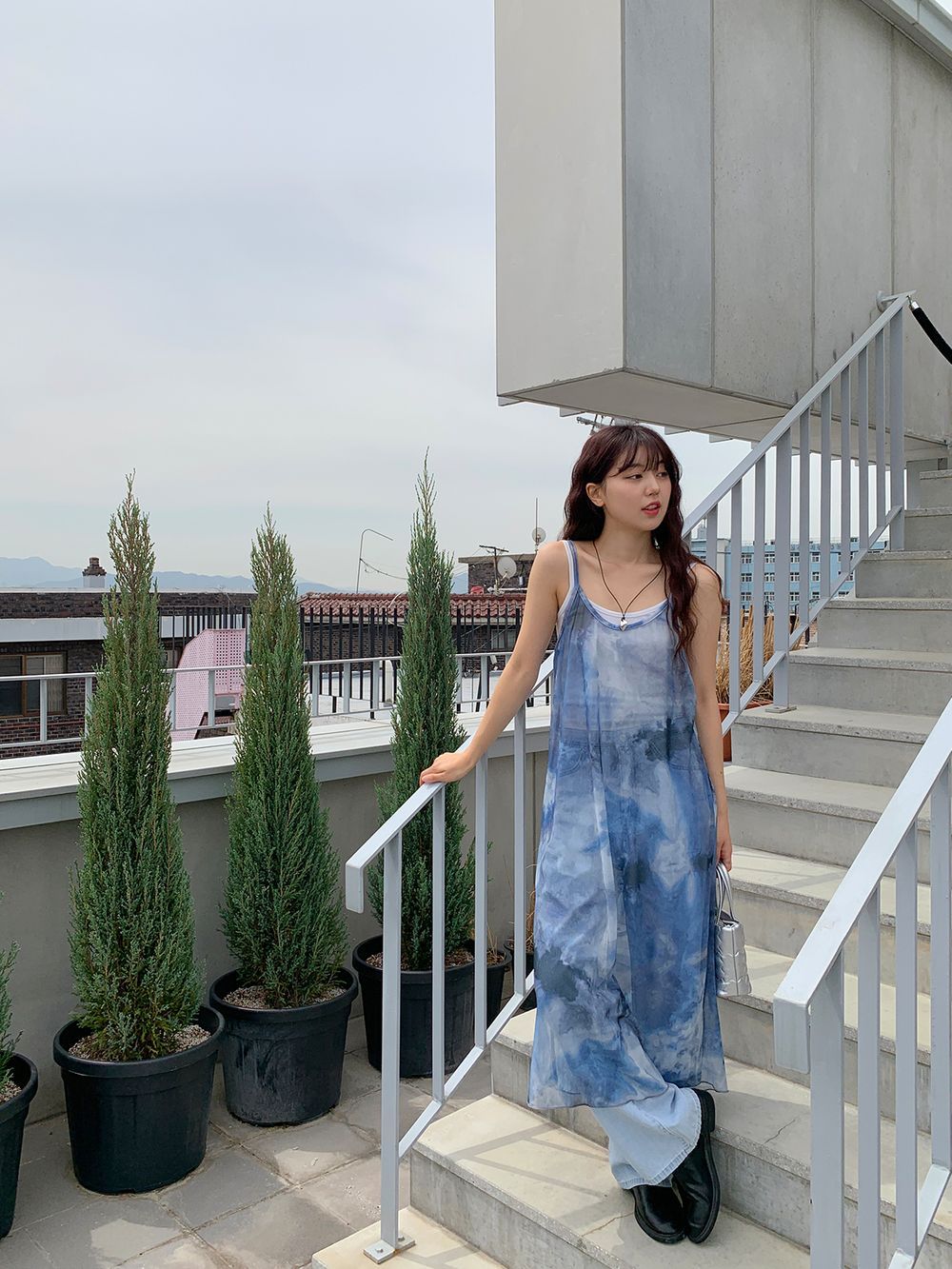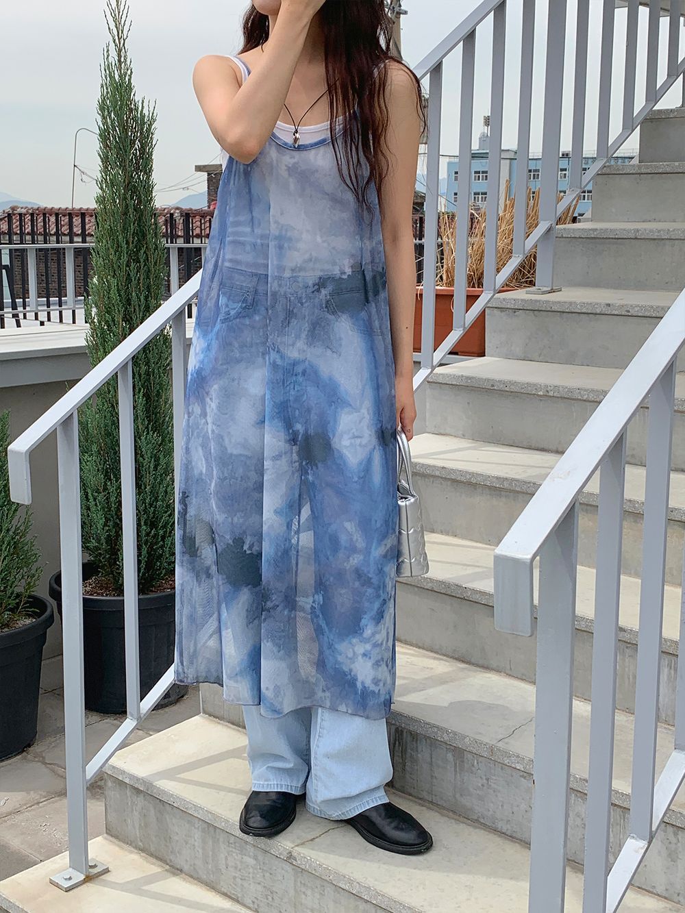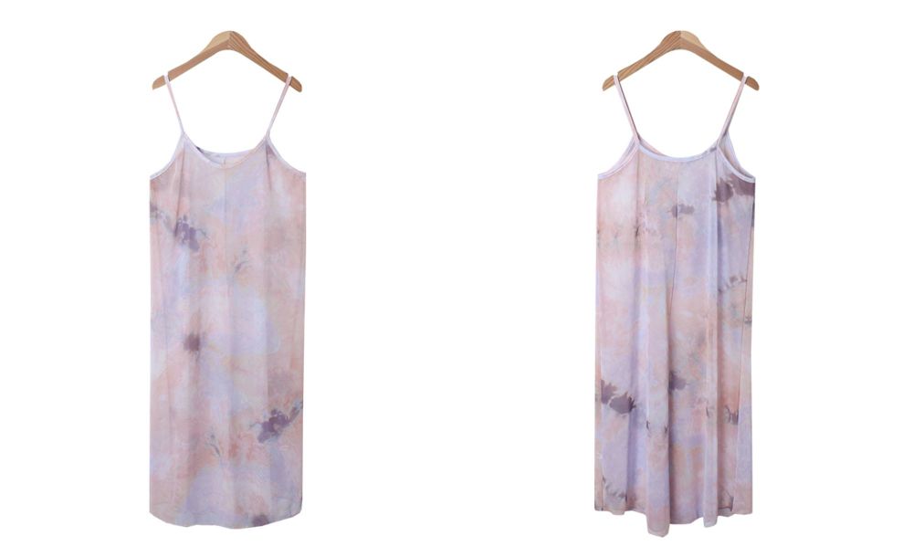 タイダイ ラウンドネック ポリエステル パステル ロング ロングスカート