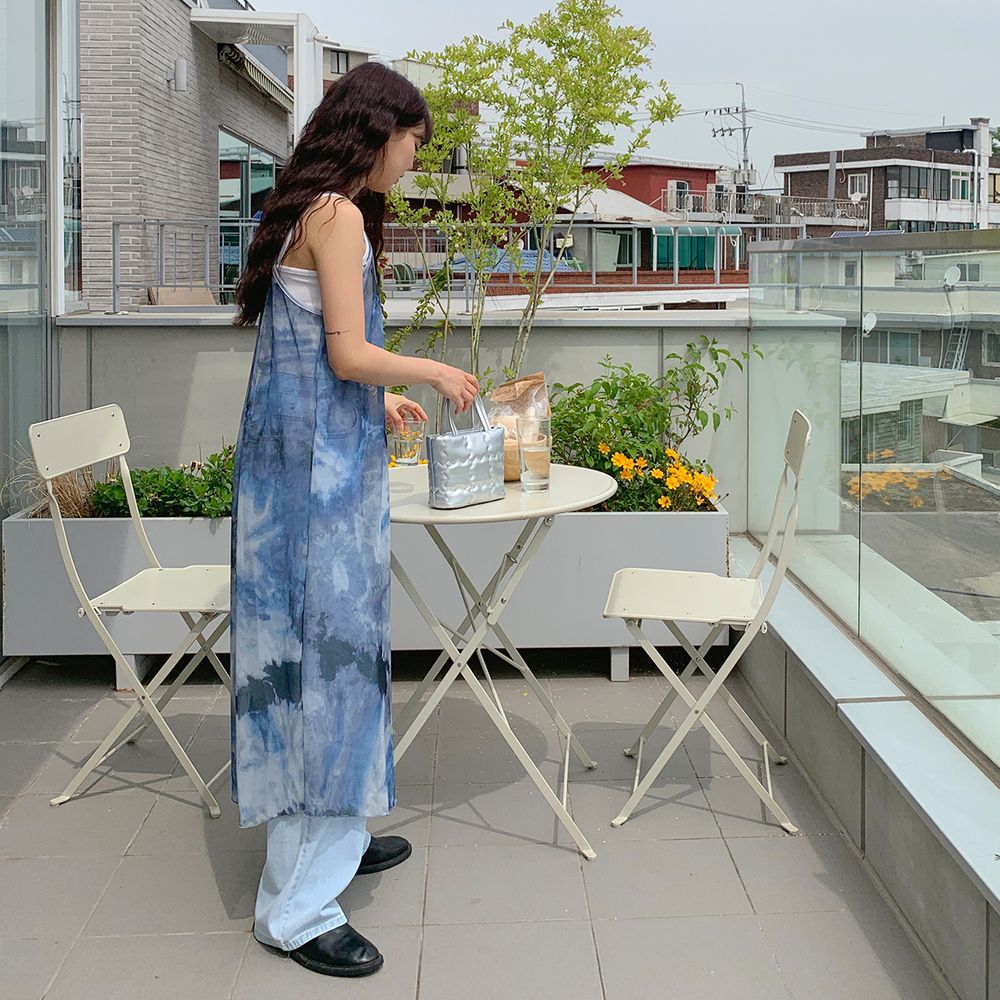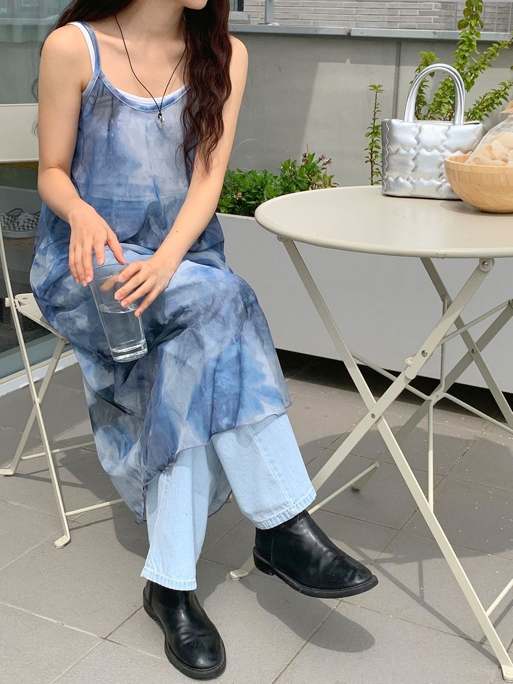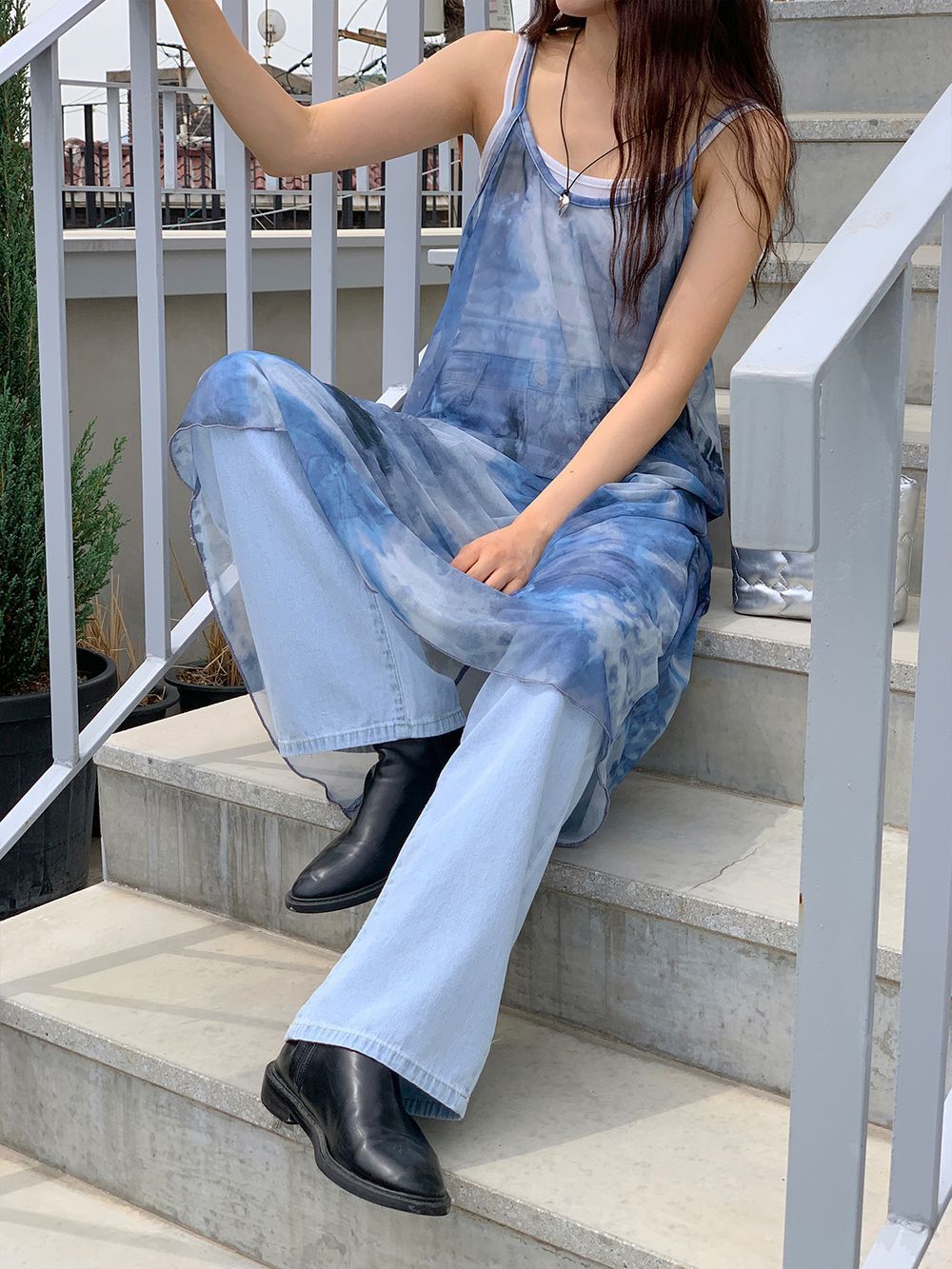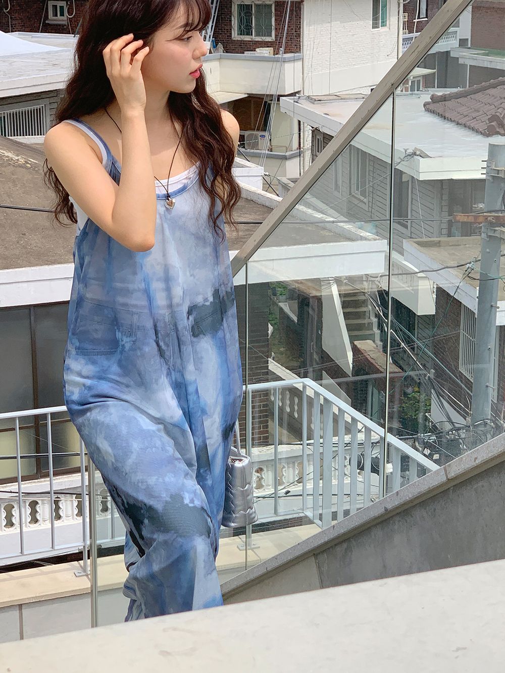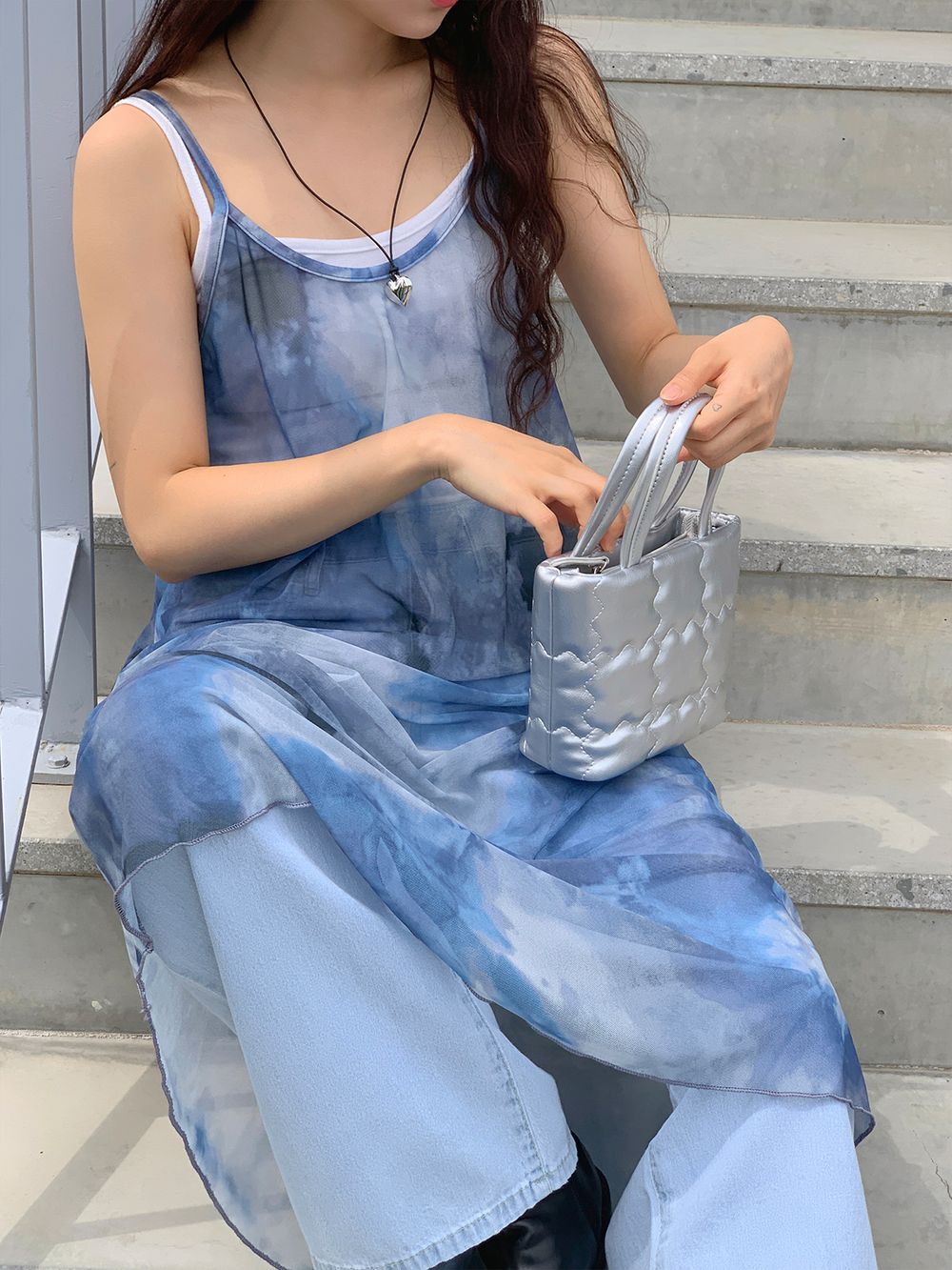 タイダイ ラウンドネック ポリエステル パステル ロング ロングスカート