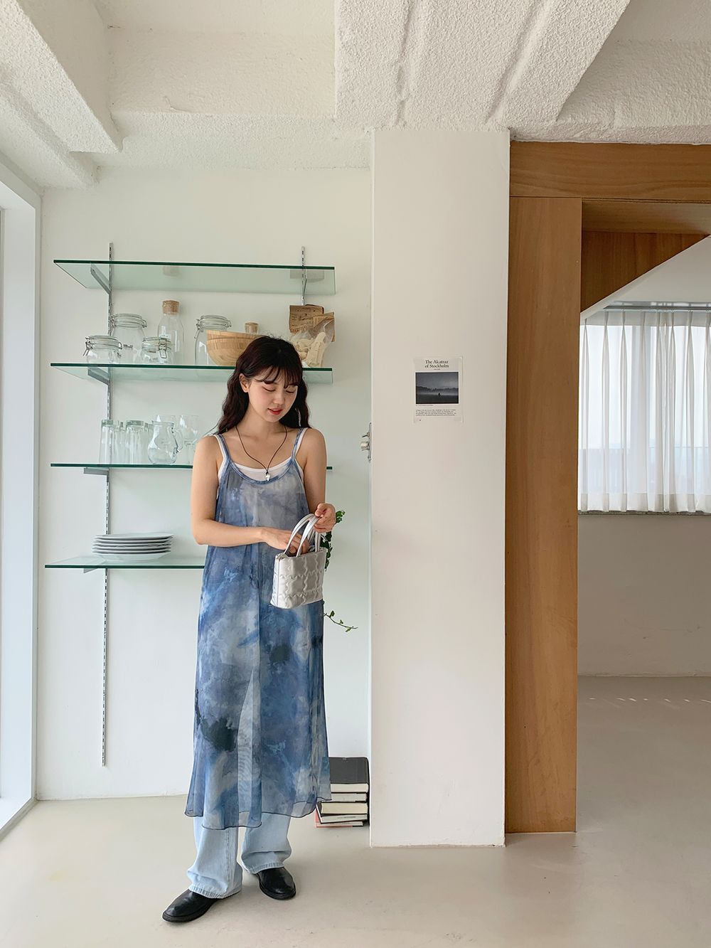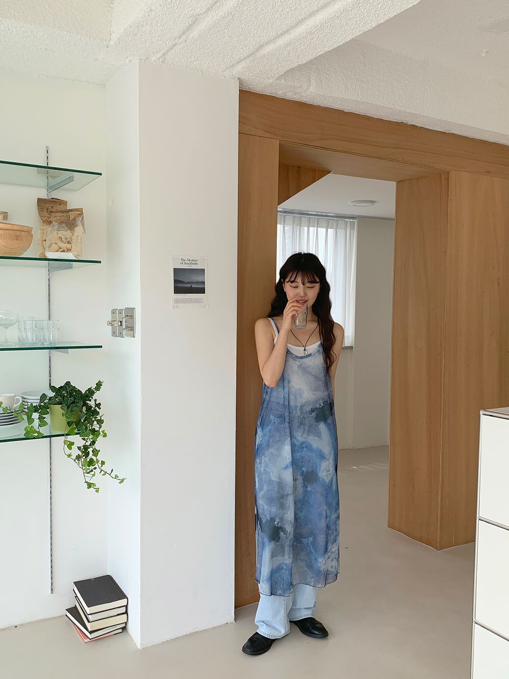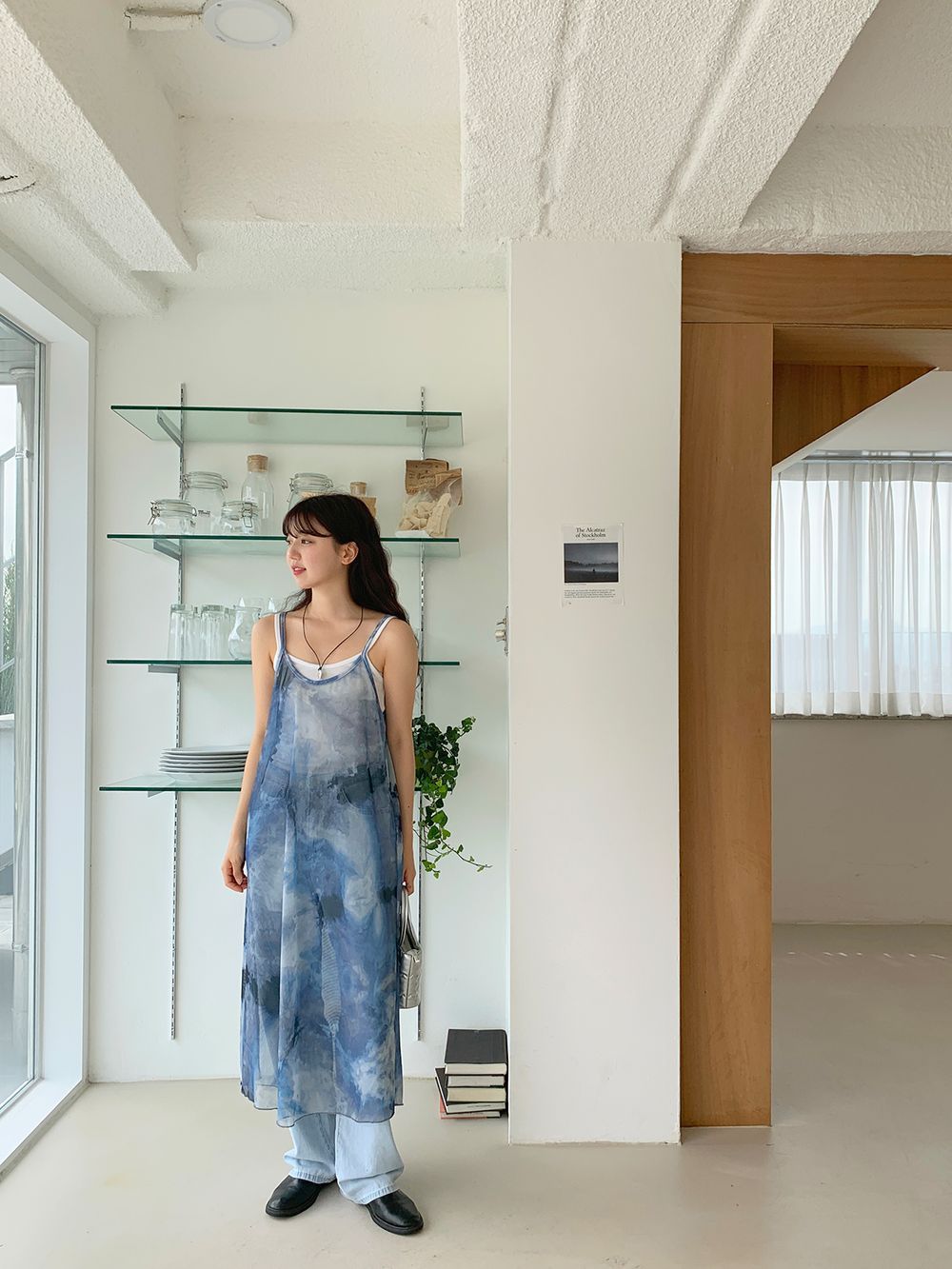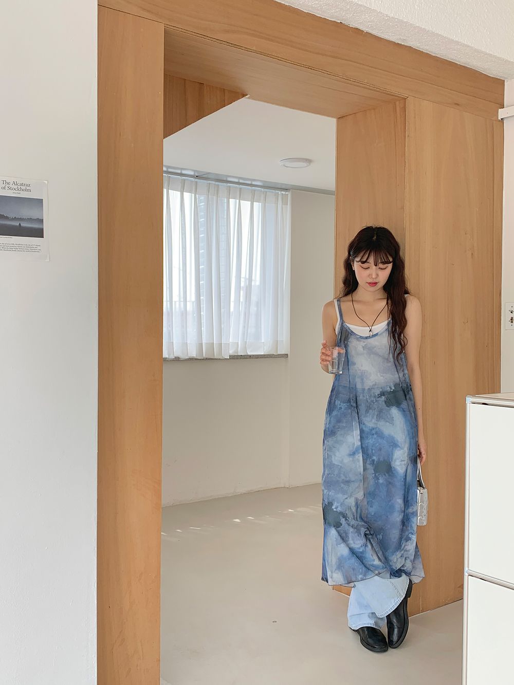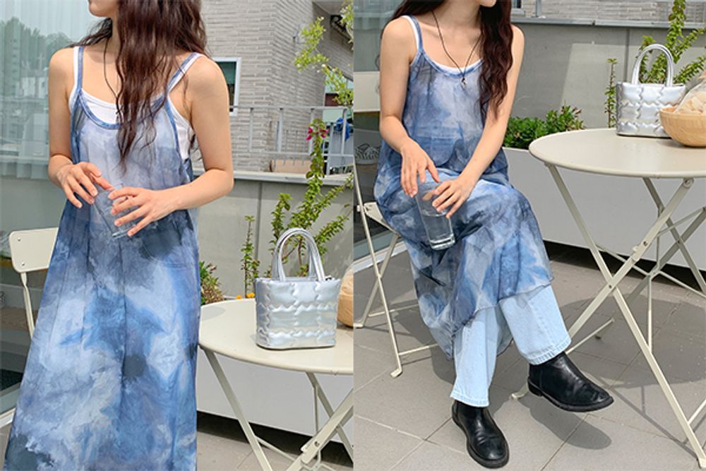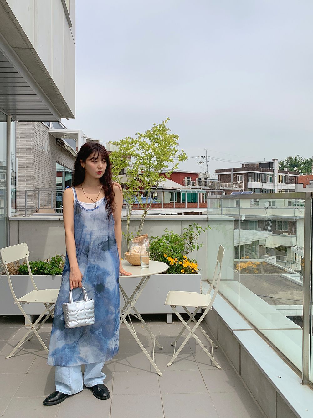 タイダイ ラウンドネック ポリエステル パステル ロング ロングスカート