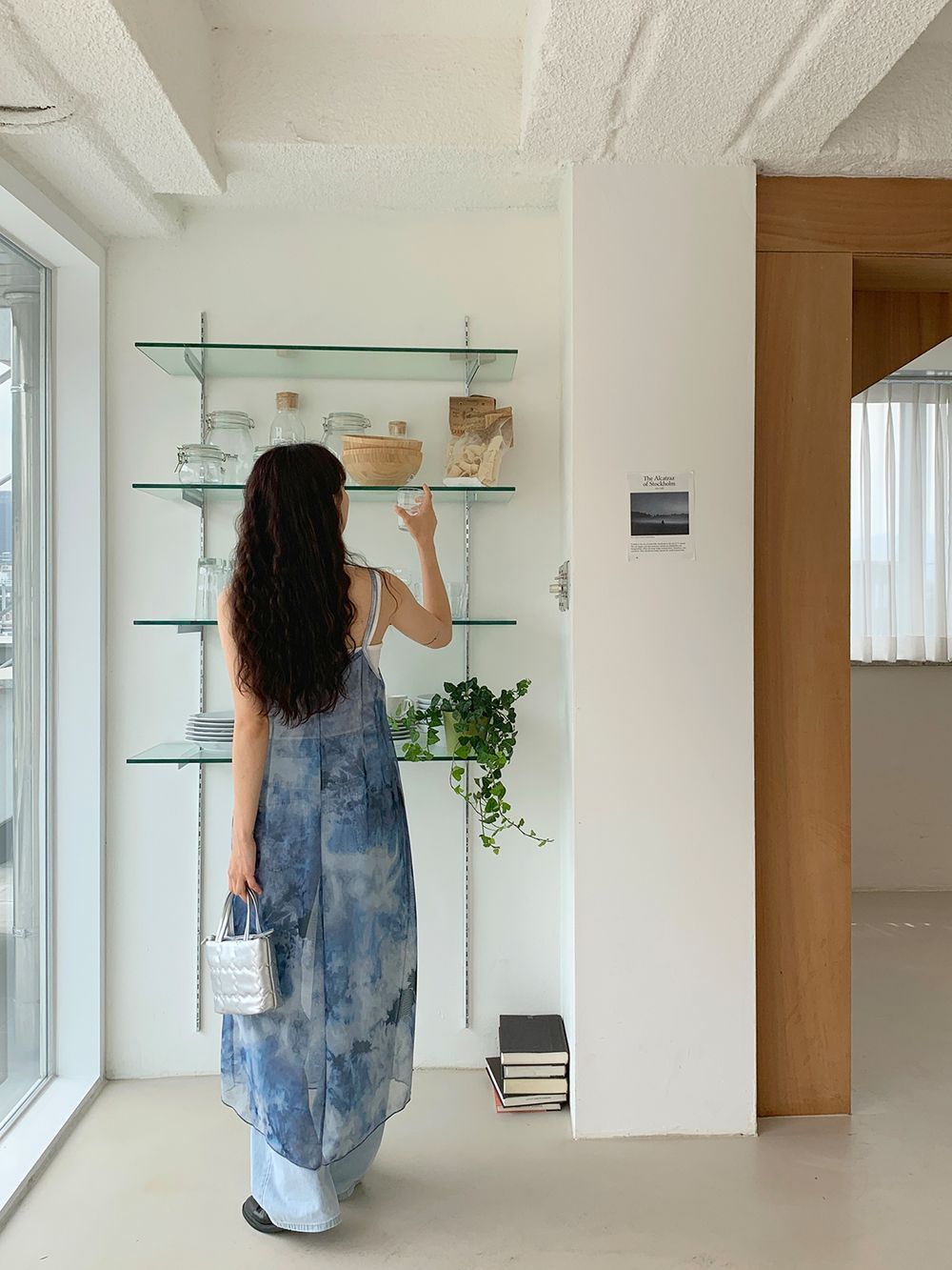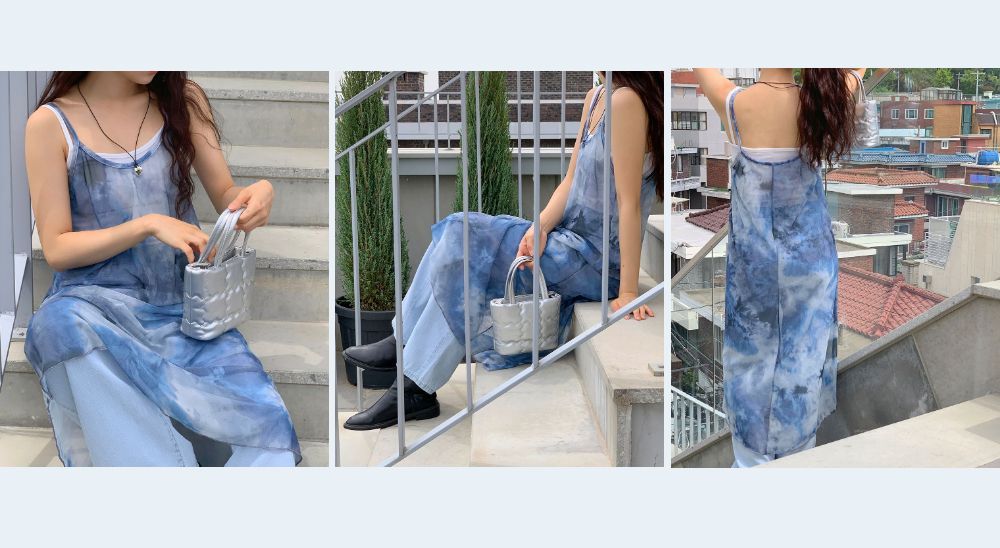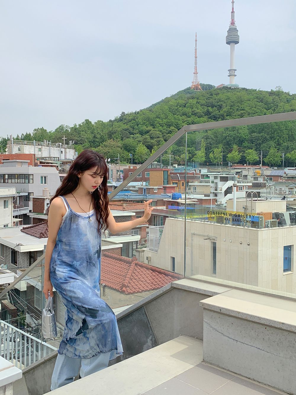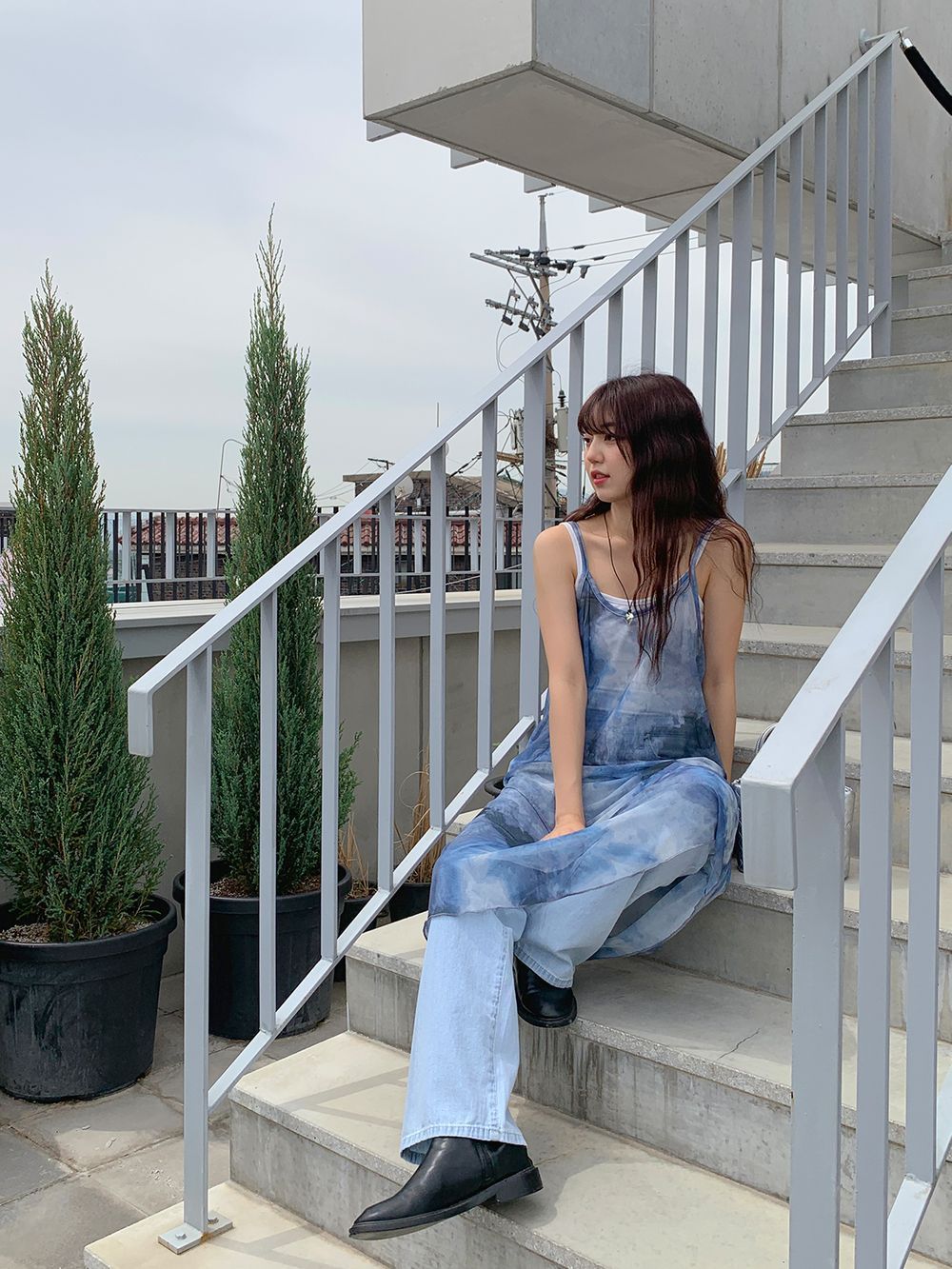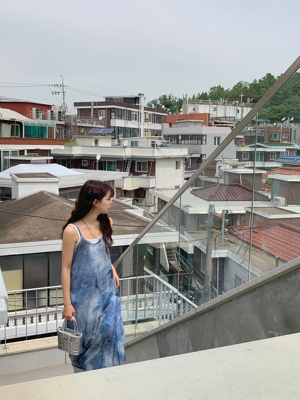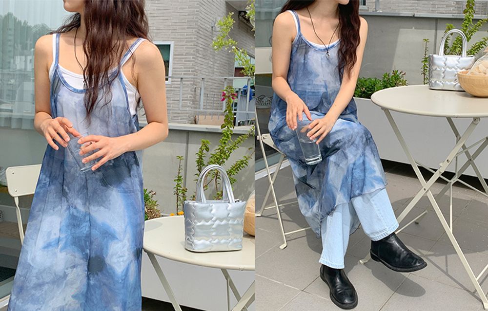 タイダイ ラウンドネック ポリエステル パステル ロング ロングスカート