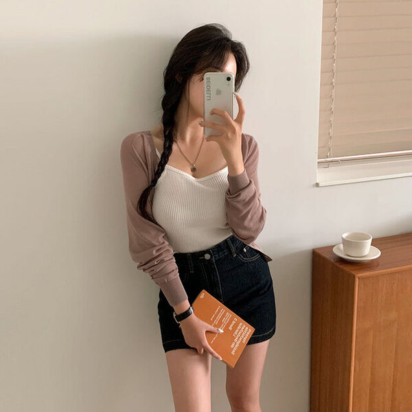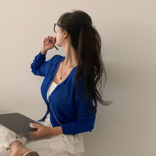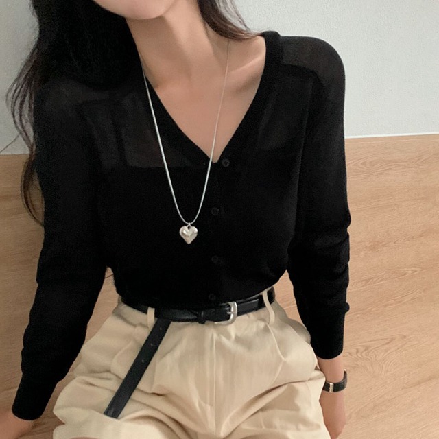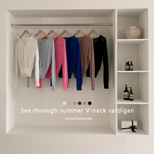 [6color] リネンシースルーVネックカーディガン