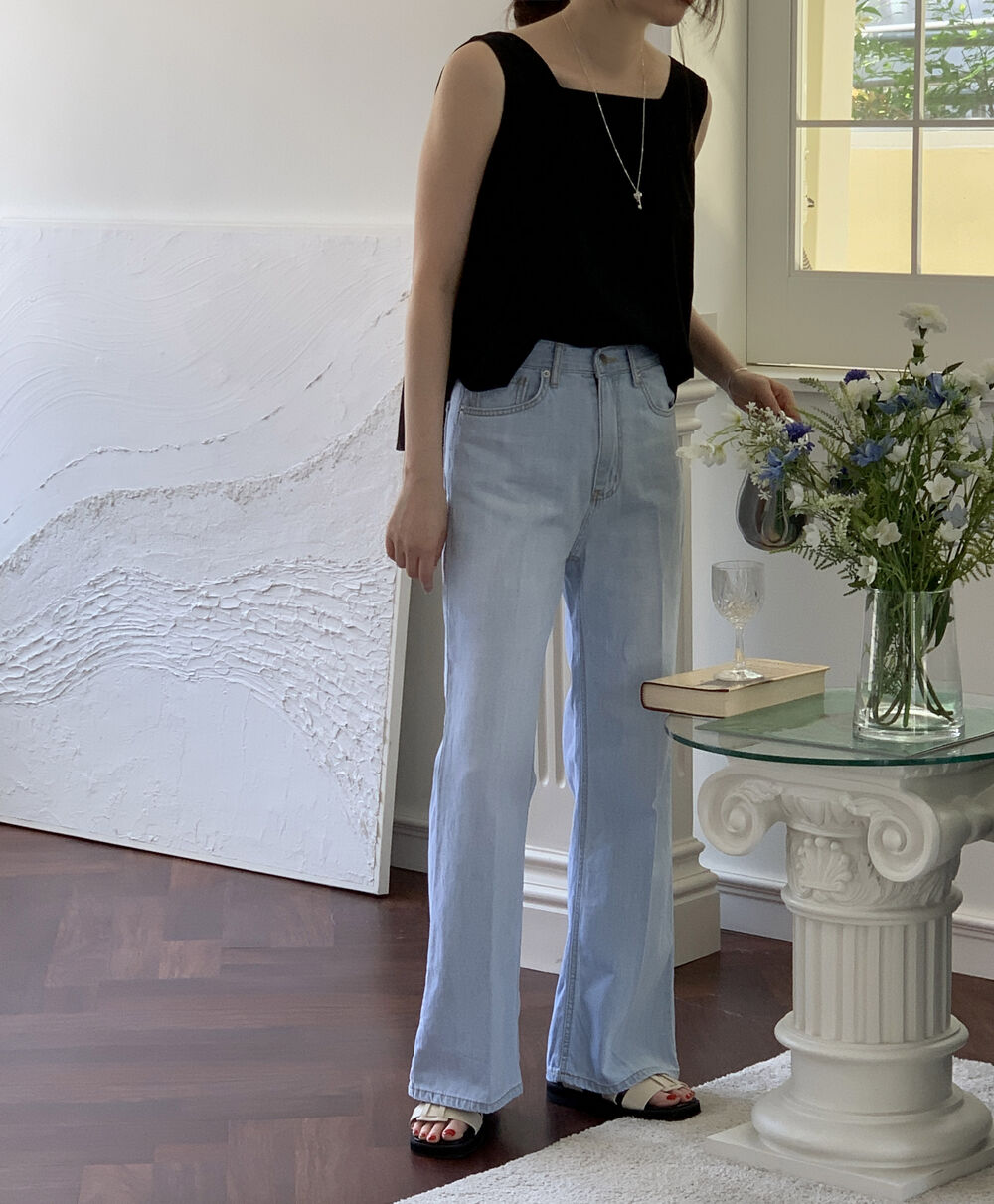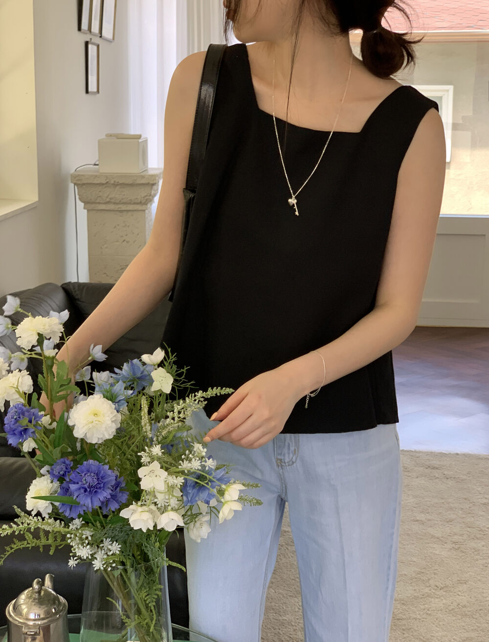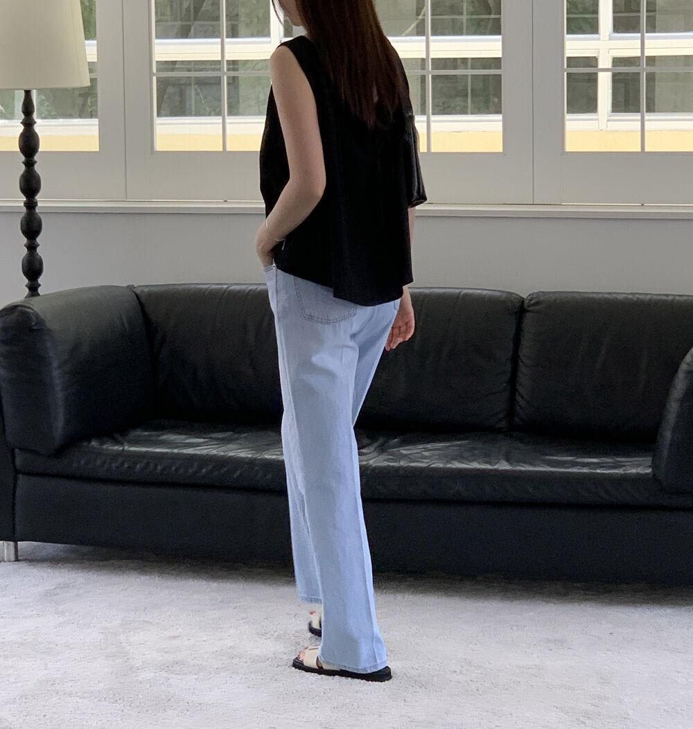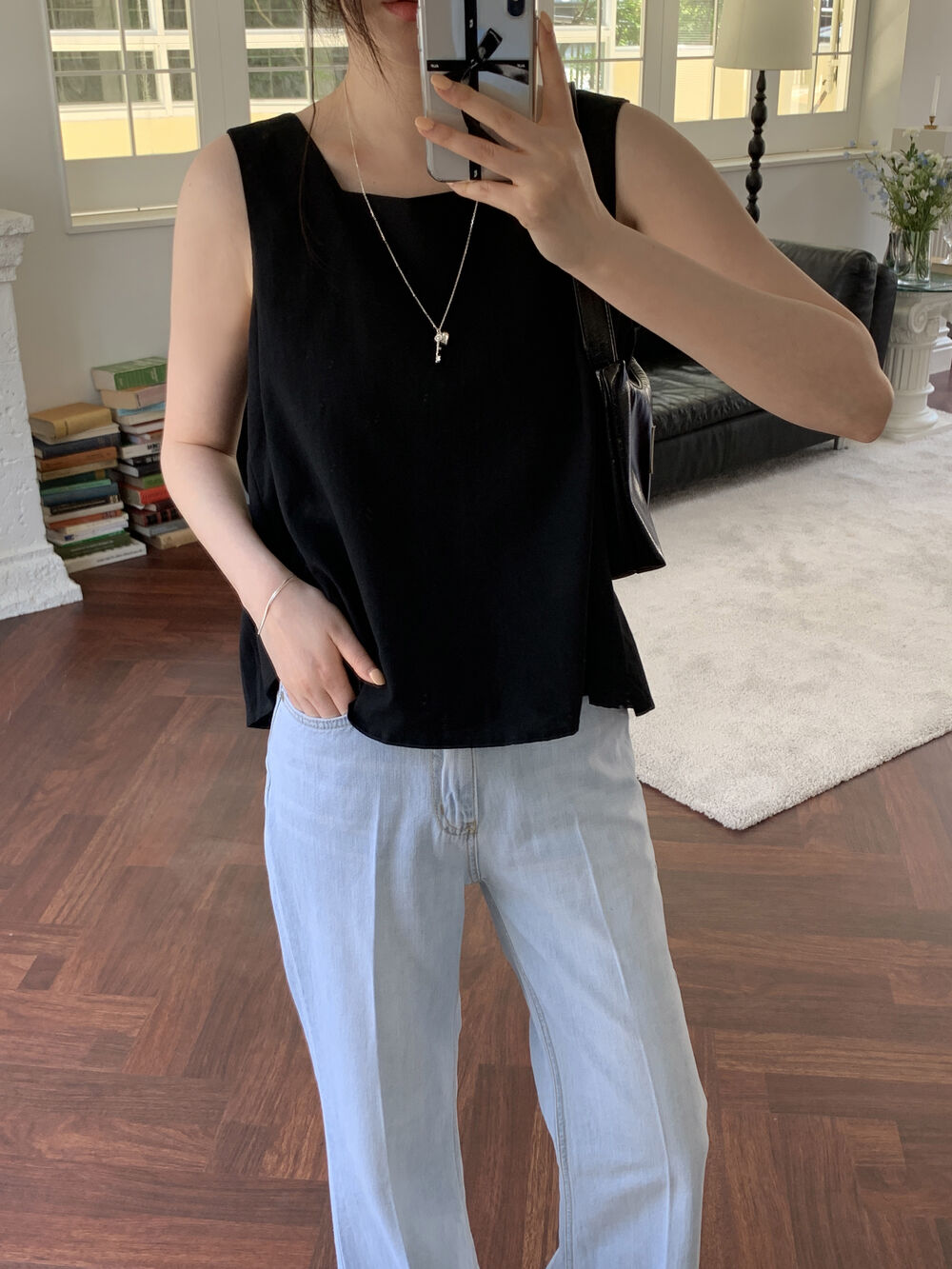 [3color]リネンスクエアバックリボンノースリーブブラウス