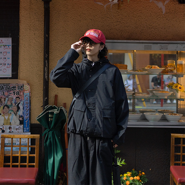 (ユニセックス)ポケットナイロンフーディジャンパー