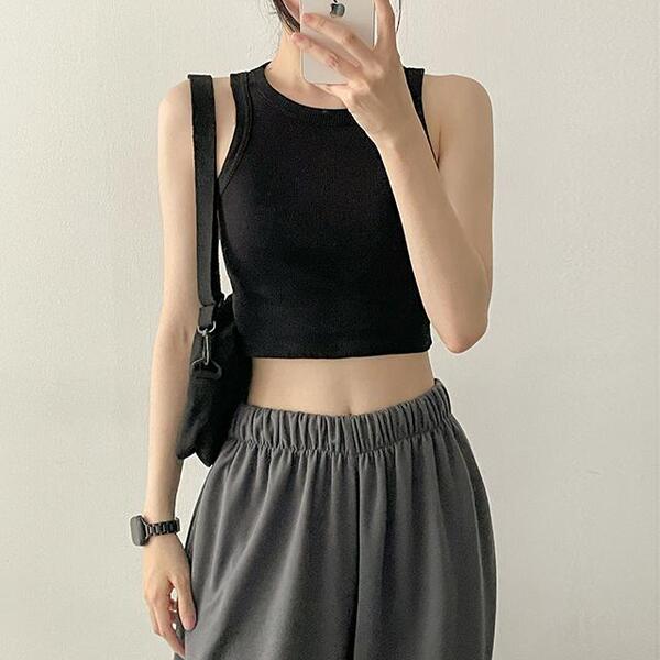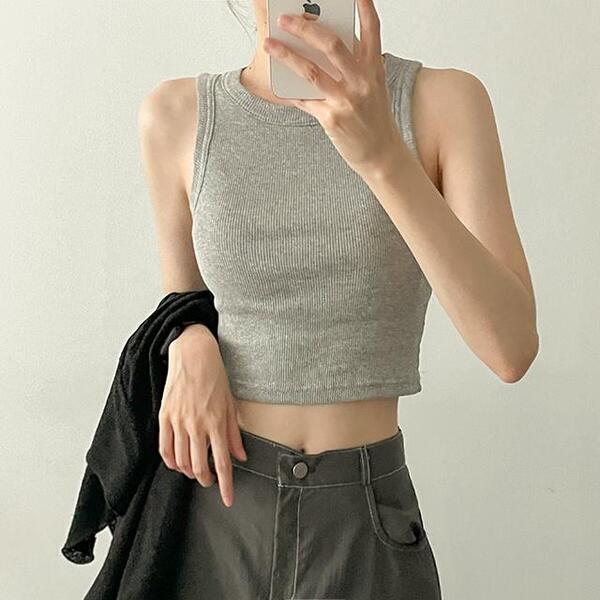 Rochinラウンドーノースリーブキャミソール