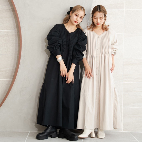 胸からウエストにかけて入ったタックが